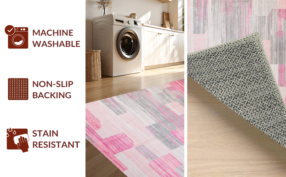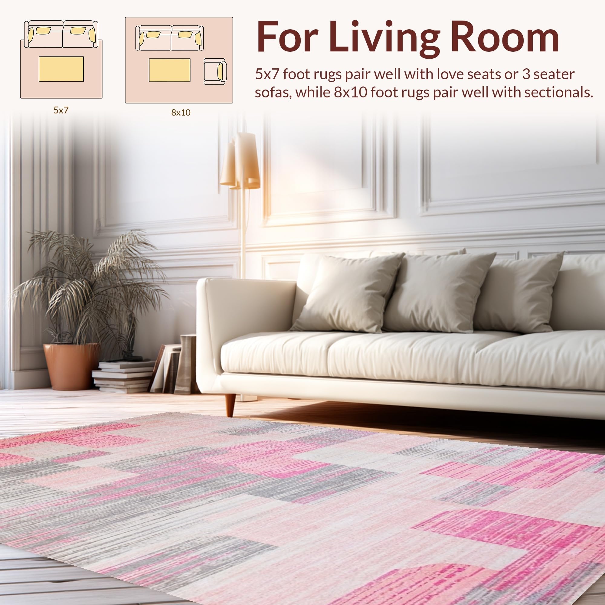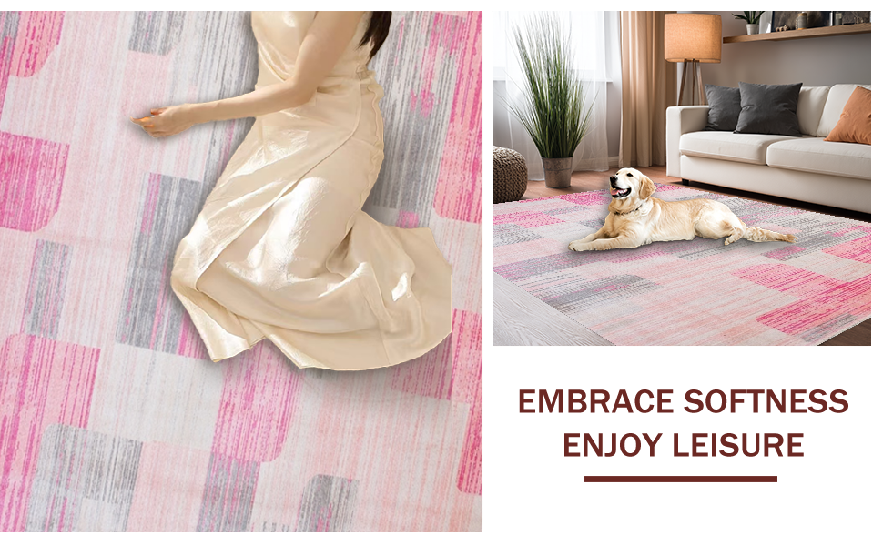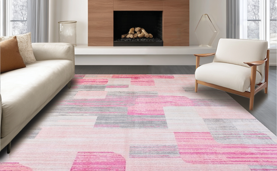 Ultra Soft Area Rug, Non Slip, Stain Resistant, Washable Area Rugs for Living Room, Bedroom, Minimalist Soft Tone Composition(Pink) Overview:
