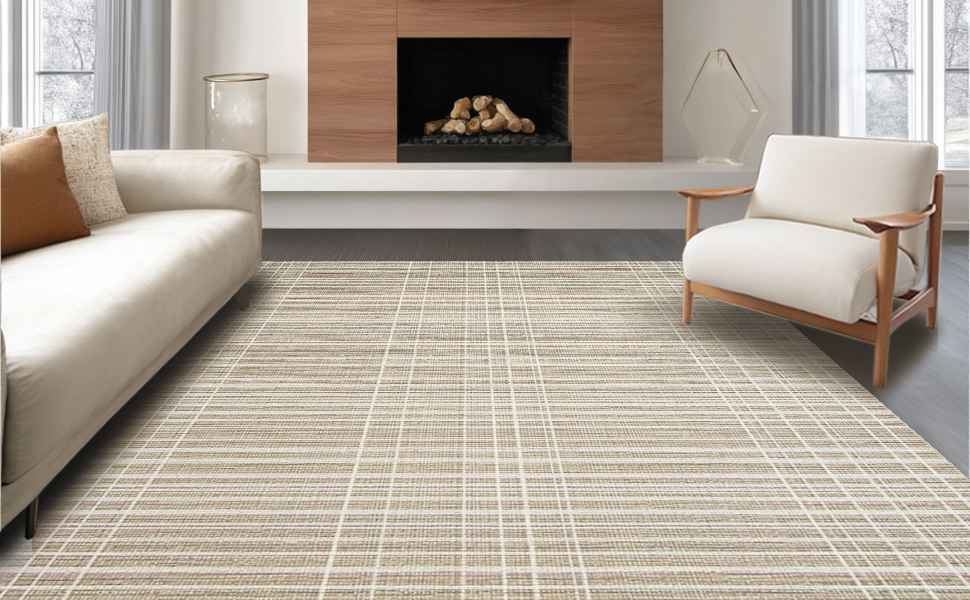 Ultra Soft Area Rug, Non Slip, Stain Resistant, Washable Area Rugs for Living Room, Bedroom, Minimalist Solid Texture Appeal(Beige) Overview: