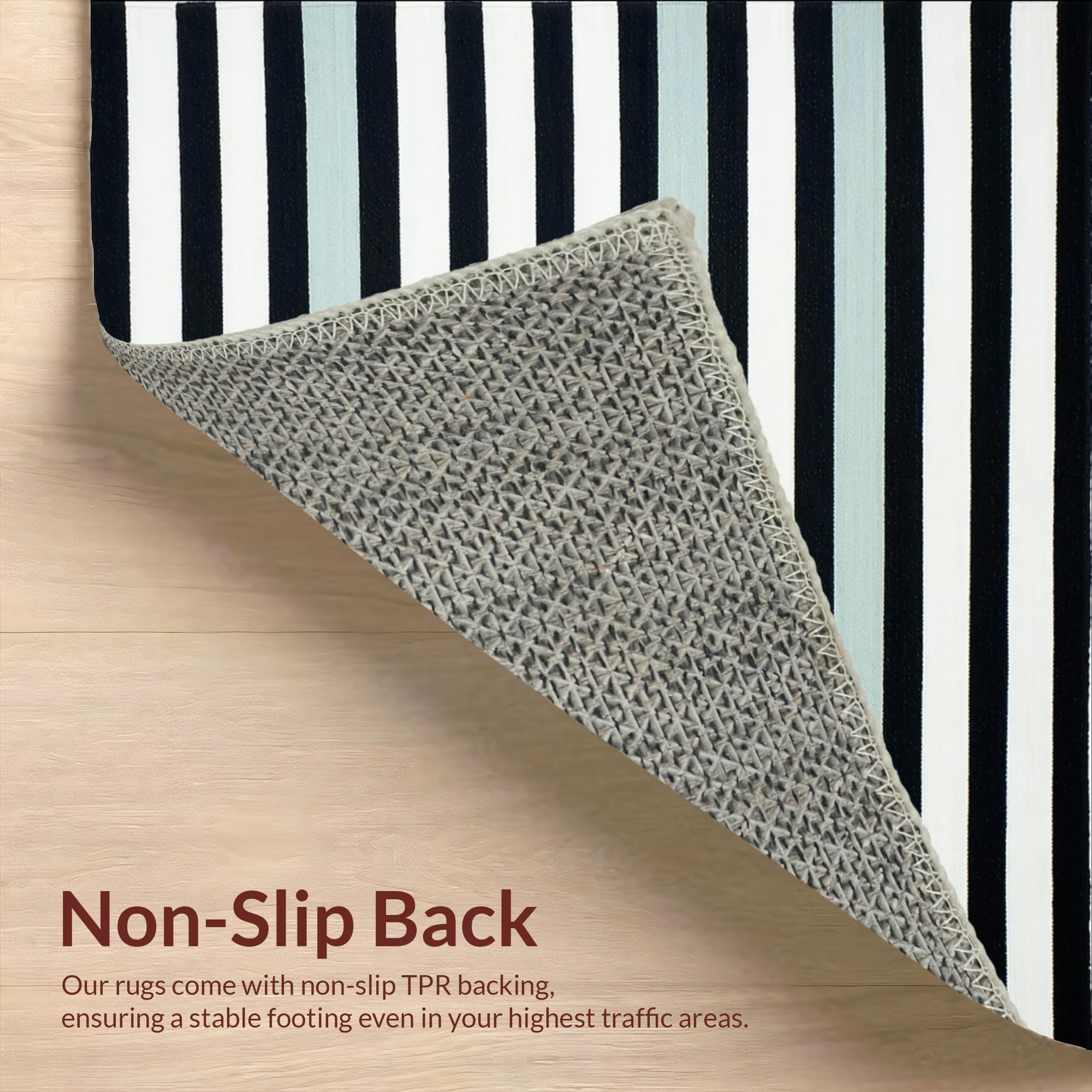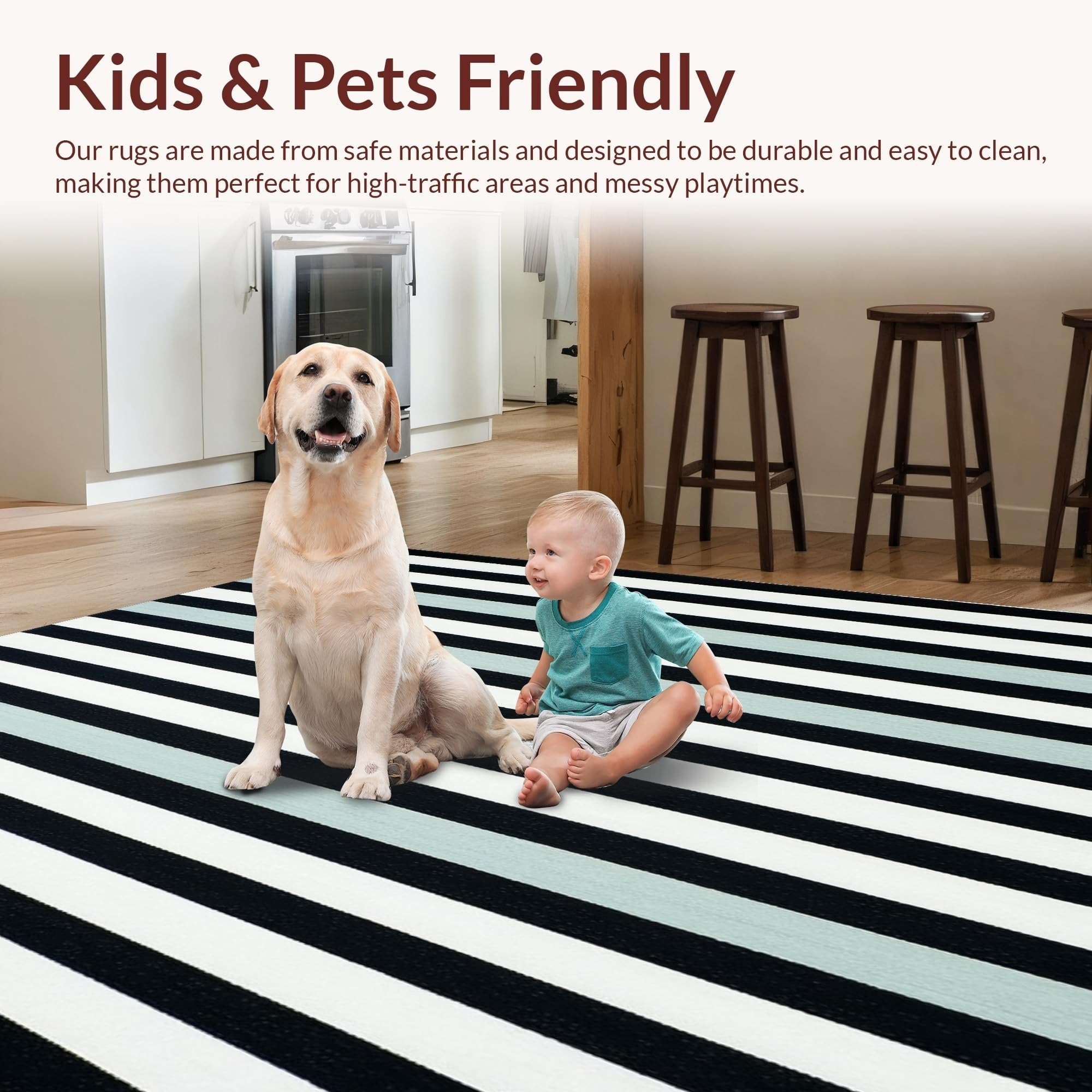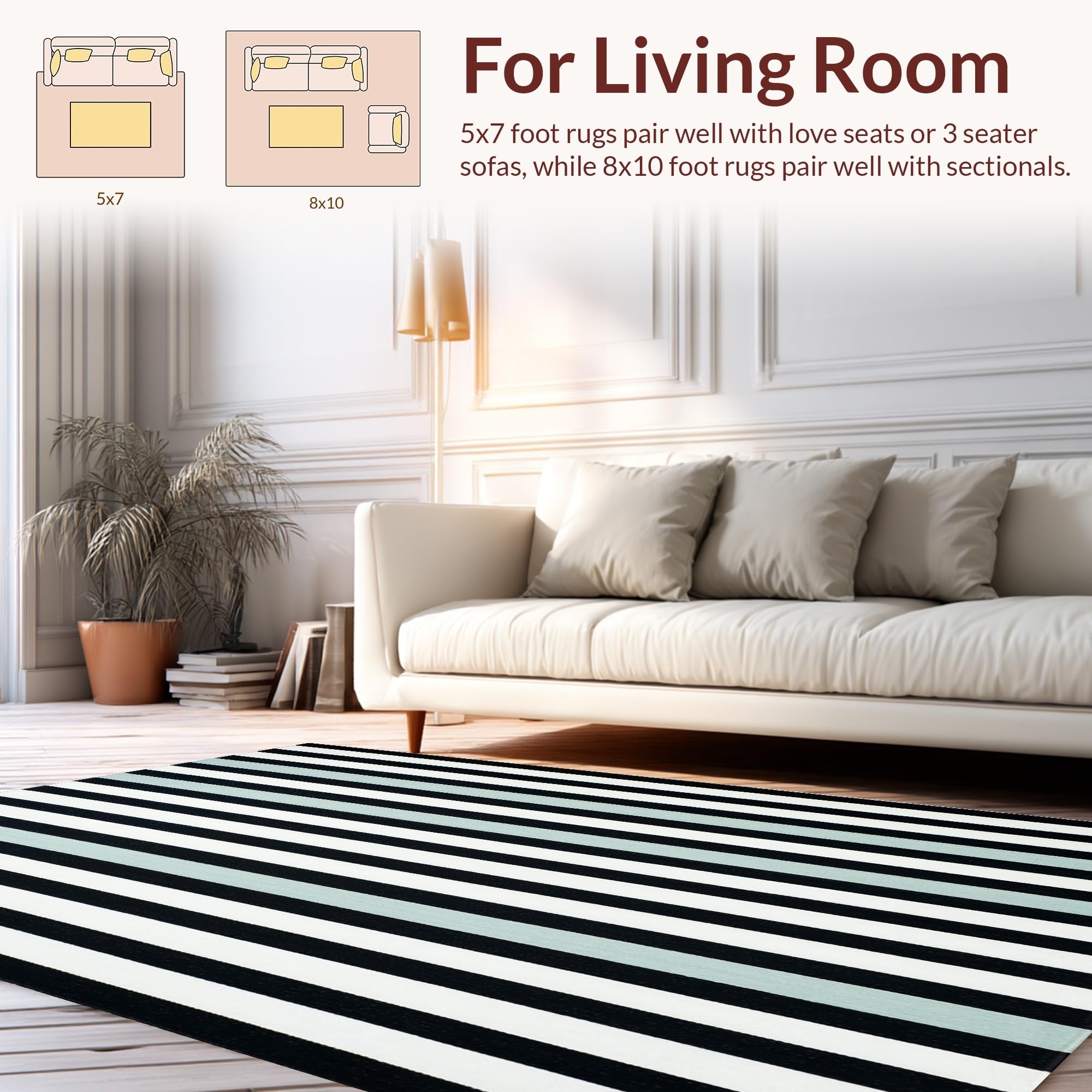 Ultra Soft Area Rug, Non Slip, Stain Resistant, Washable Area Rugs for Living Room, Bedroom, Minimalist Stripe Area(Black) Overview: