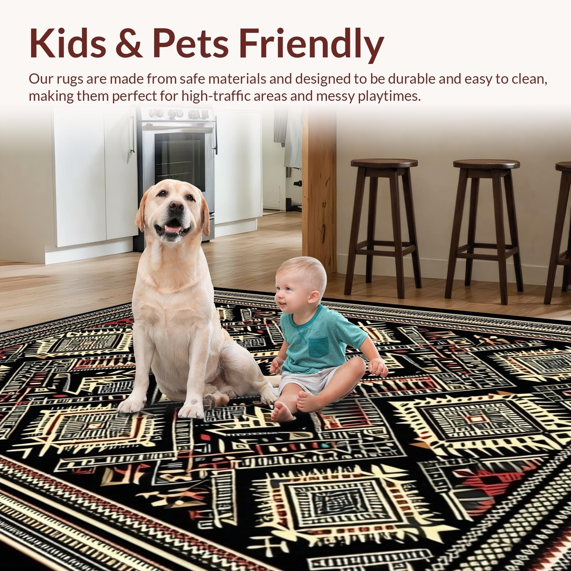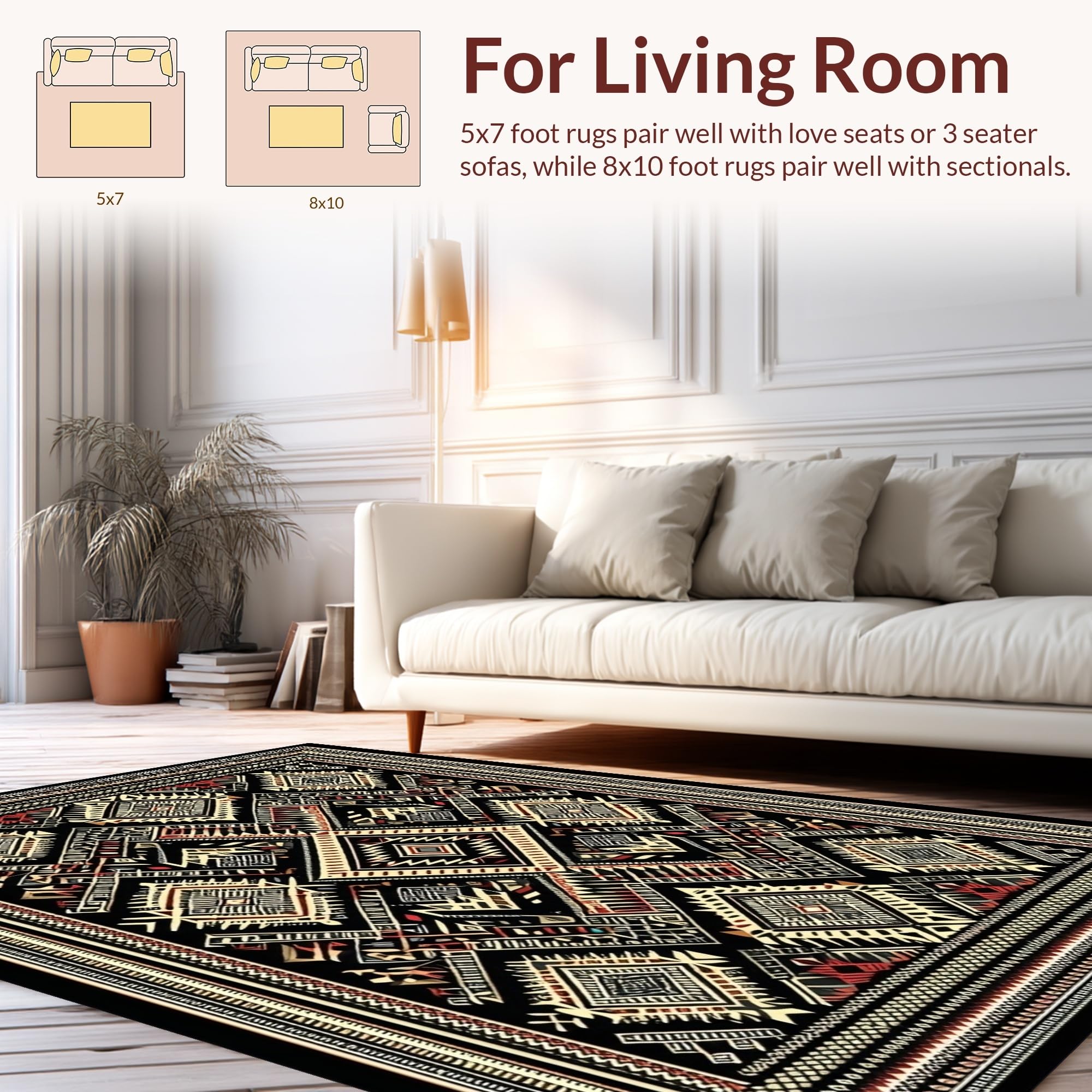 Ultra Soft Area Rug, Non Slip, Stain Resistant, Washable Area Rugs for Living Room, Bedroom, Minimalist Textured Design Element(Black) Overview: