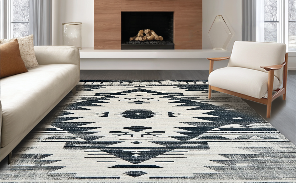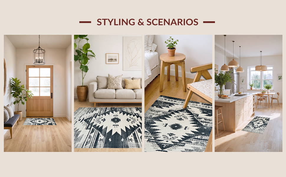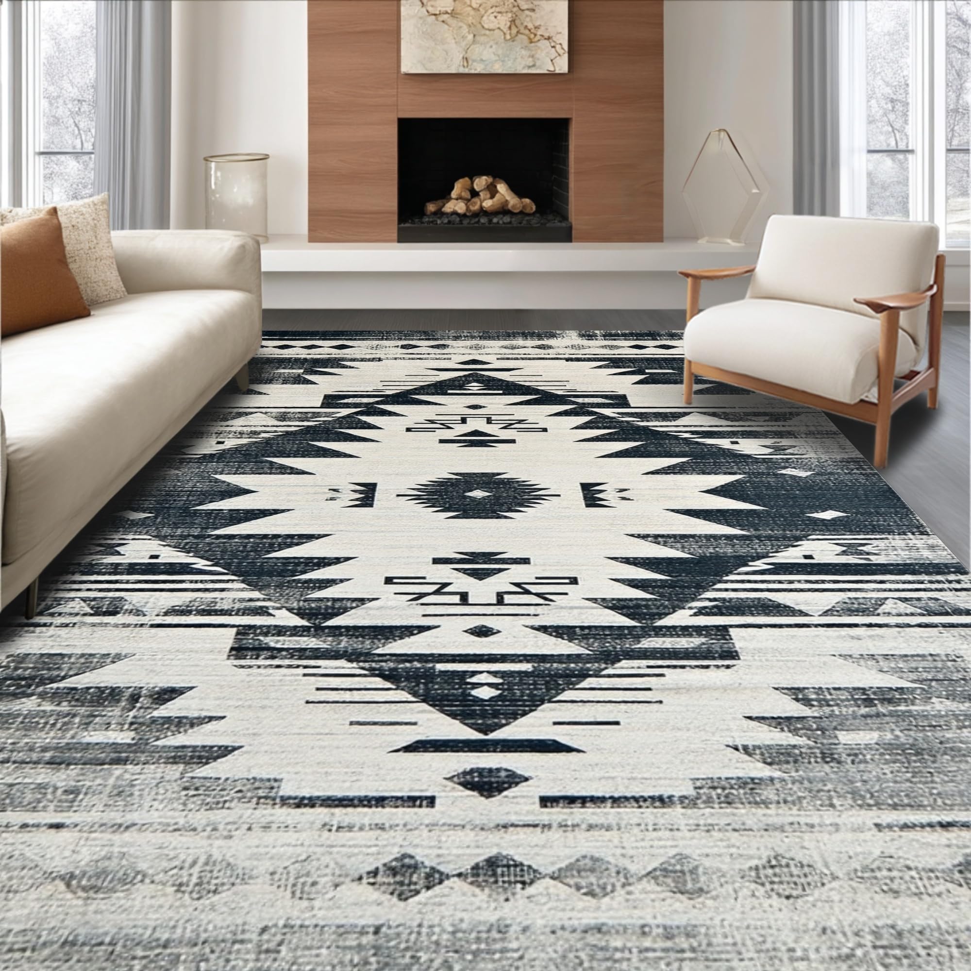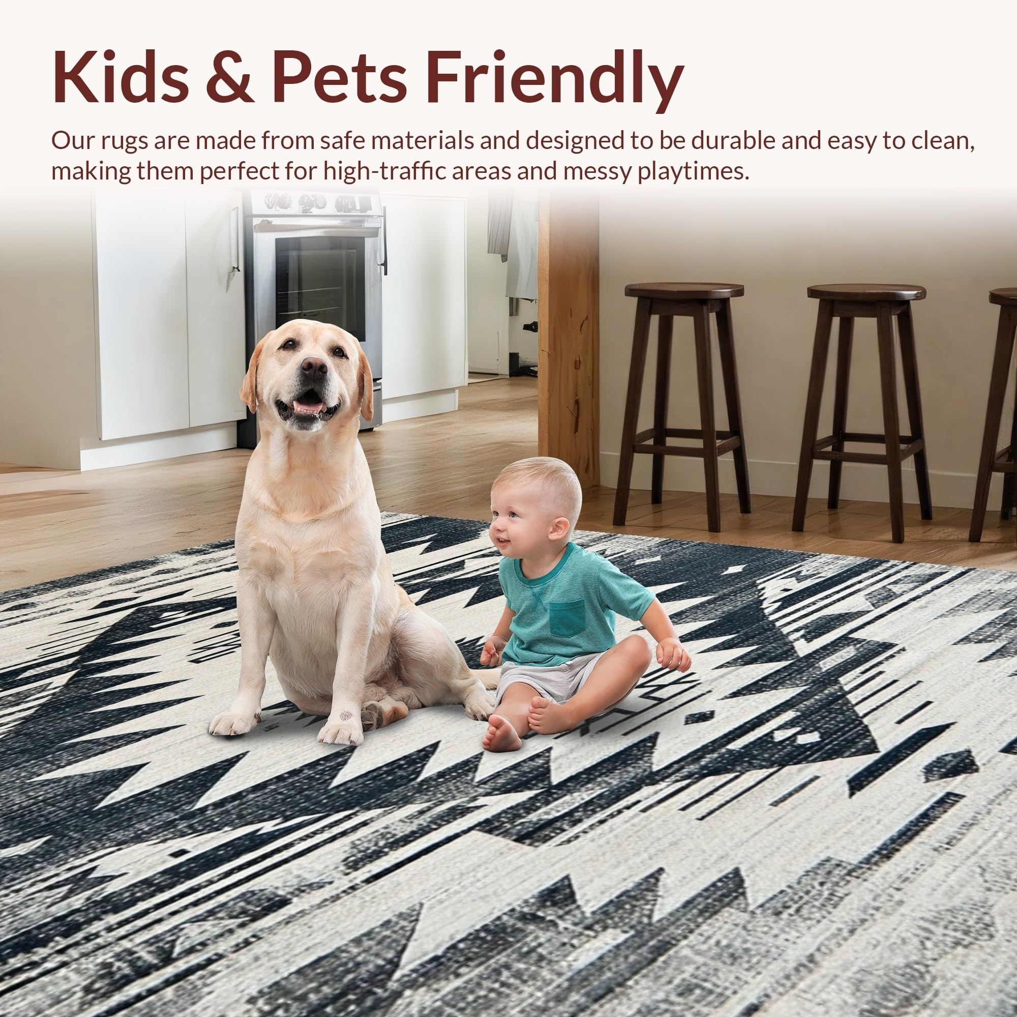 Ultra Soft Area Rug, Non Slip, Stain Resistant, Washable Area Rugs for Living Room, Bedroom, Minimalist Tiled Black Accent(Black) Overview: