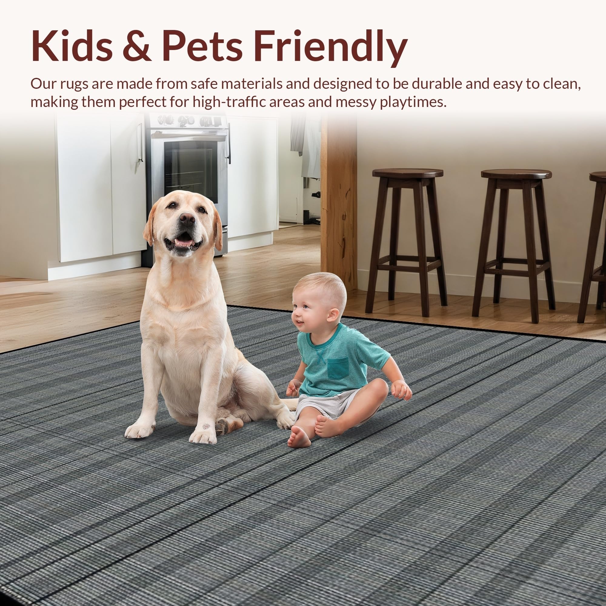Ultra Soft Area Rug, Non Slip, Stain Resistant, Washable Area Rugs for Living Room, Bedroom, Minimalist Tiled Black and White Motif(Gray) Overview:
