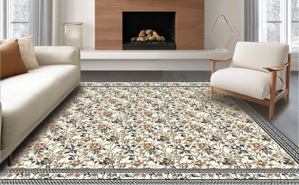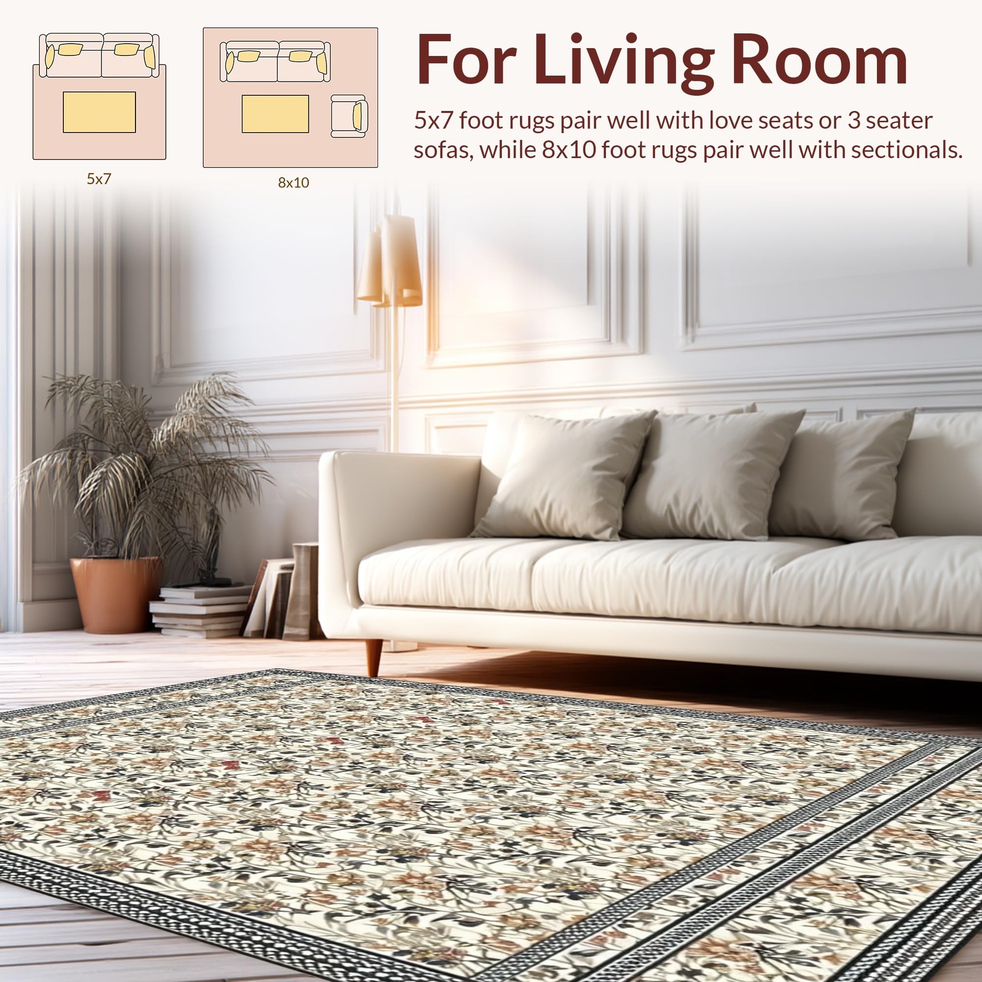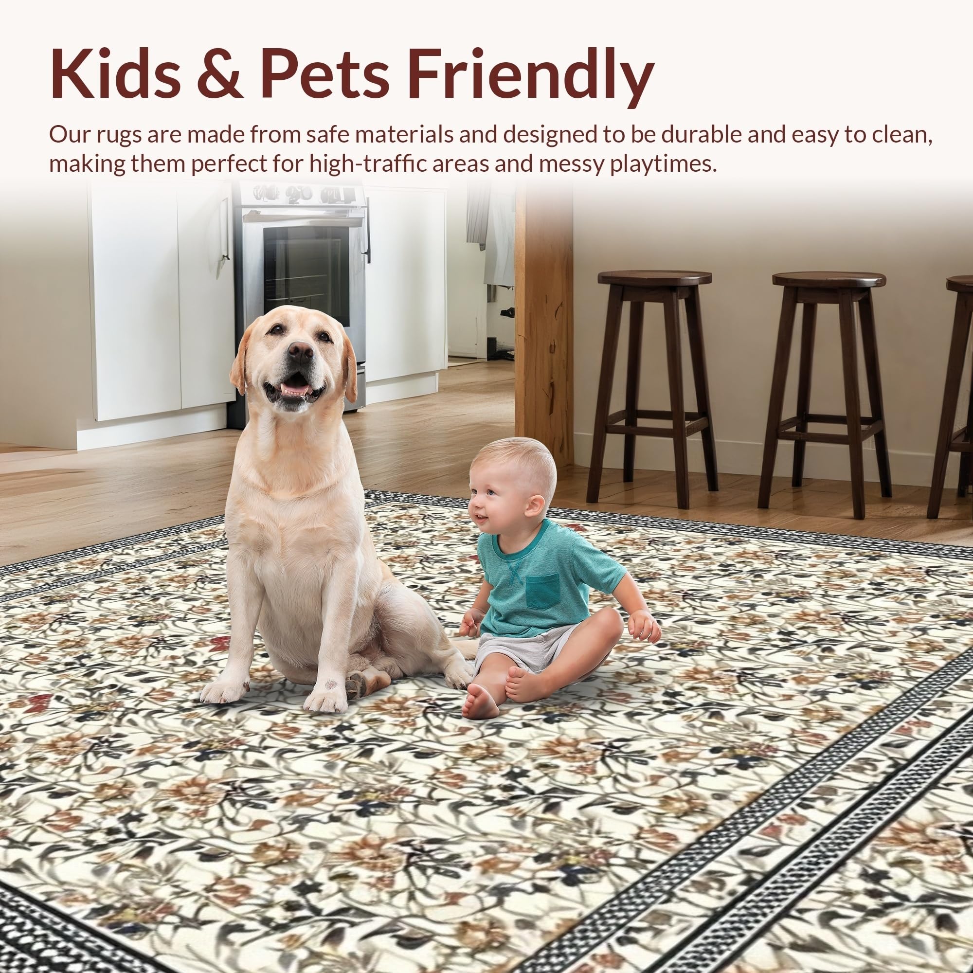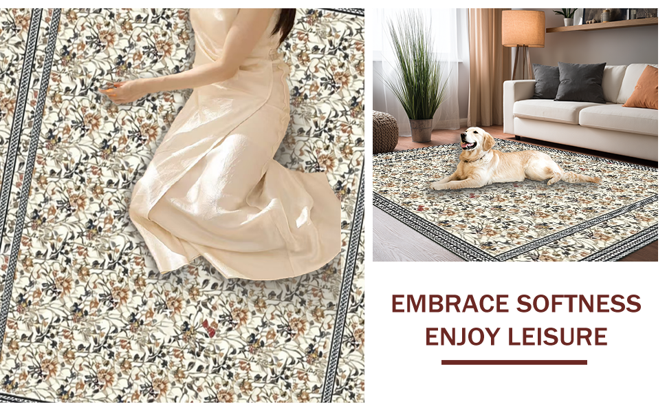 Ultra Soft Area Rug, Non Slip, Stain Resistant, Washable Area Rugs for Living Room, Bedroom, Minimalist Tiled Garden Inspiration(Beige) Overview: