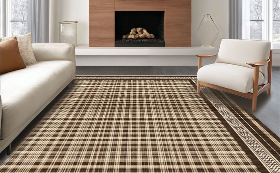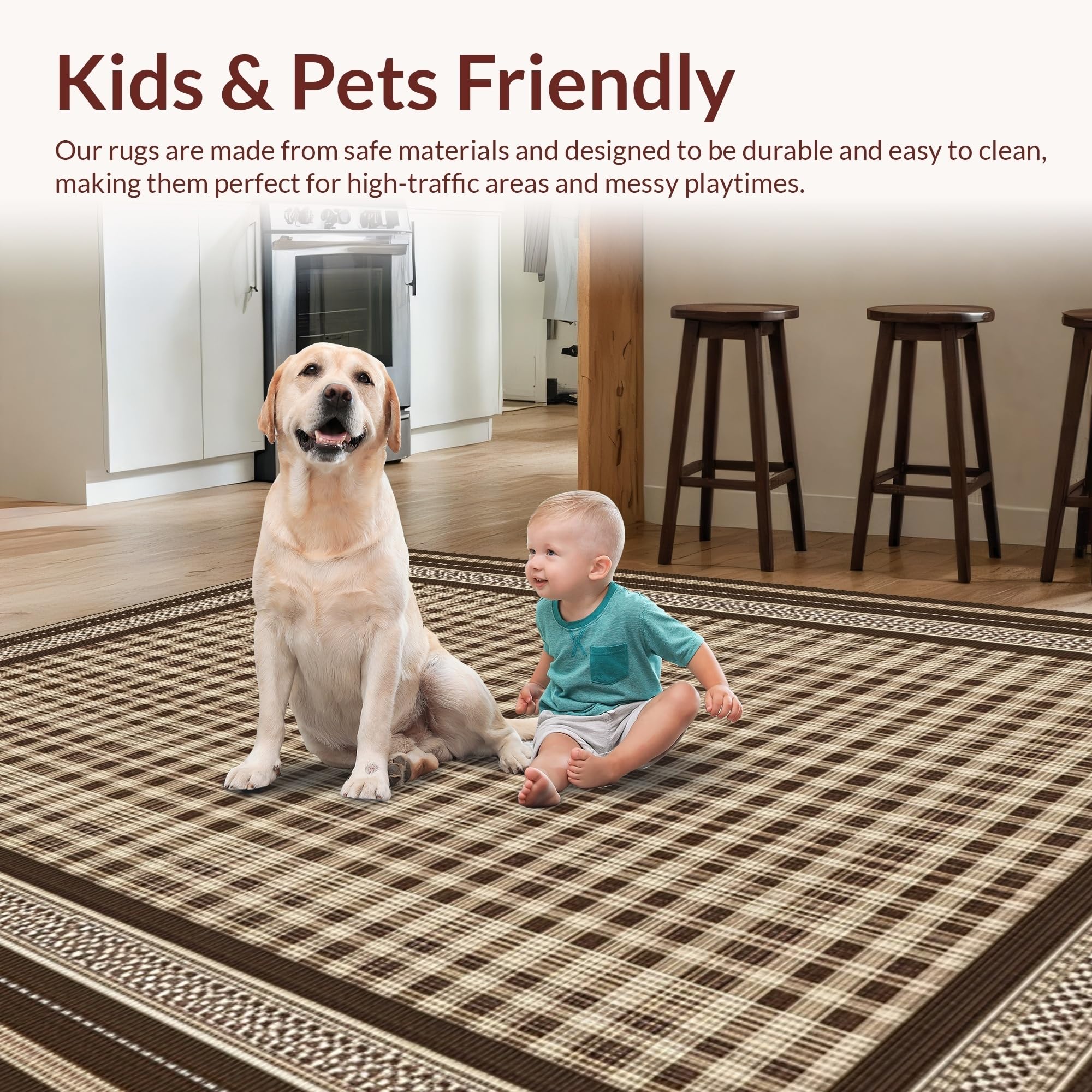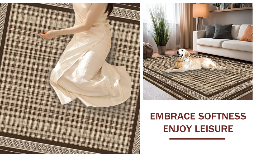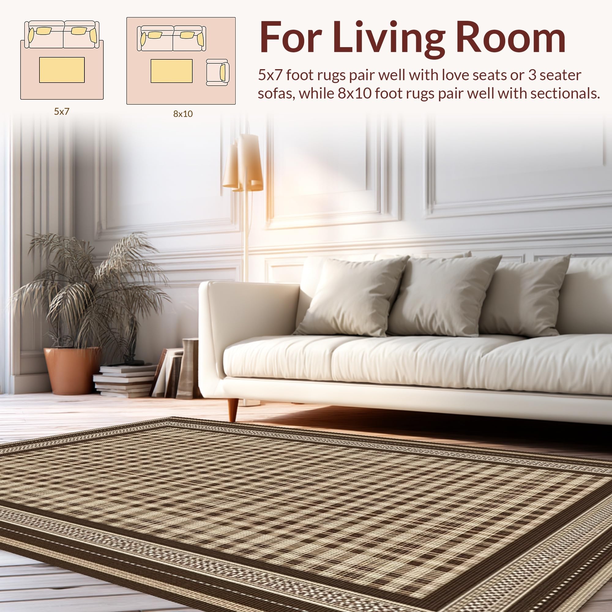 Ultra Soft Area Rug, Non Slip, Stain Resistant, Washable Area Rugs for Living Room, Bedroom, Minimalist Tiled Pattern with Natural Touch(Beige) Overview: