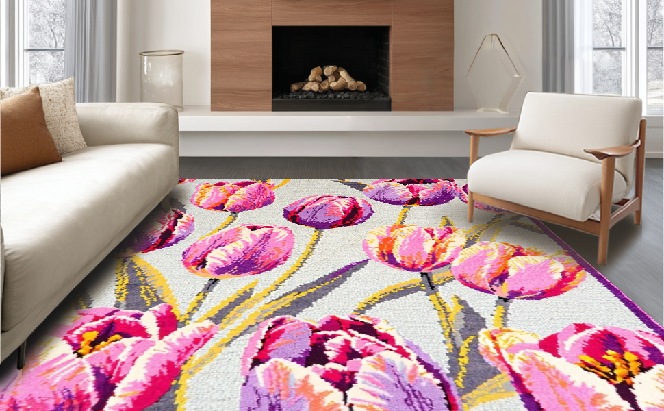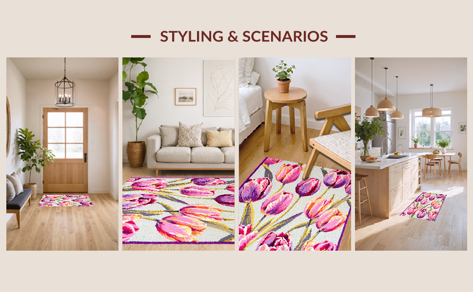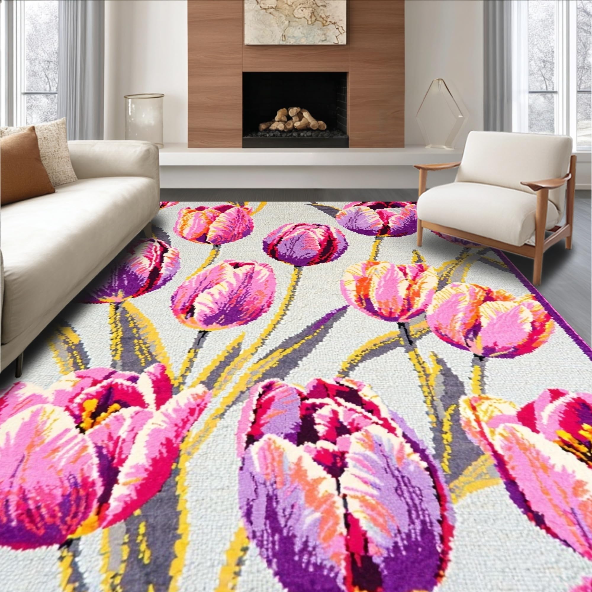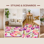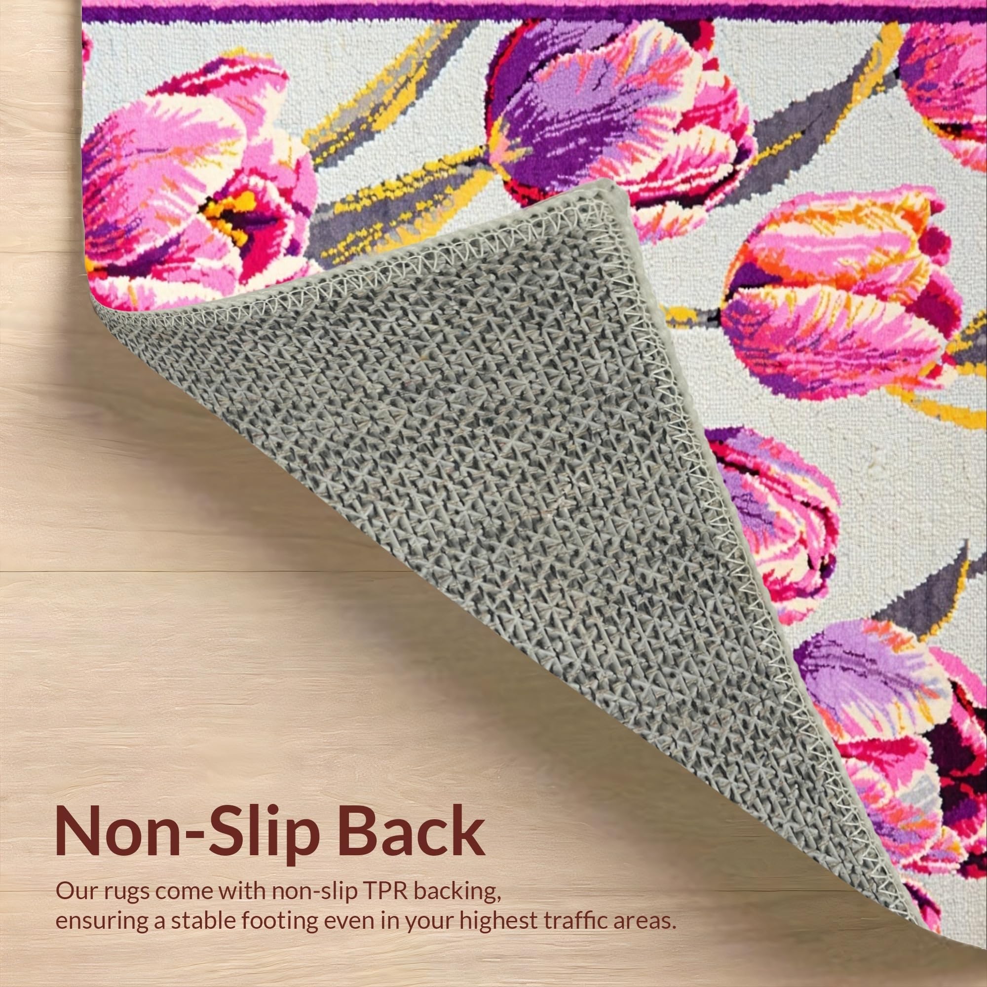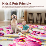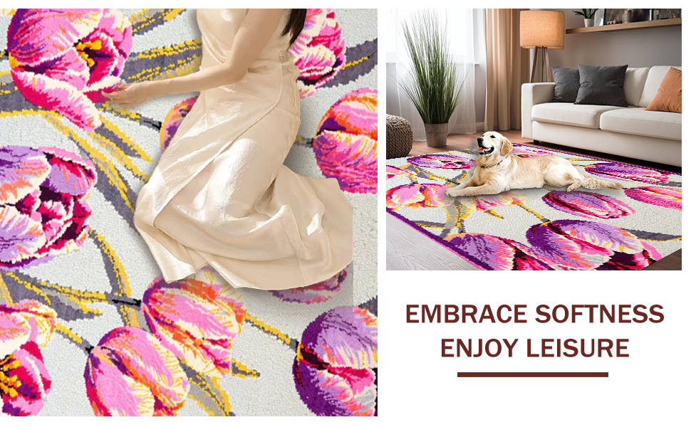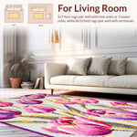 Ultra Soft Area Rug, Non Slip, Stain Resistant, Washable Area Rugs for Living Room, Bedroom, Minimalist White Floral Elegance(Pink) Overview: