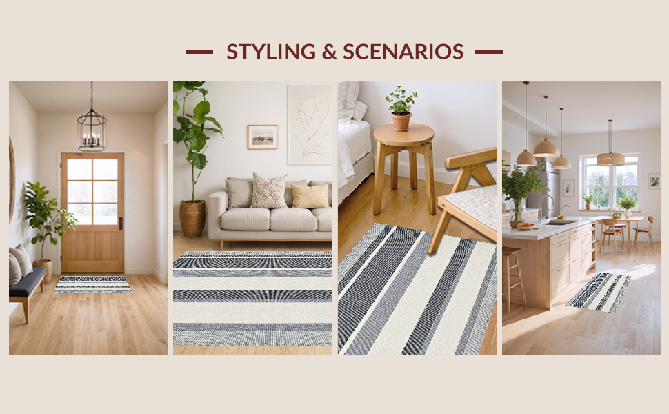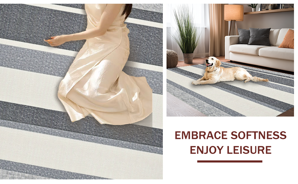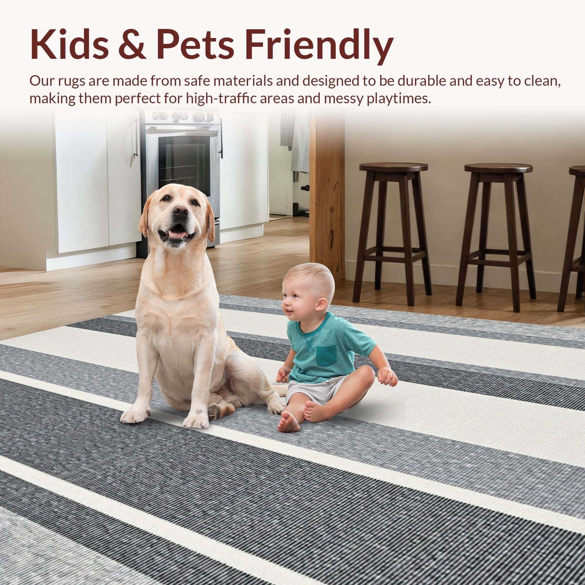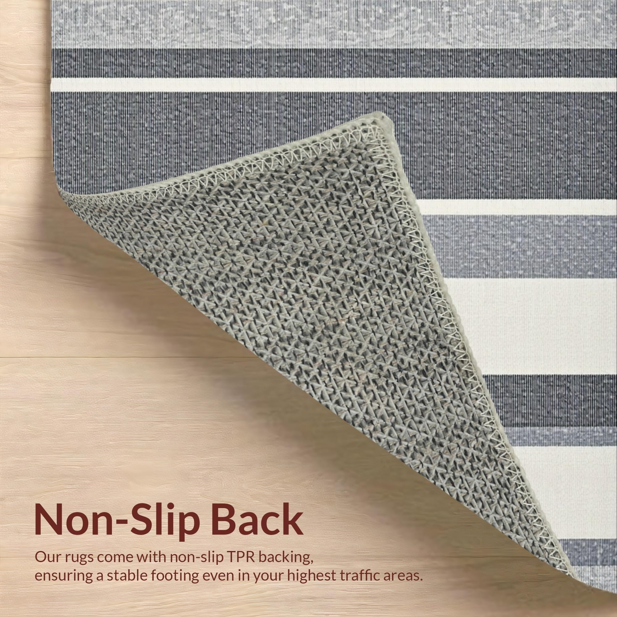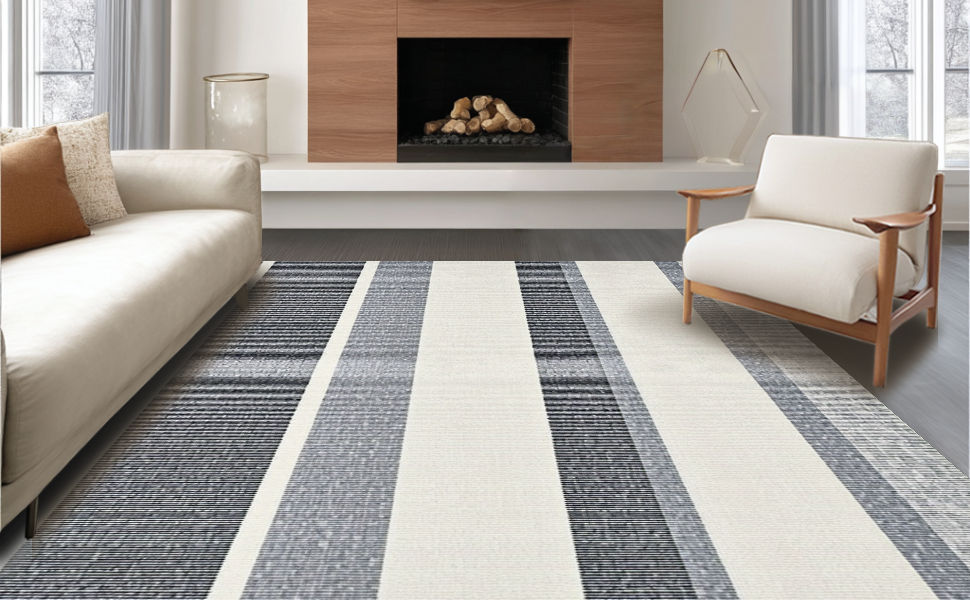 Ultra Soft Area Rug, Non Slip, Stain Resistant, Washable Area Rugs for Living Room, Bedroom, Minimalist Wide Stripe Coastal Theme(Gray) Overview: