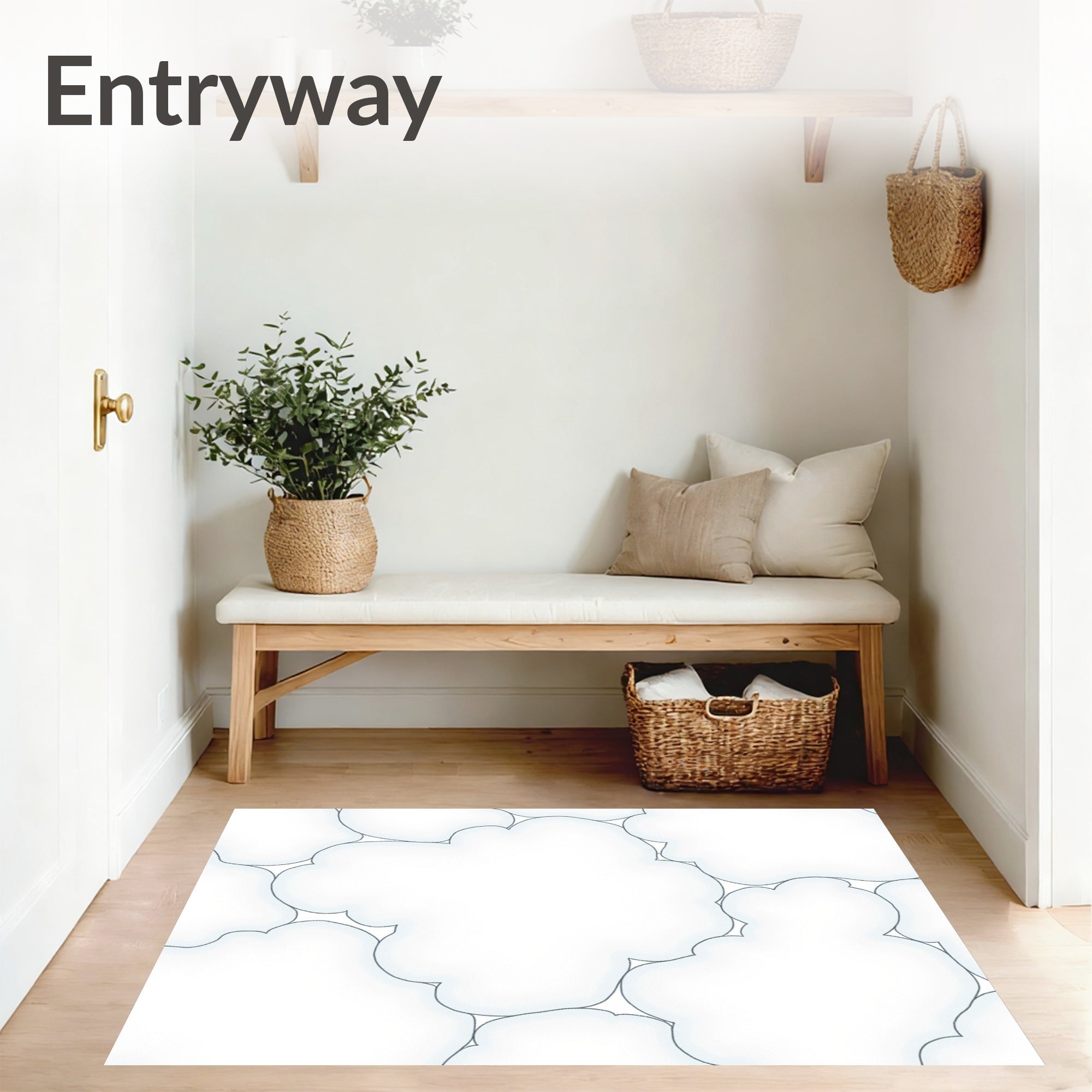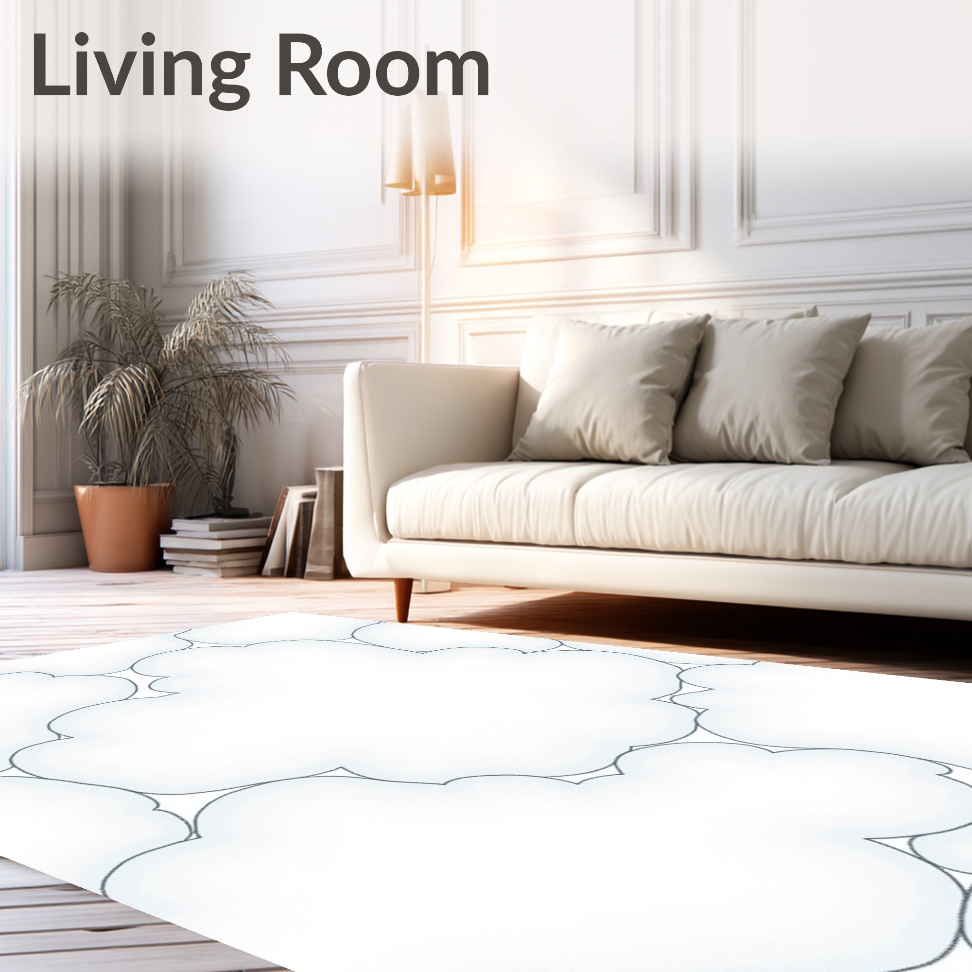 Flatwoven High Traffic Area Rug, Mist Cloud with Ethereal Contours and Gentle Curves, Non Slip, Stain Resistant, Washable Area Rugs for Living Room, Bedroom (White) Overview: