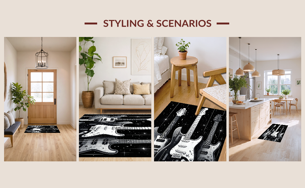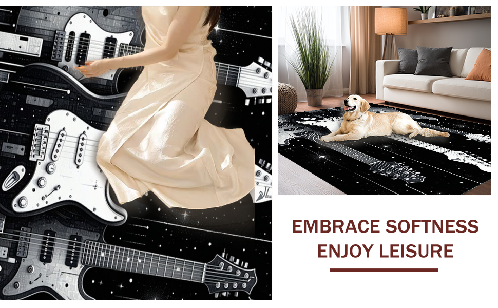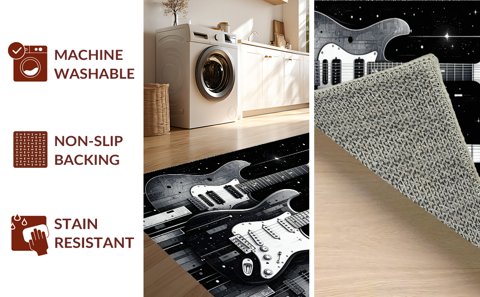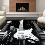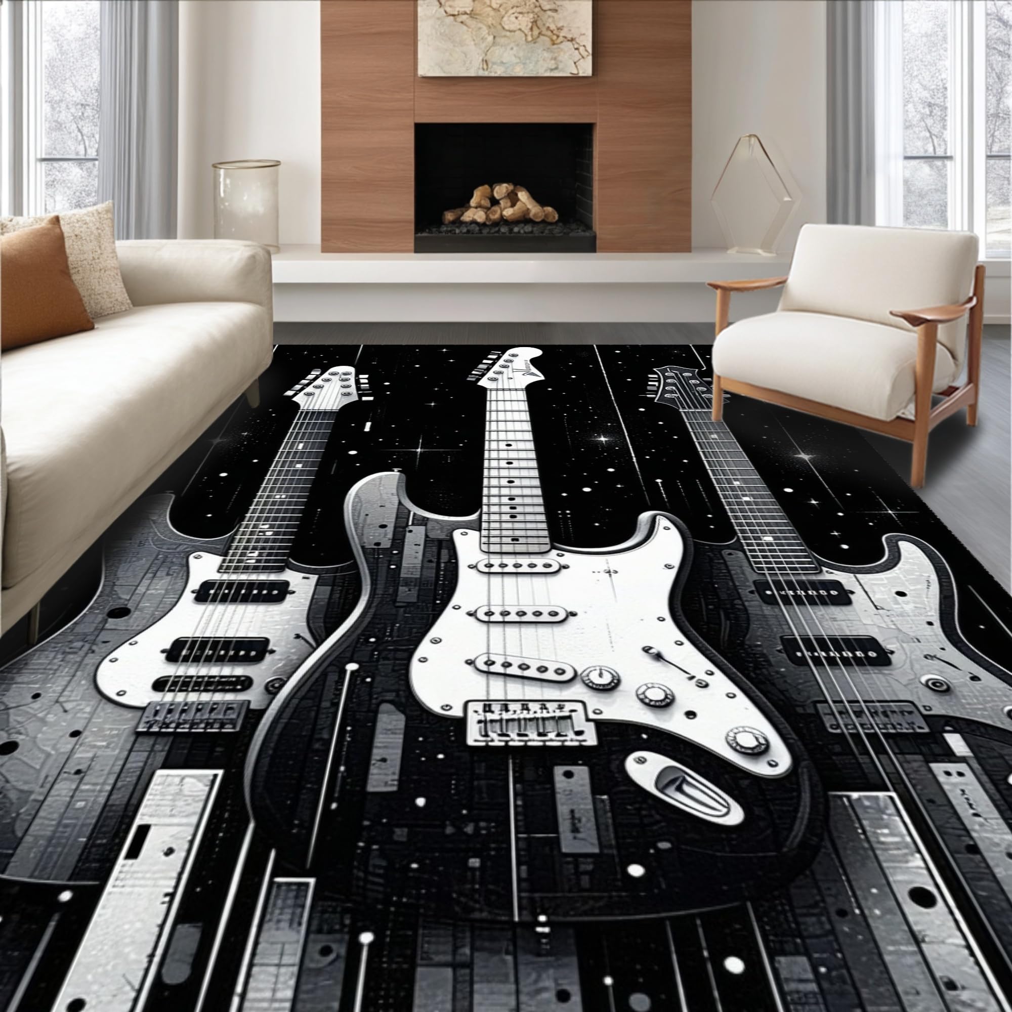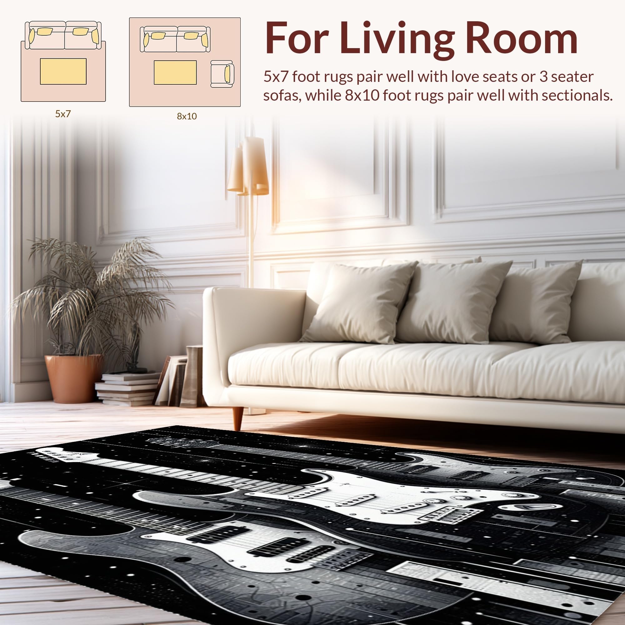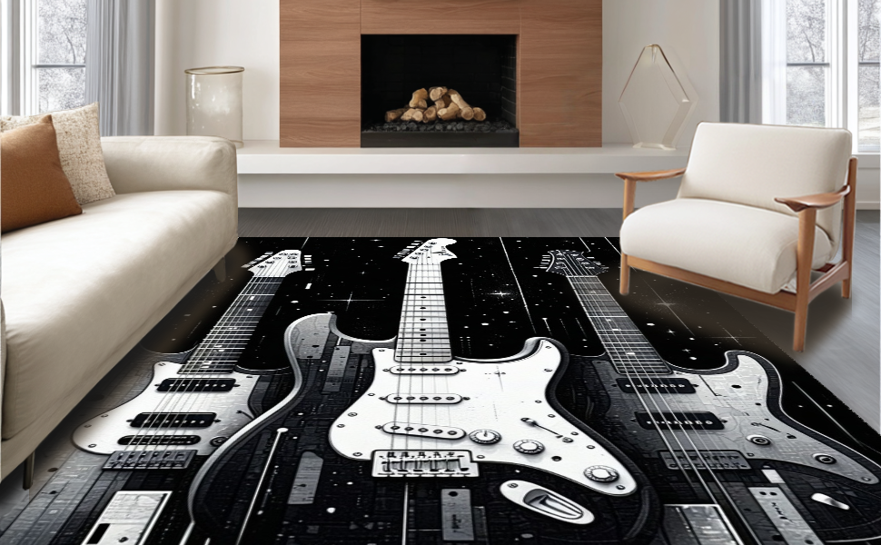 Ultra Soft Area Rug, Non Slip, Stain Resistant, Washable Area Rugs for Living Room, Bedroom, Modern 3D Guitar Artistry(Gray) Overview: