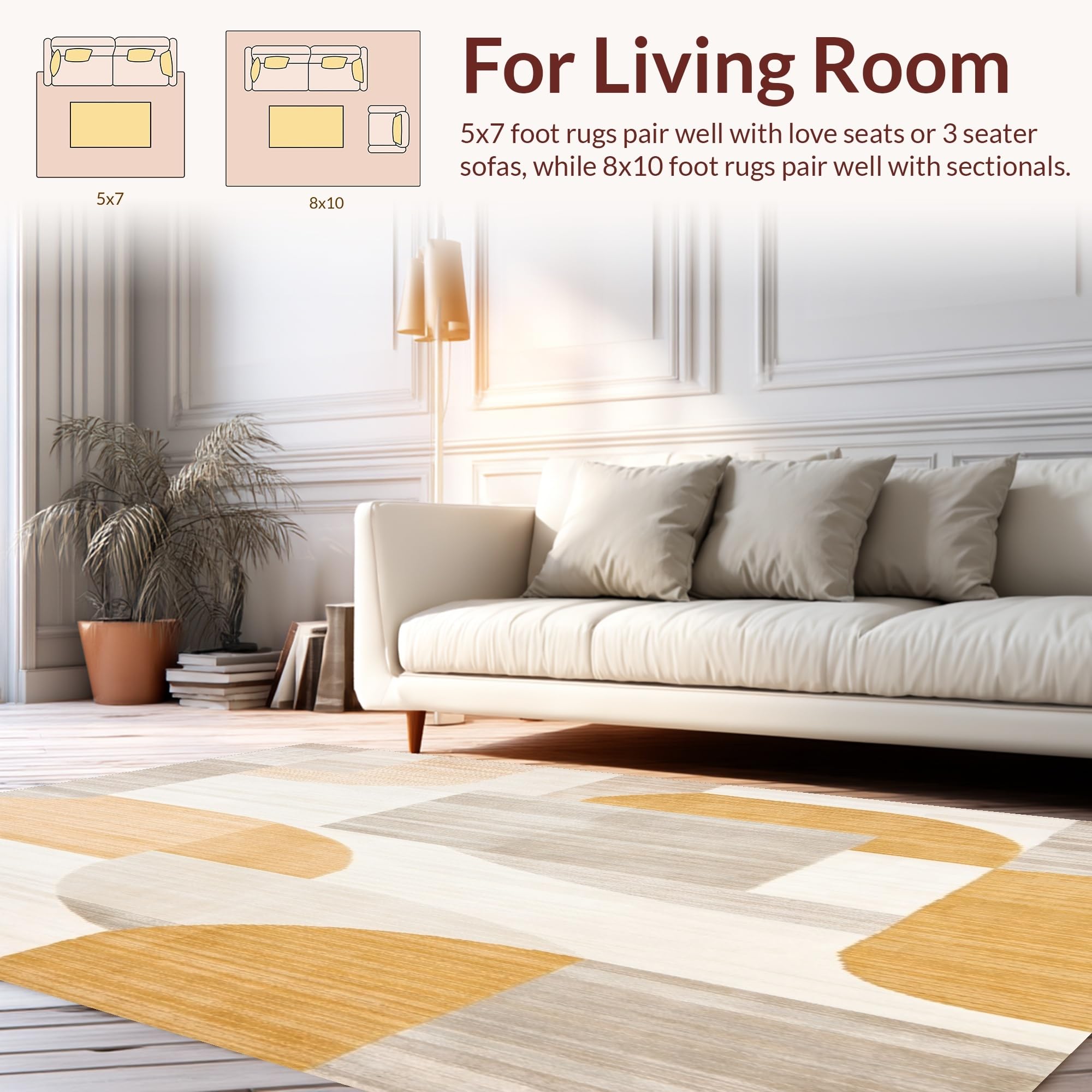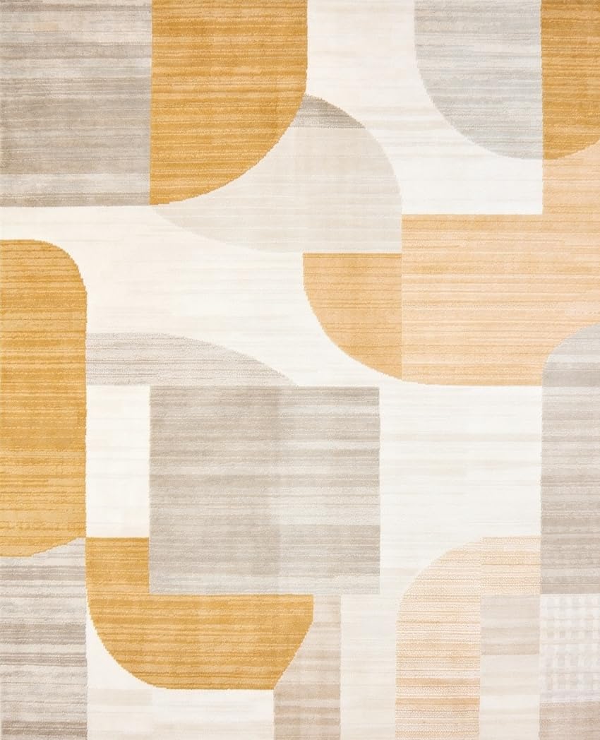 Ultra Soft Area Rug, Non Slip, Stain Resistant, Washable Area Rugs for Living Room, Bedroom, Modern Abstract Area Beige Camel Geometric Design(Beige) Overview: