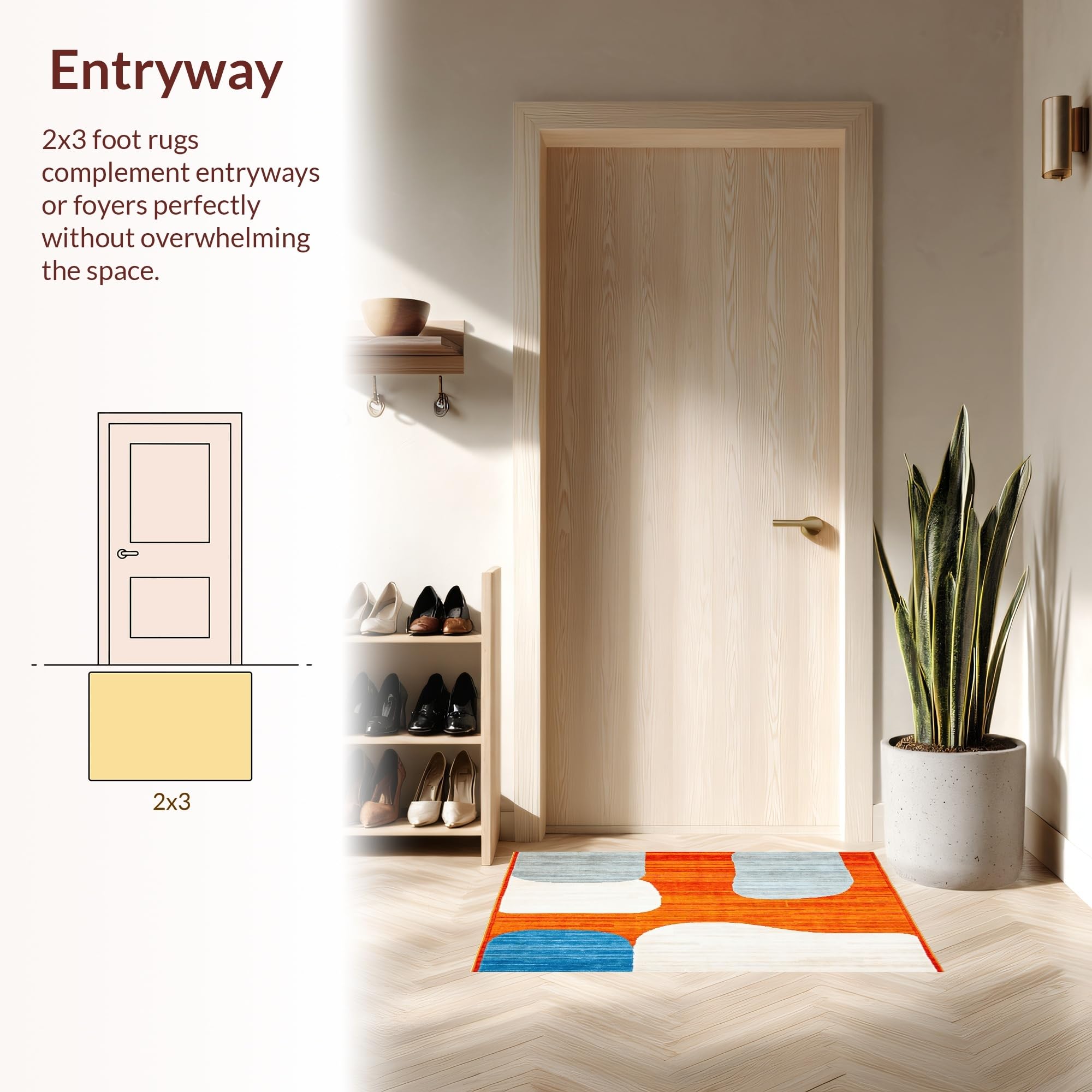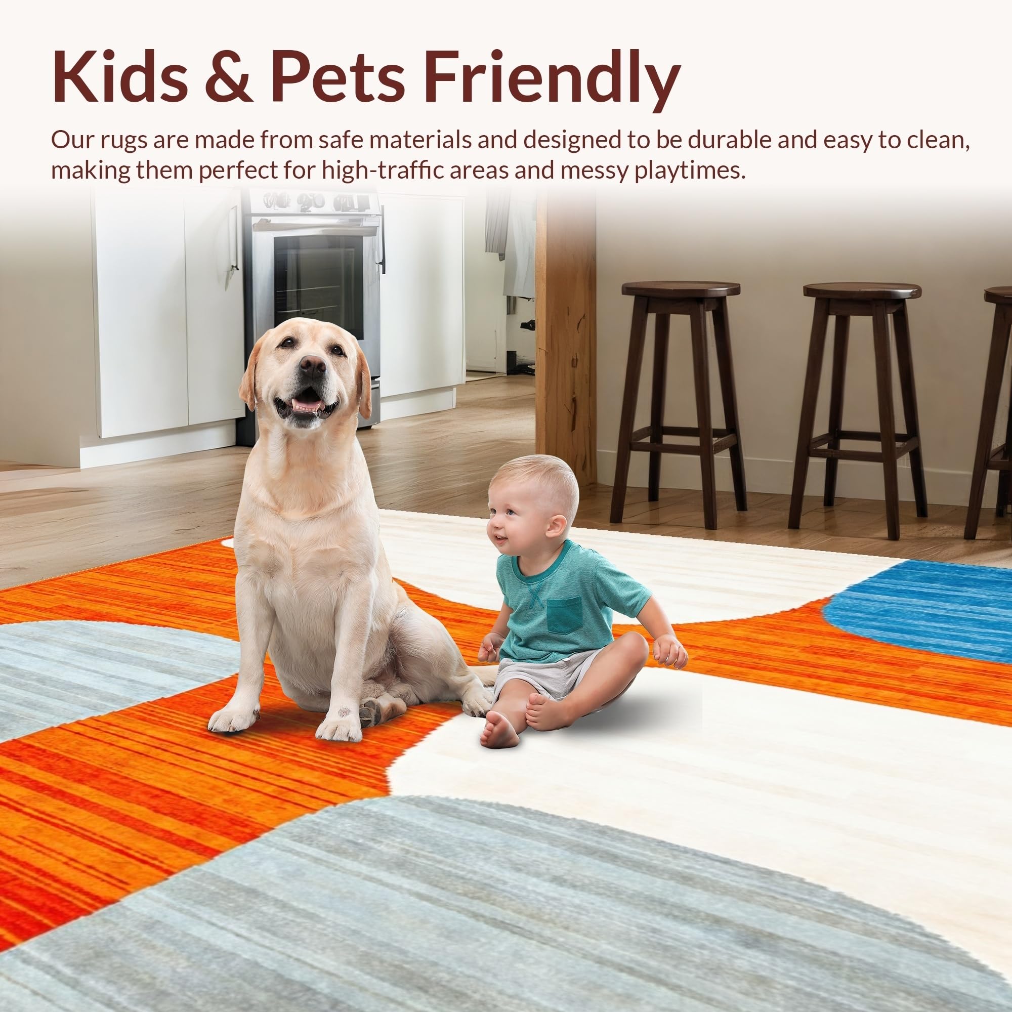 Ultra Soft Area Rug, Non Slip, Stain Resistant, Washable Area Rugs for Living Room, Bedroom, Modern Abstract Area Blue & Orange Woven Design(Orange) Overview: