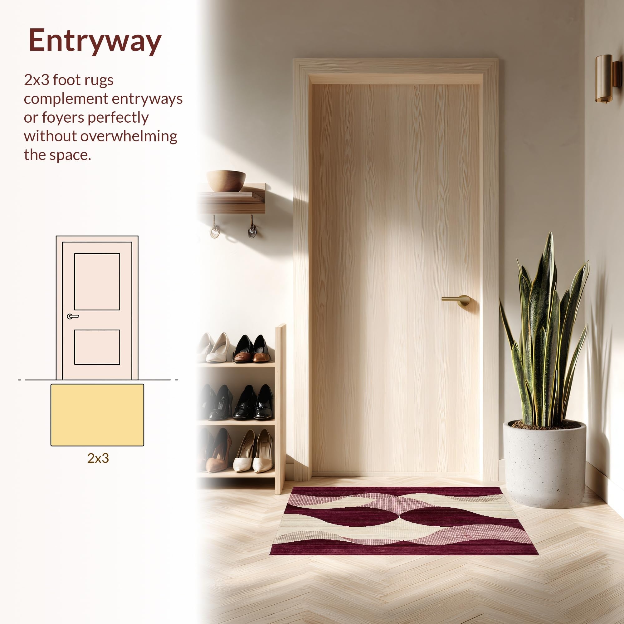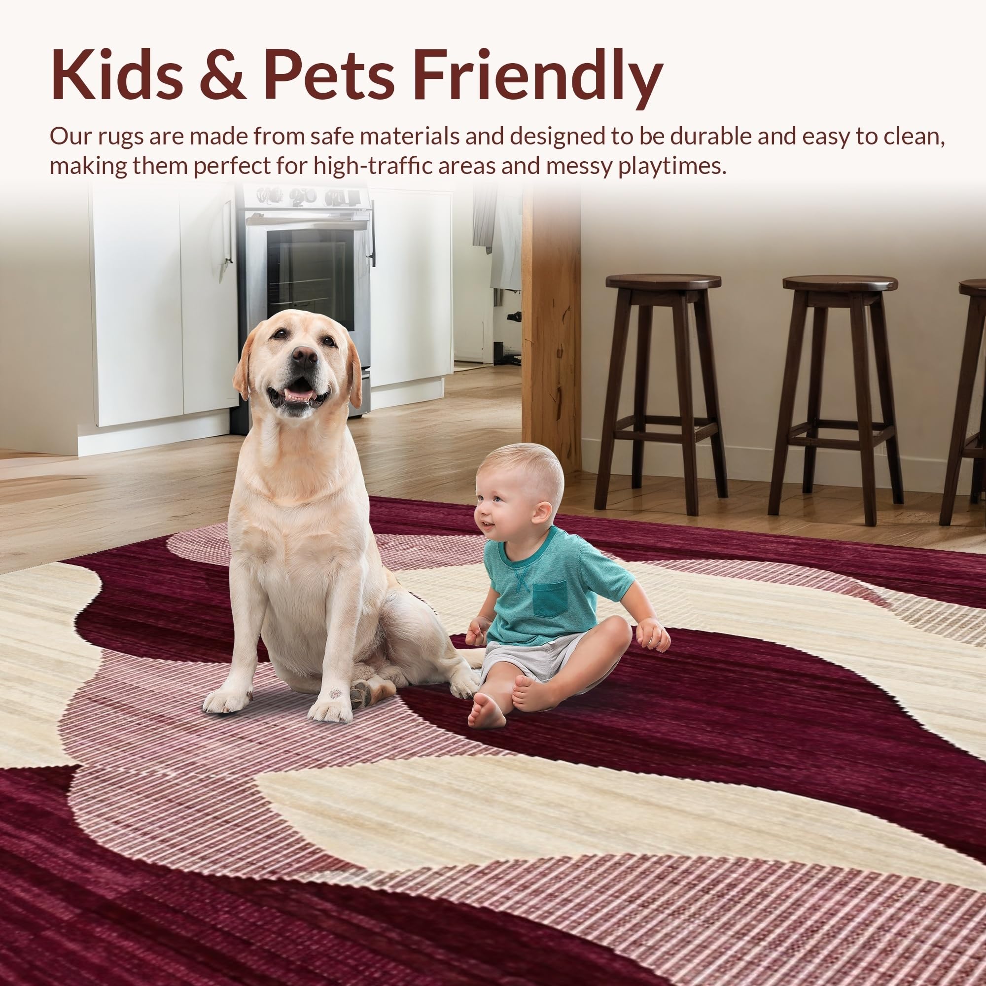 Ultra Soft Area Rug, Non Slip, Stain Resistant, Washable Area Rugs for Living Room, Bedroom, Modern Abstract Area Featuring Intricate Burgundy Wave(Purple) Overview: