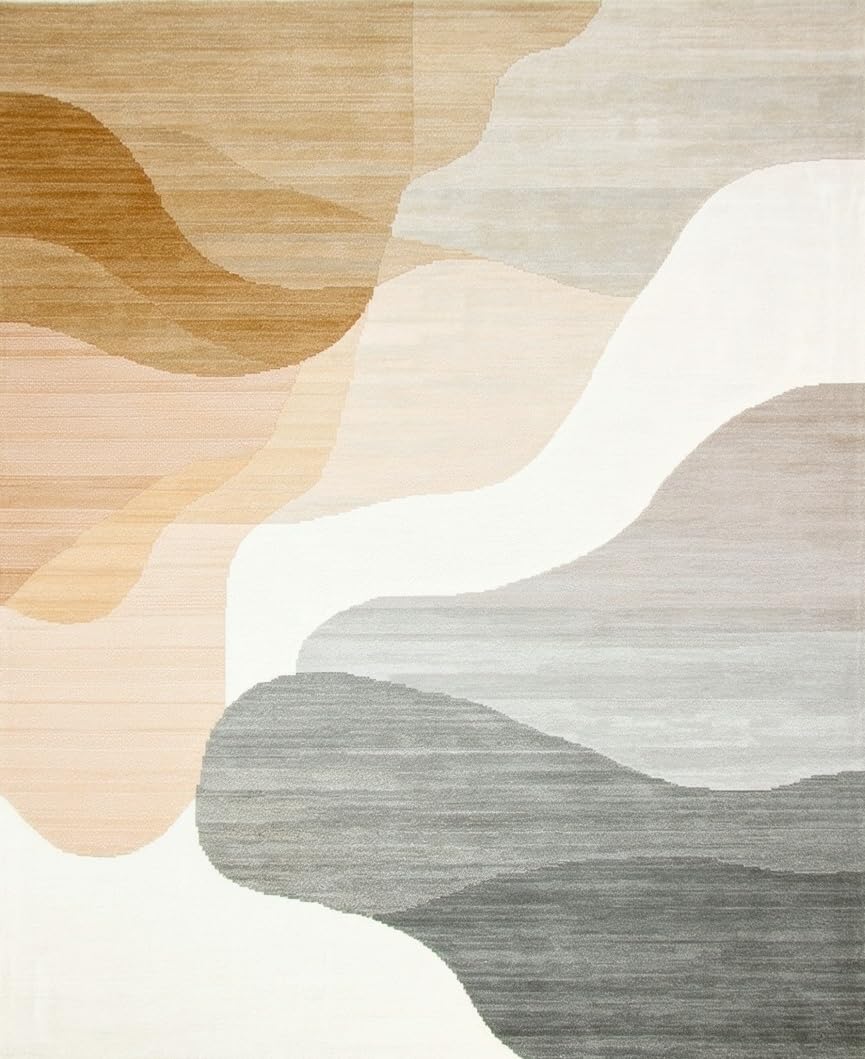 Ultra Soft Area Rug, Non Slip, Stain Resistant, Washable Area Rugs for Living Room, Bedroom, Modern Abstract Area Tan Beige Geometric Design(Beige) Overview: