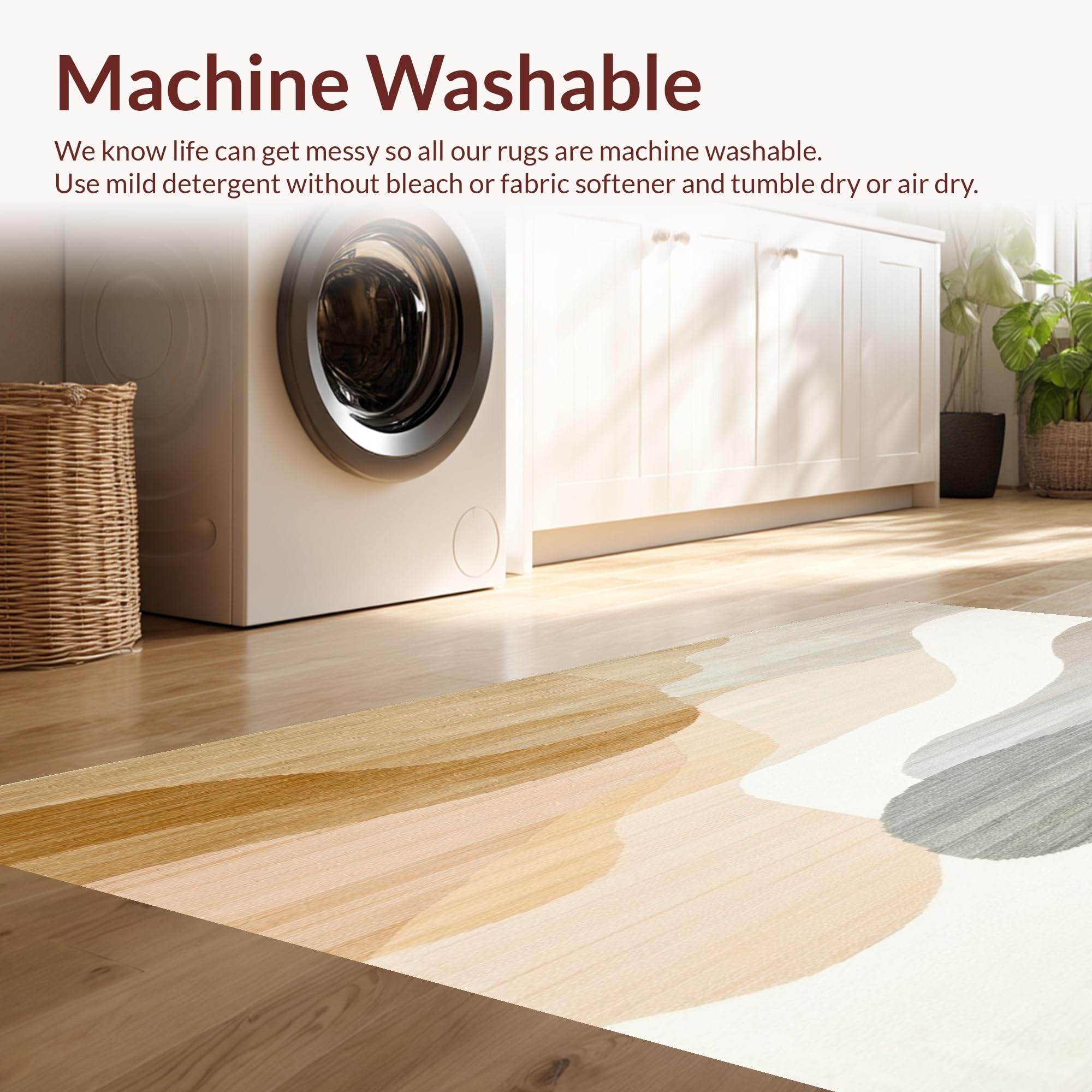 - Machine Washable: Our rugs can be easily thrown in the wash machine.