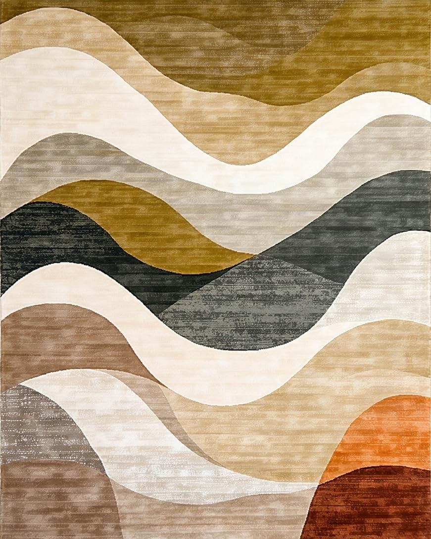 Modern Abstract Beige and Brown Area Featuring Artistic Wave(Beige)