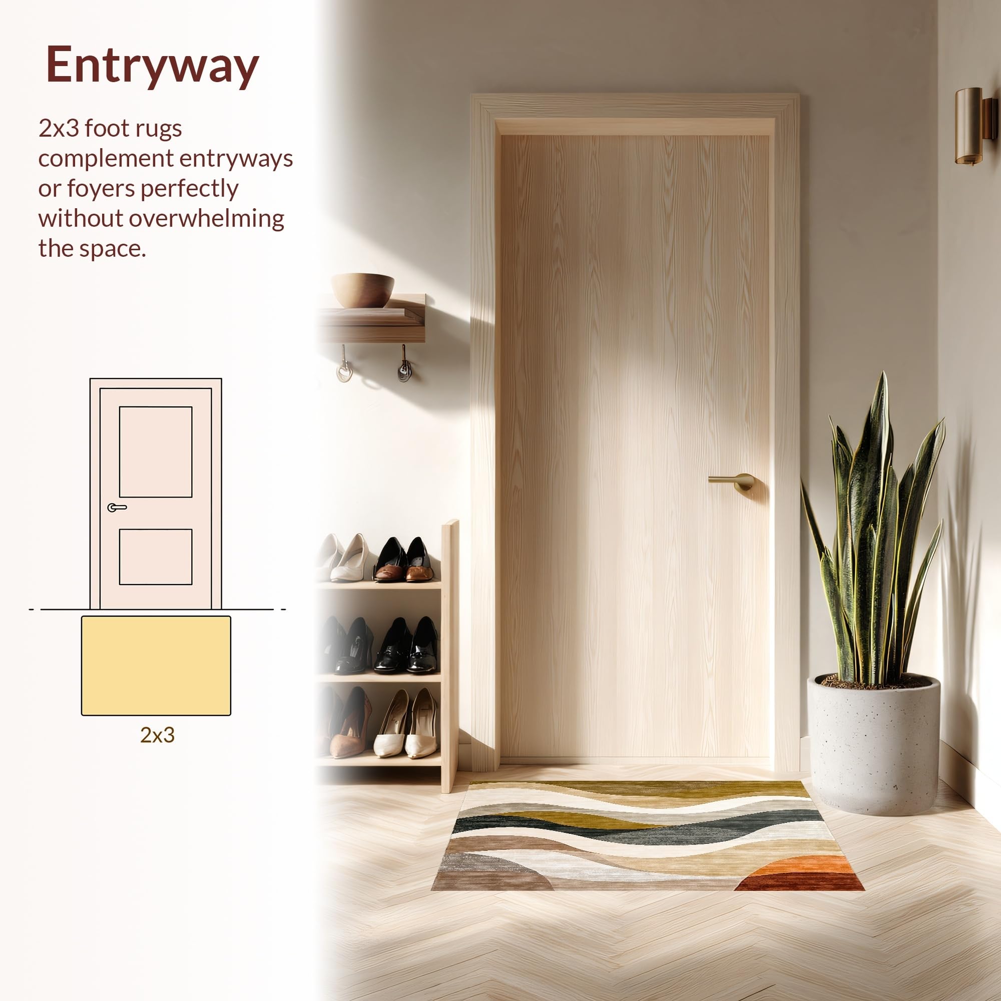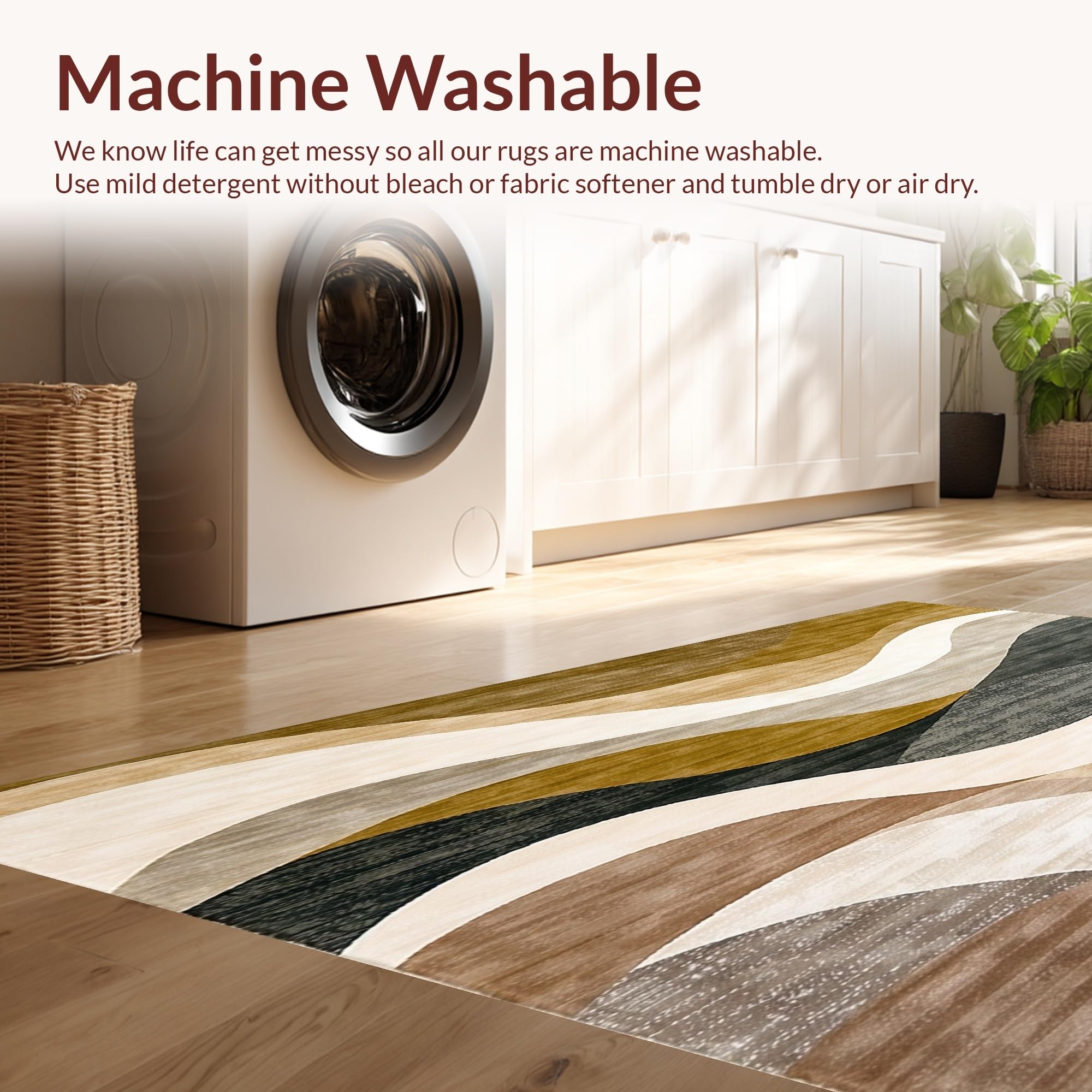 Ultra Soft Area Rug, Non Slip, Stain Resistant, Washable Area Rugs for Living Room, Bedroom, Modern Abstract Beige and Brown Area Featuring Artistic Wave(Beige) Overview: