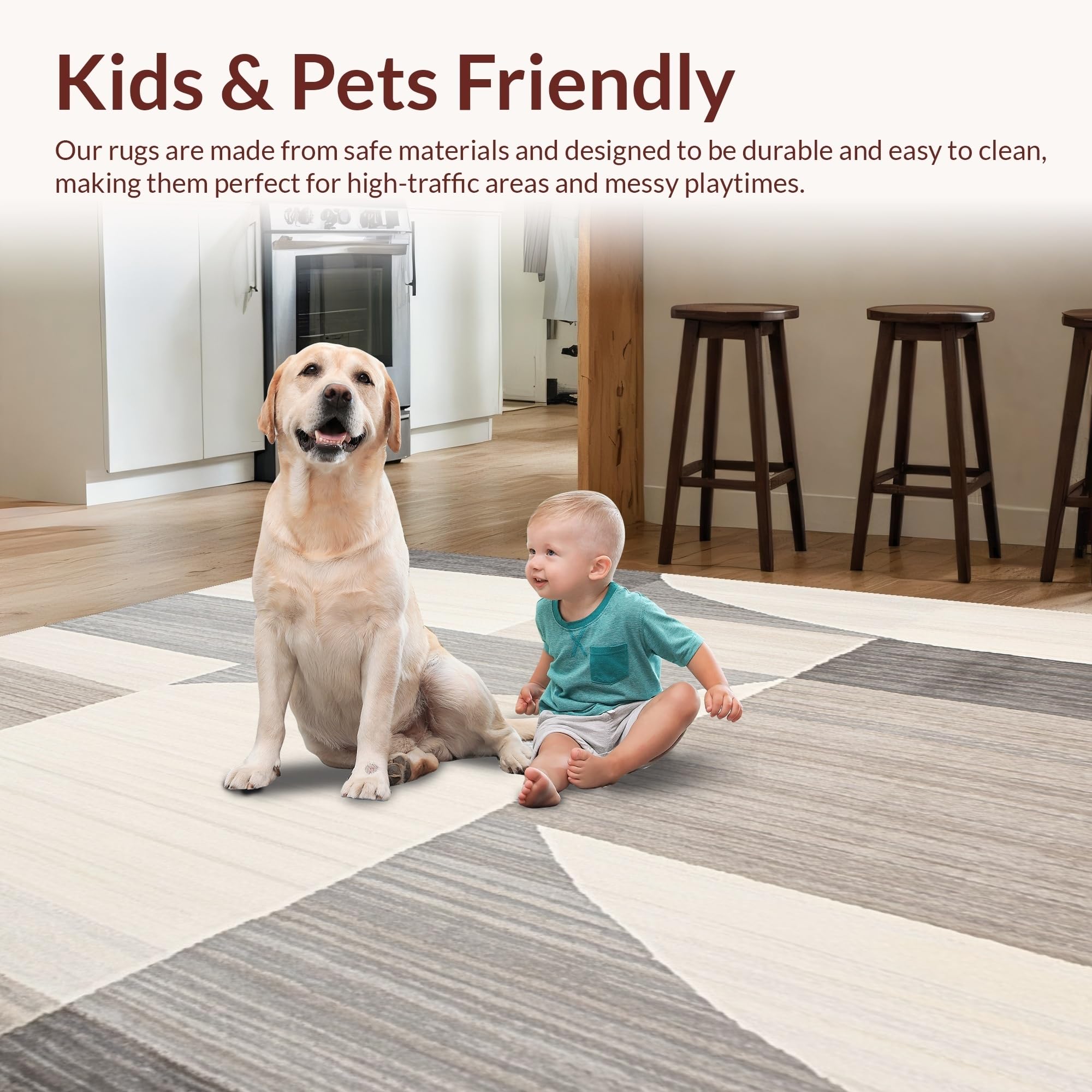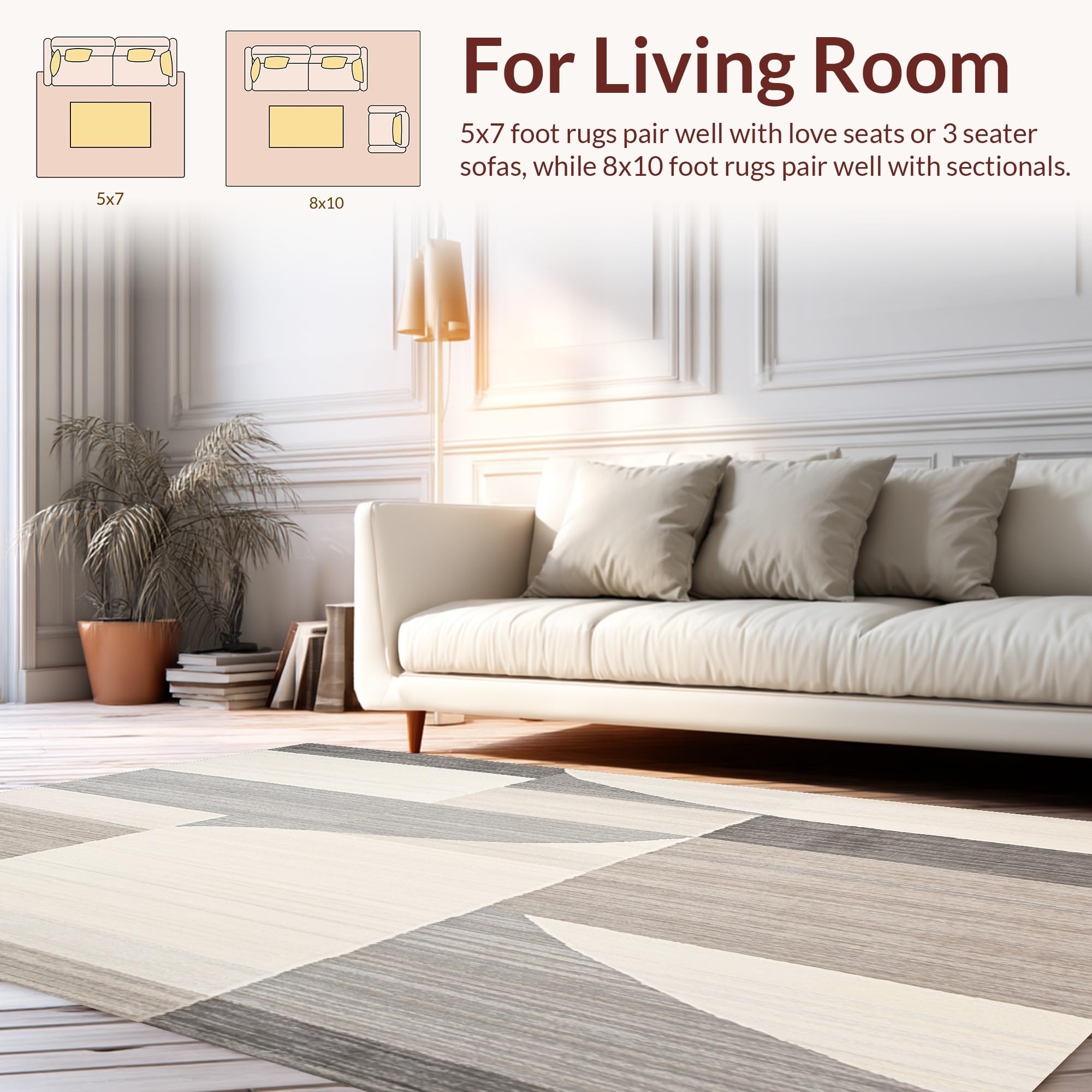 Ultra Soft Area Rug, Non Slip, Stain Resistant, Washable Area Rugs for Living Room, Bedroom, Modern Abstract Beige Area Geometric Slate Design(Gray) Overview: