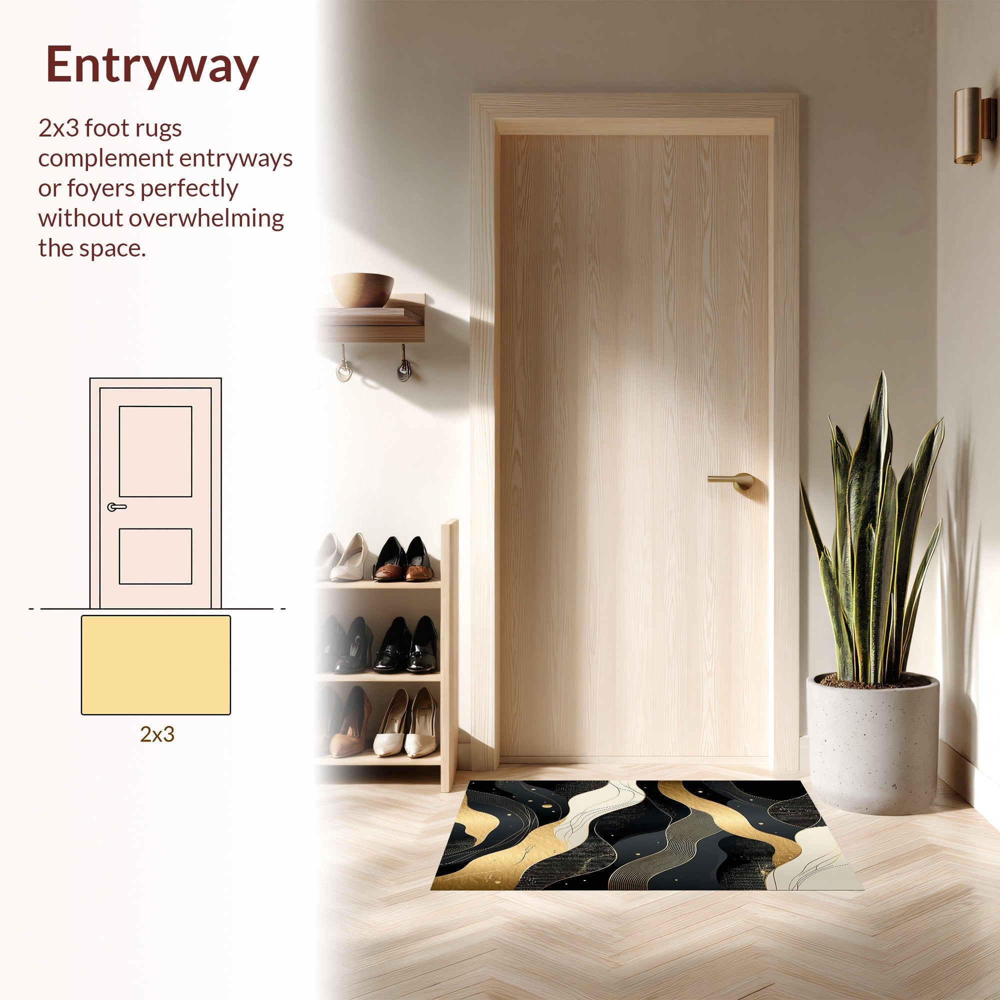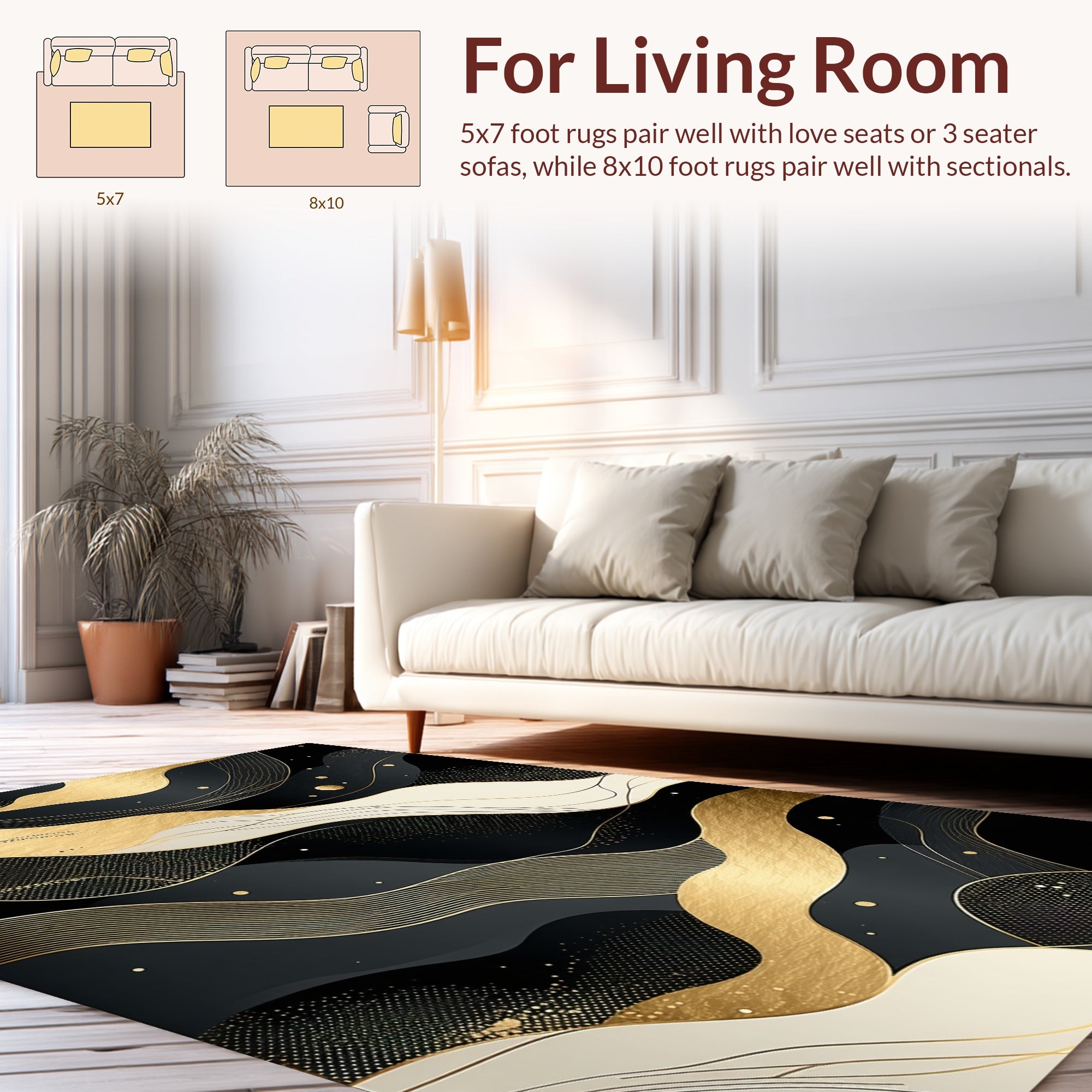 Ultra Soft Area Rug, Non Slip, Stain Resistant, Washable Area Rugs for Living Room, Bedroom, Modern Abstract Black and Gold Area Rug with Fluid Geometric Swirls and Accents(Black) Overview: