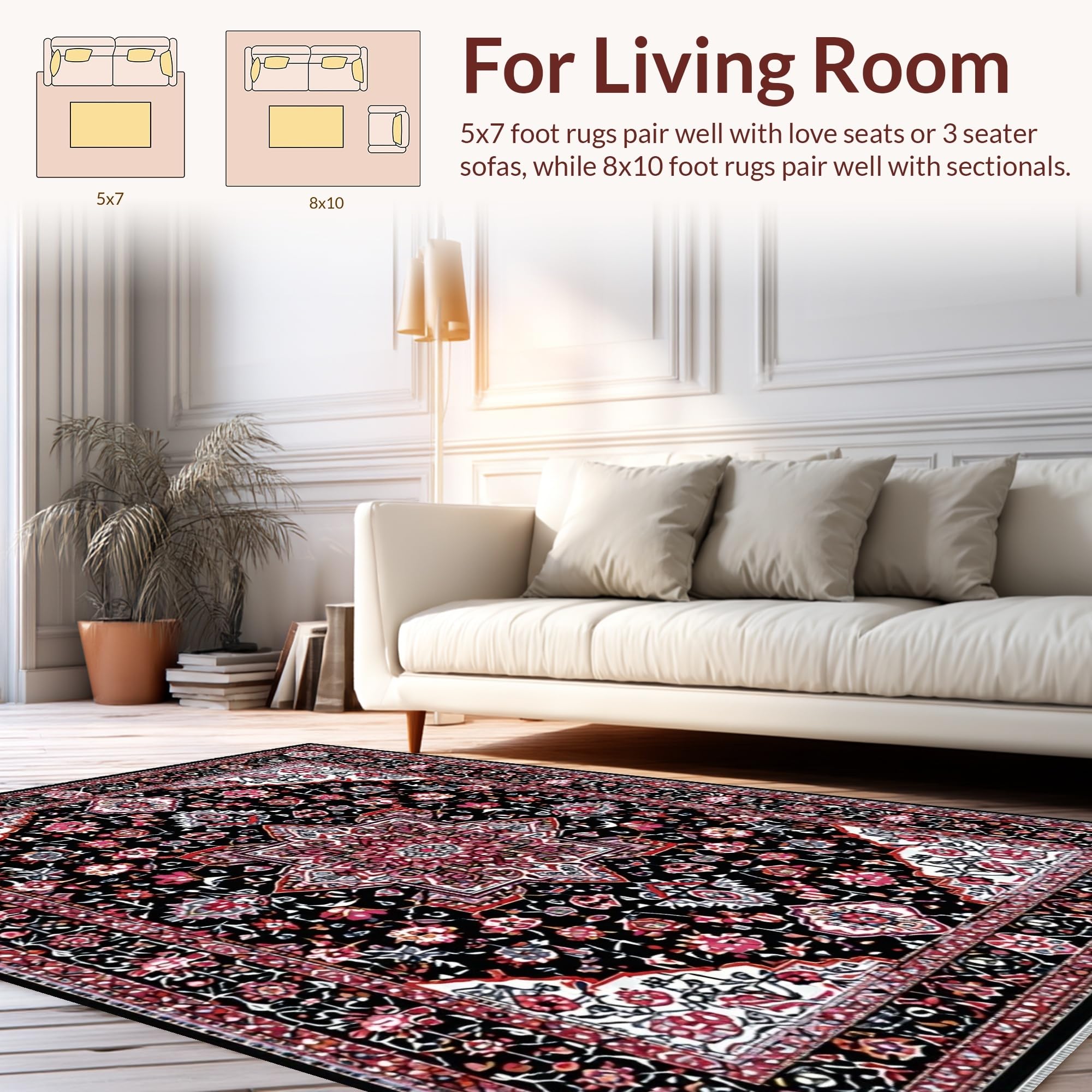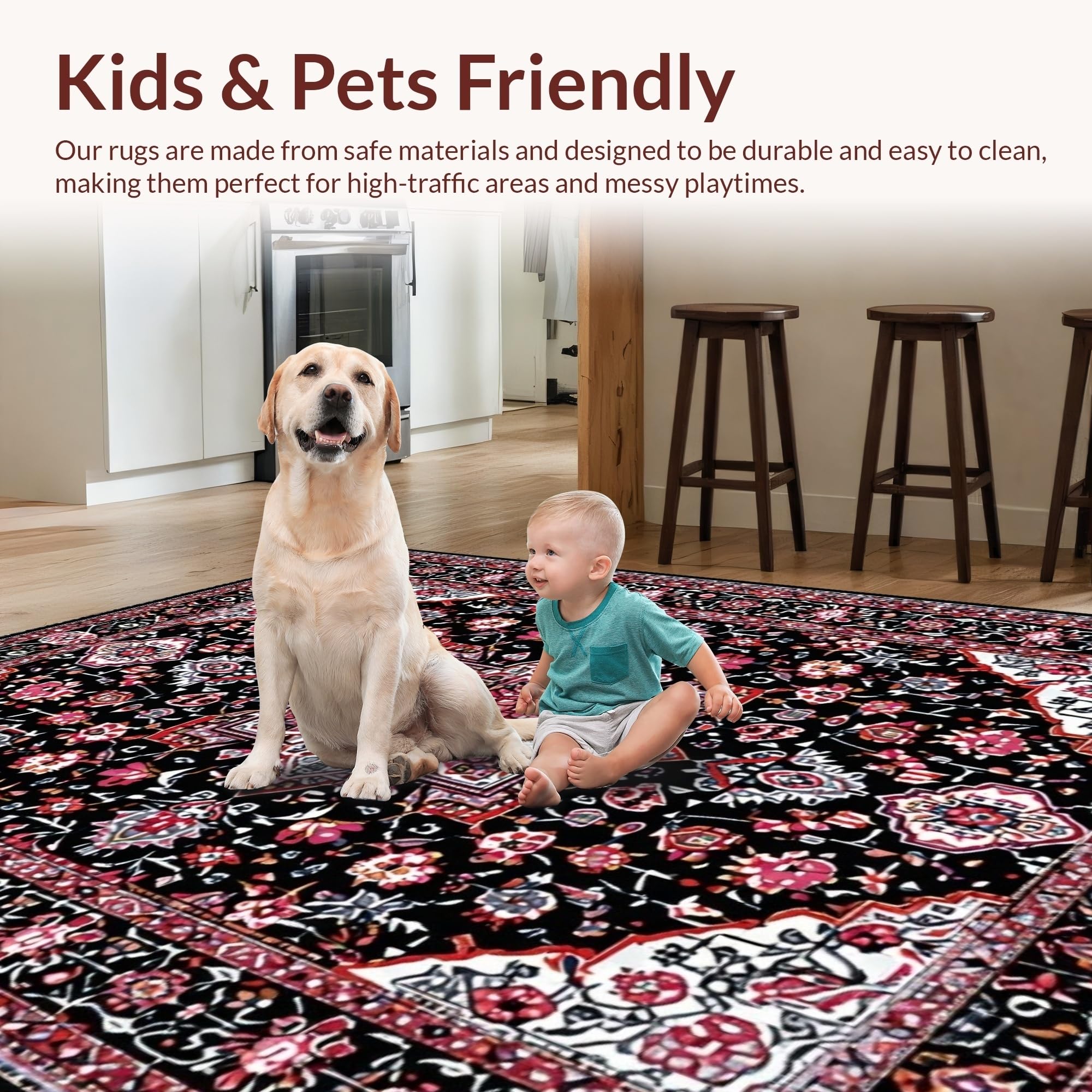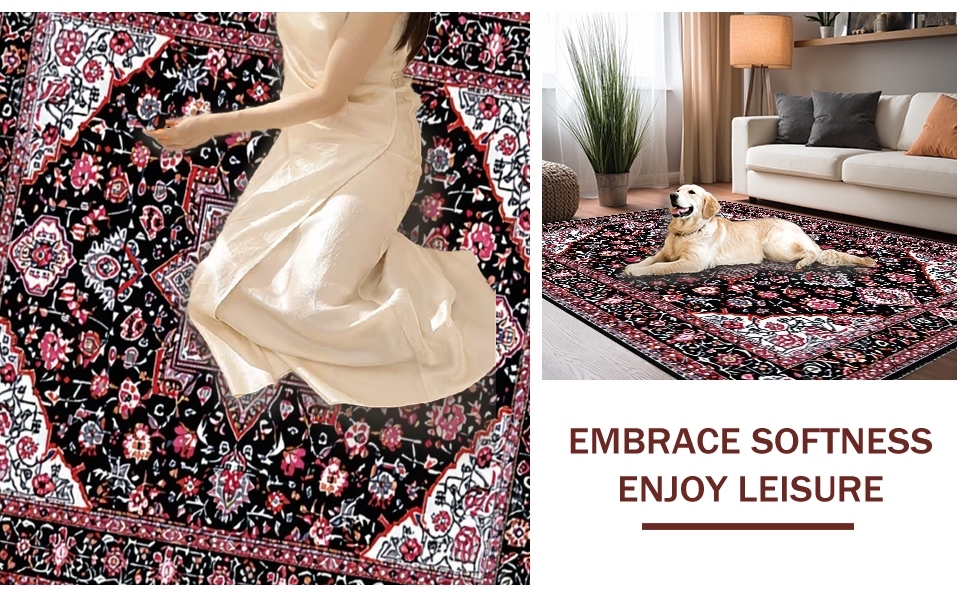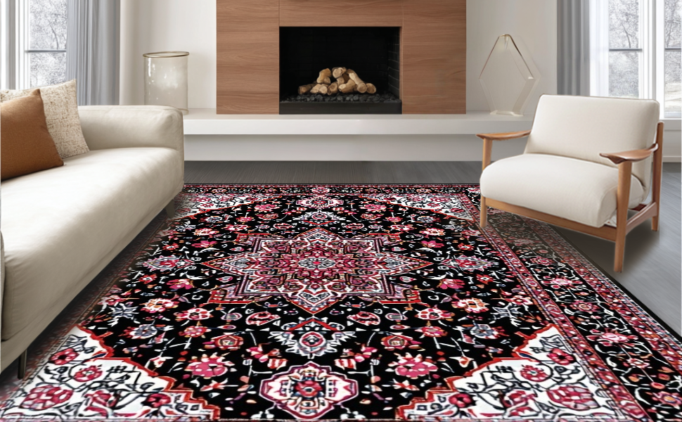 Ultra Soft Area Rug, Non Slip, Stain Resistant, Washable Area Rugs for Living Room, Bedroom, Modern Abstract Botanical Print(Black) Overview: