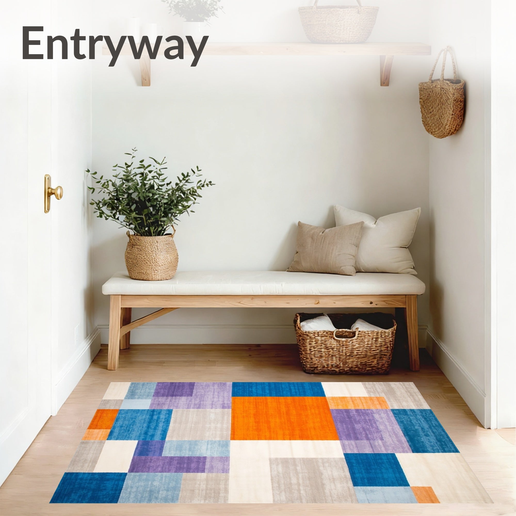 Flatwoven High Traffic Area Rug, Modern Abstract Color with Artistic Flair, Non Slip, Stain Resistant, Washable Area Rugs for Living Room, Bedroom (Blue) Overview: