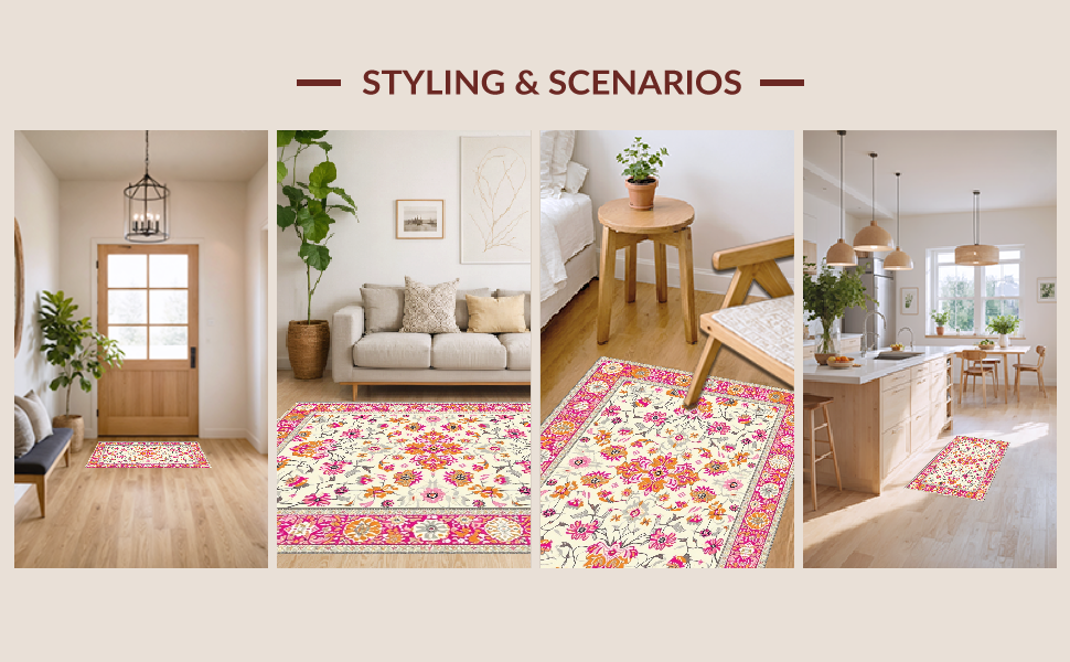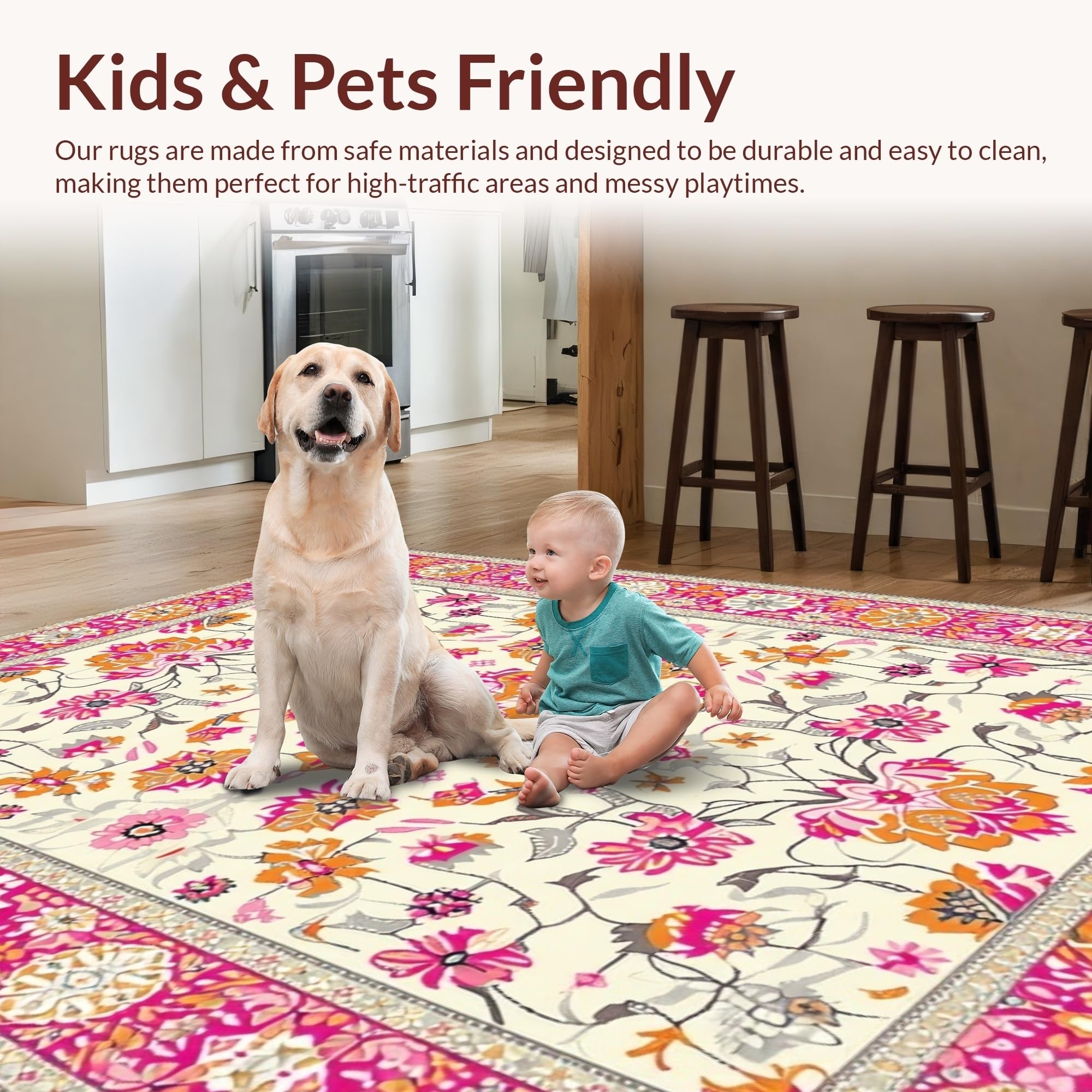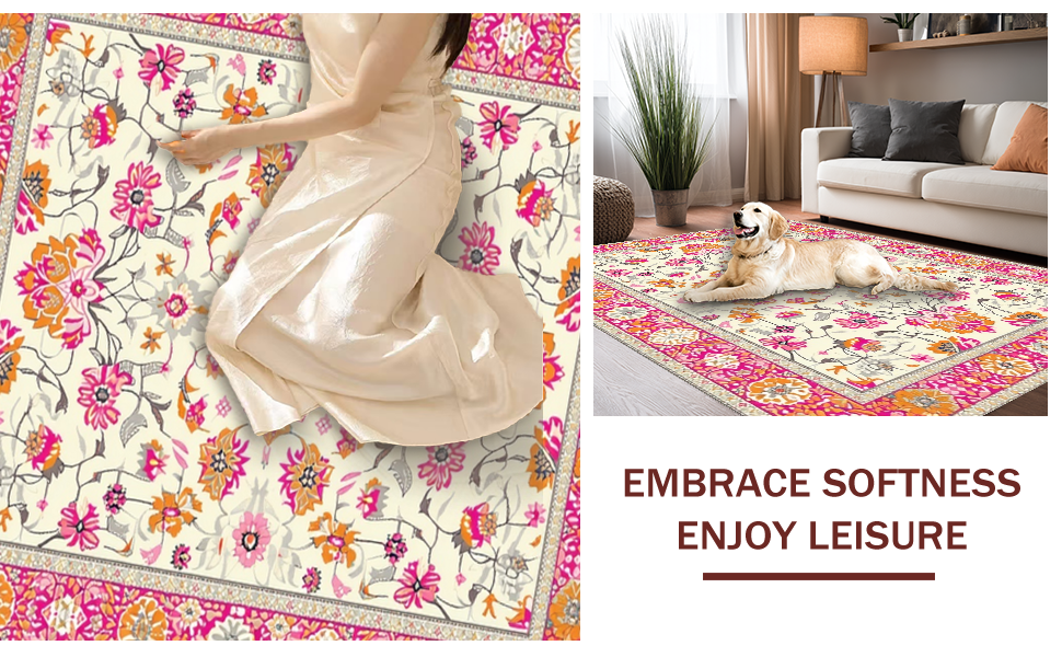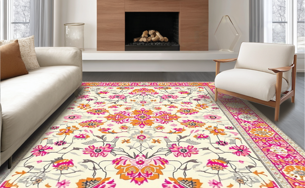 Ultra Soft Area Rug, Non Slip, Stain Resistant, Washable Area Rugs for Living Room, Bedroom, Modern Abstract Floral Aesthetics(Ivory) Overview: