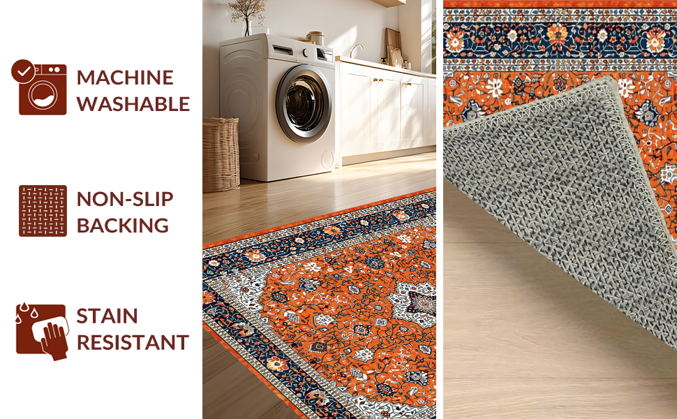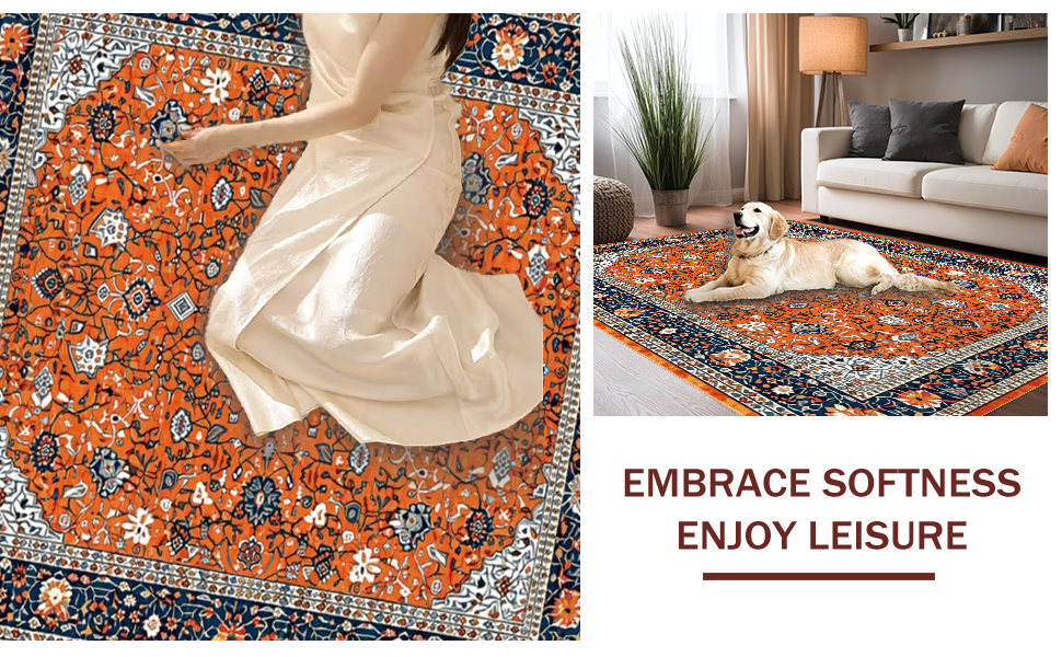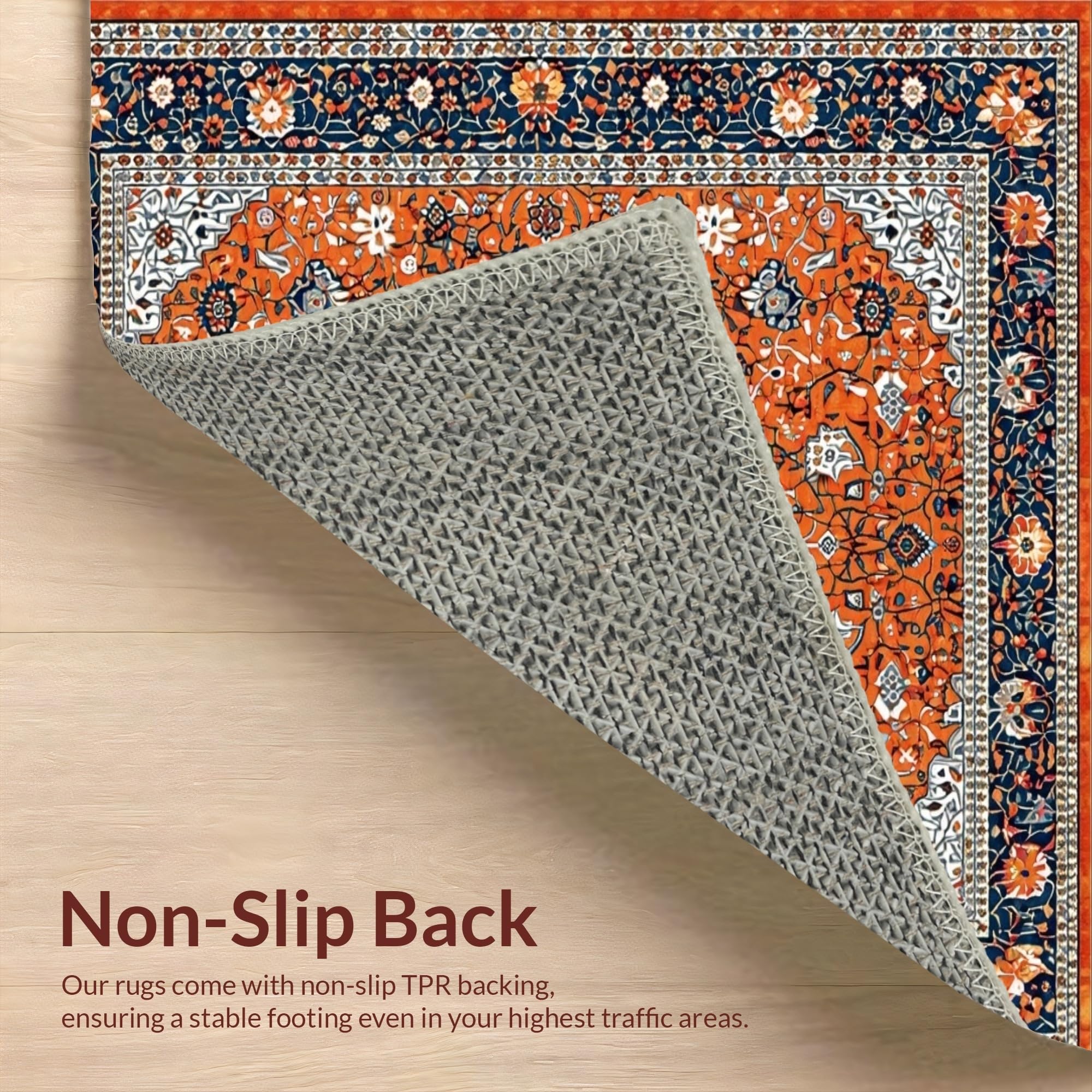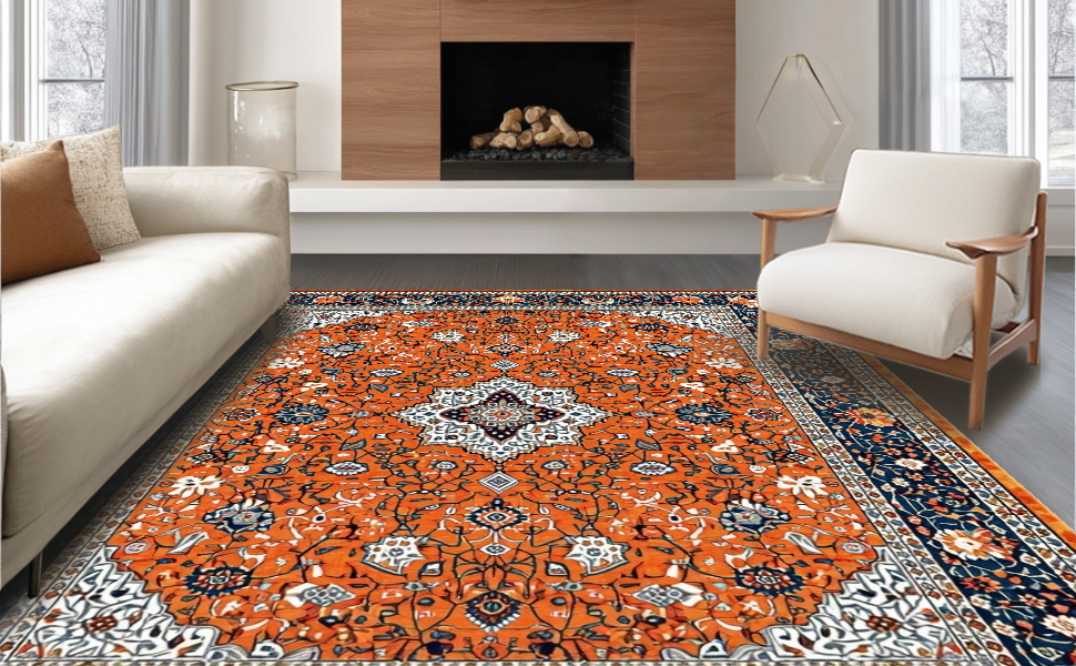 Ultra Soft Area Rug, Non Slip, Stain Resistant, Washable Area Rugs for Living Room, Bedroom, Modern Abstract Floral Fusion(Orange) Overview: