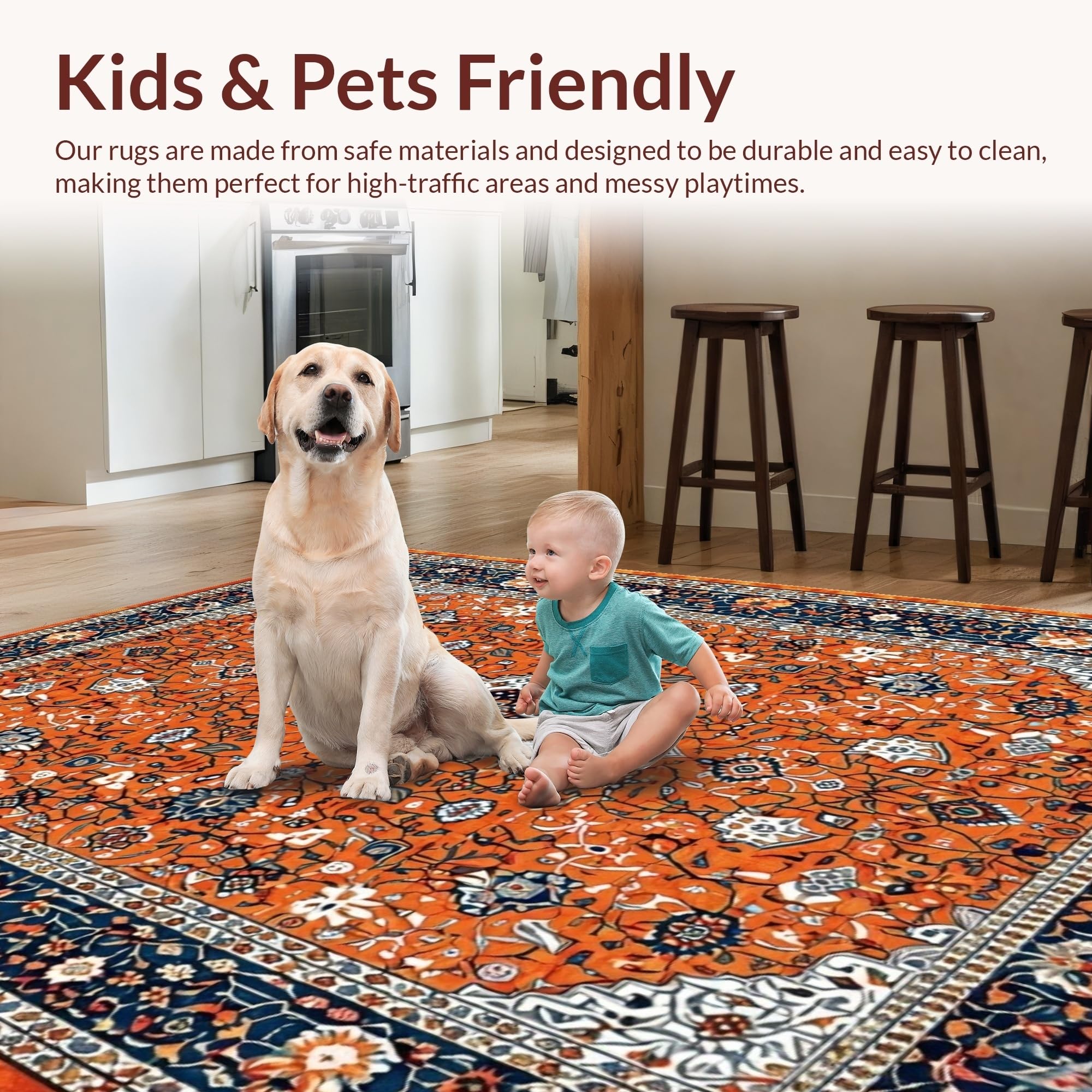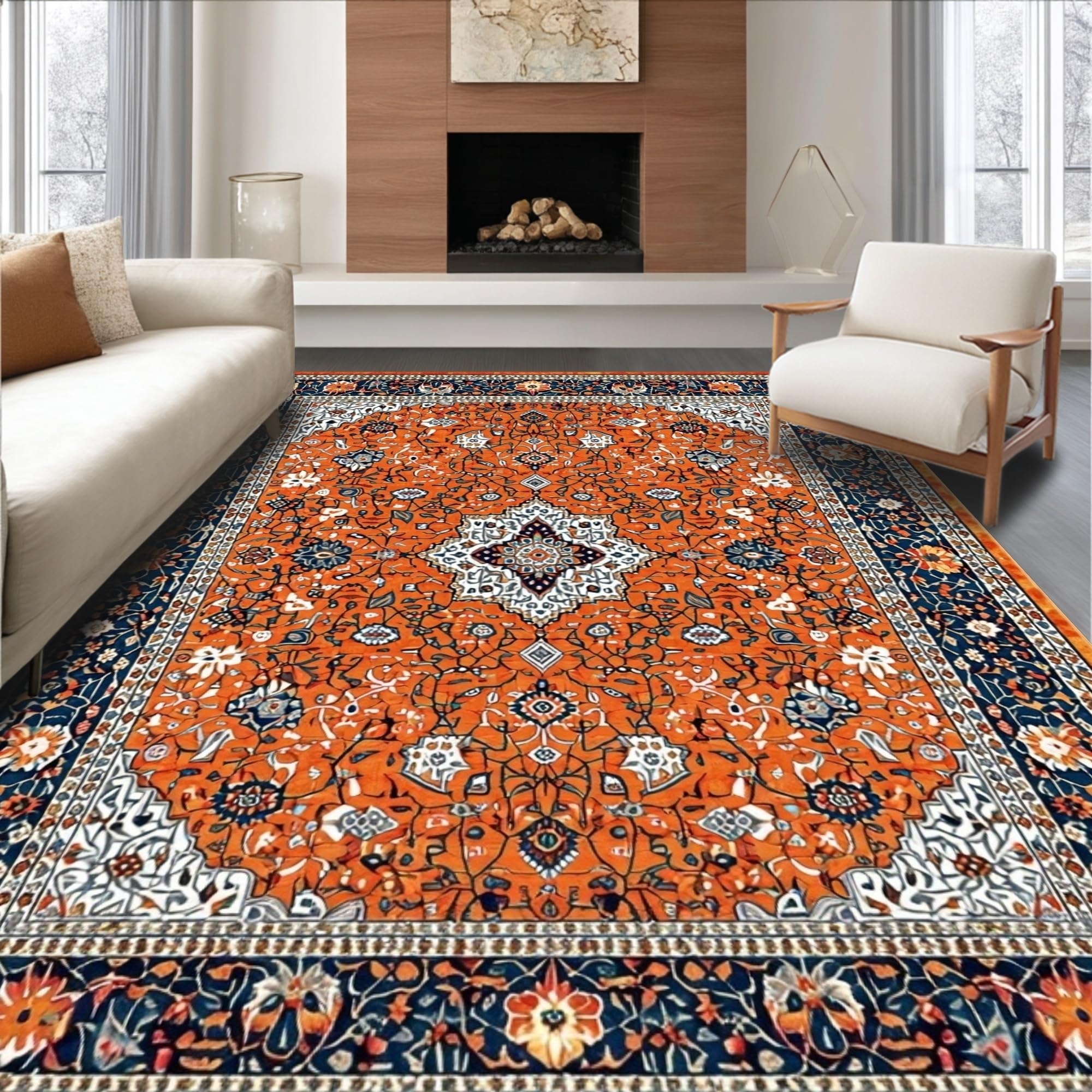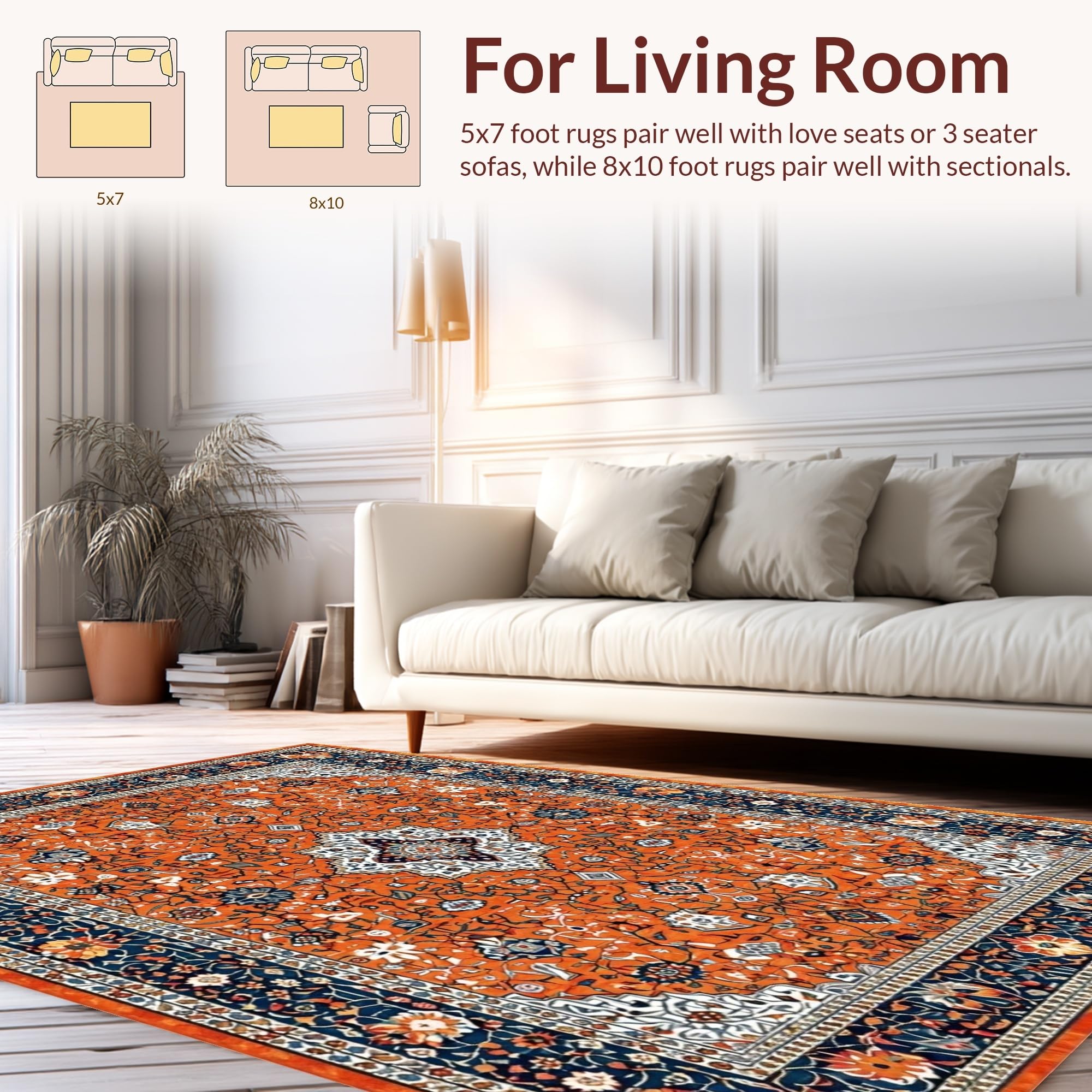 Ultra Soft Area Rug, Non Slip, Stain Resistant, Washable Area Rugs for Living Room, Bedroom, Modern Abstract Floral Fusion(Orange) Overview:
