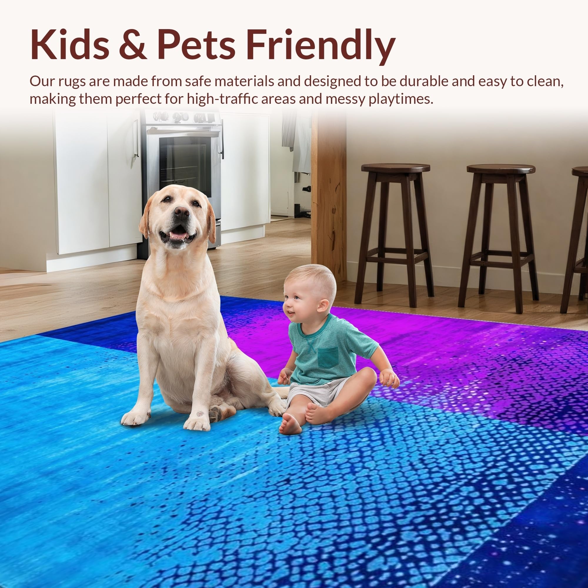 Ultra Soft Area Rug, Non Slip, Stain Resistant, Washable Area Rugs for Living Room, Bedroom, Modern Abstract Gradient Design(Blue) Overview: