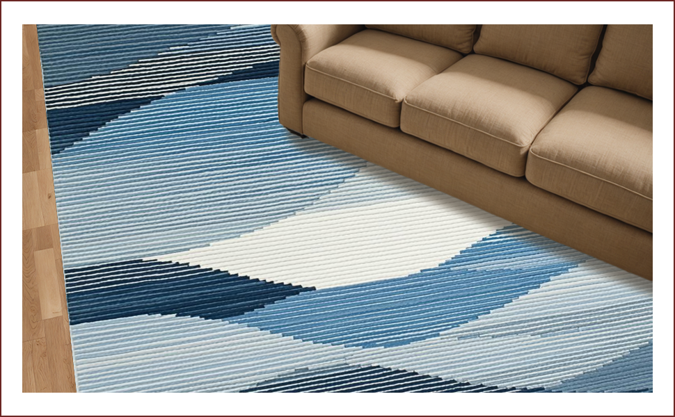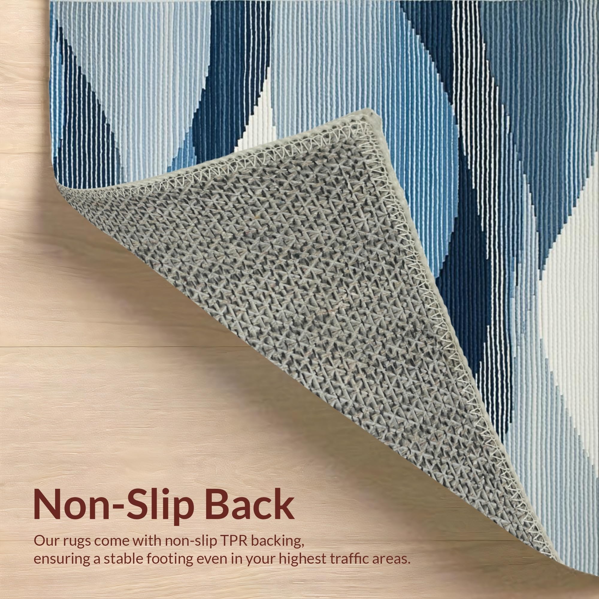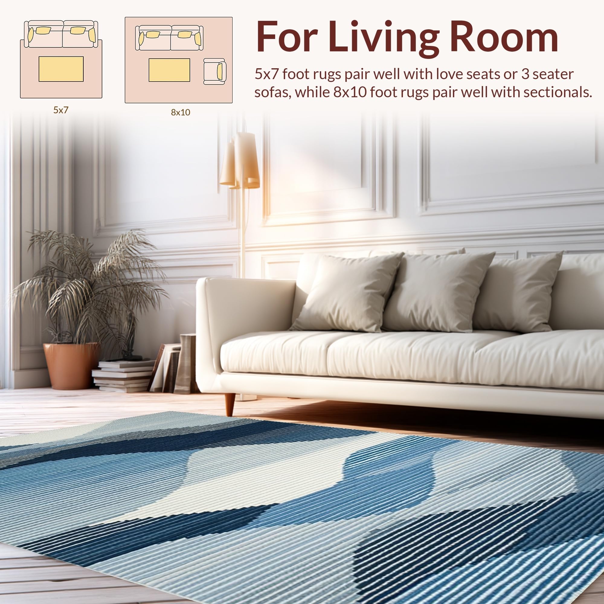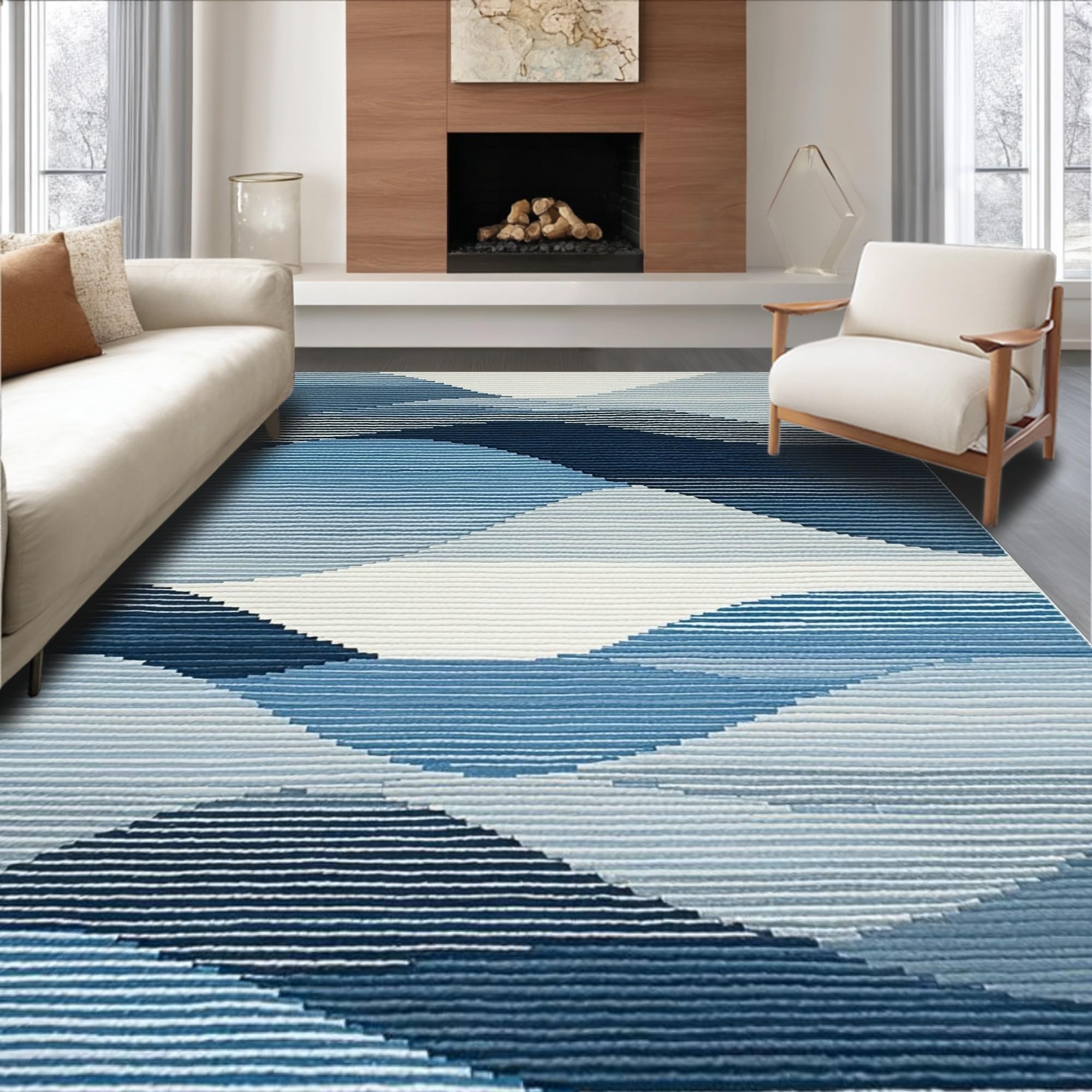 Ultra Soft Area Rug, Non Slip, Stain Resistant, Washable Area Rugs for Living Room, Bedroom, Modern Abstract Grey and Blue Fusion(Blue) Overview: