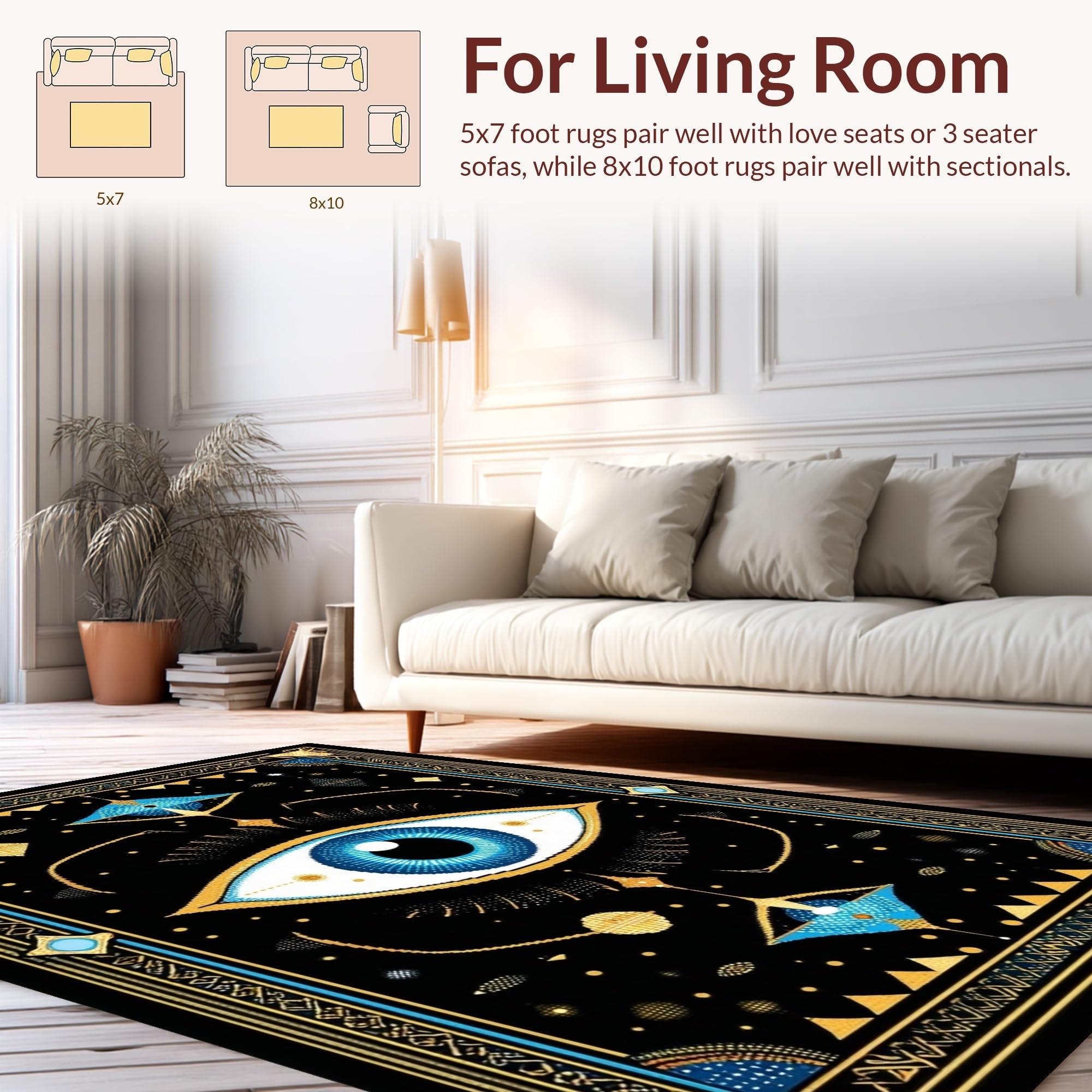 Ultra Soft Area Rug, Non Slip, Stain Resistant, Washable Area Rugs for Living Room, Bedroom, Modern Abstract Protective Pattern(Black) Overview: