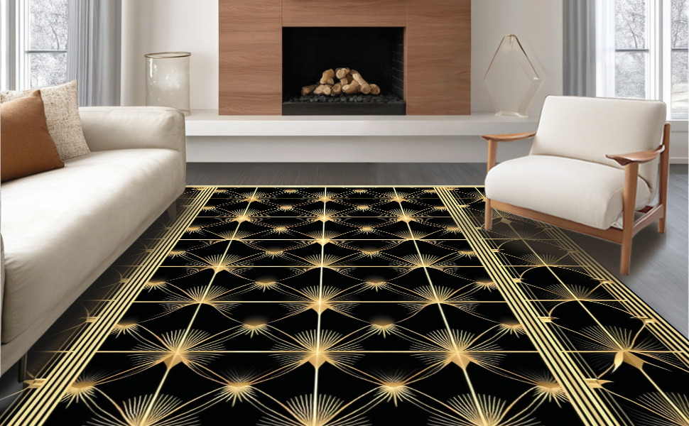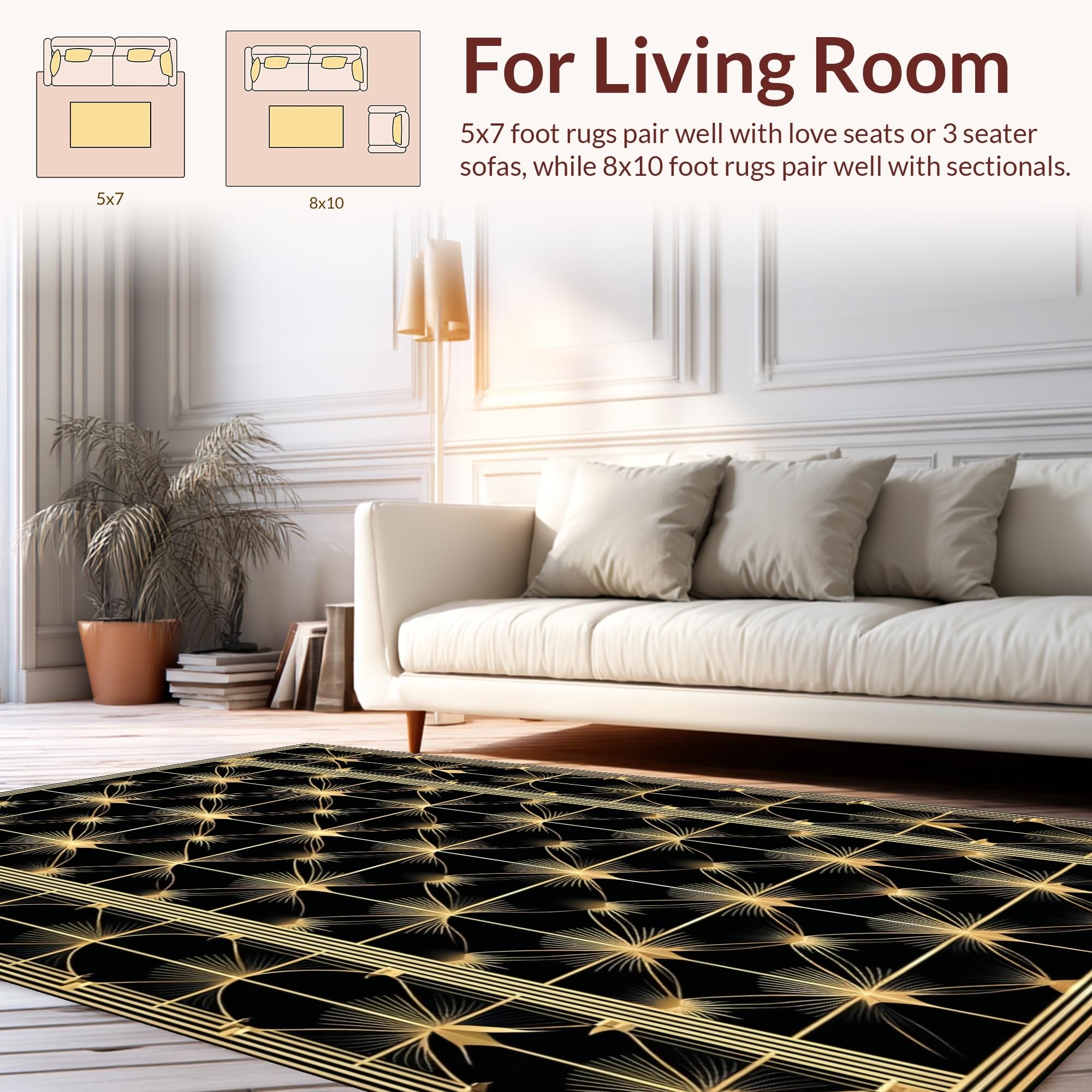 Ultra Soft Area Rug, Non Slip, Stain Resistant, Washable Area Rugs for Living Room, Bedroom, Modern Abstract Shell Patterning(Black) Overview: