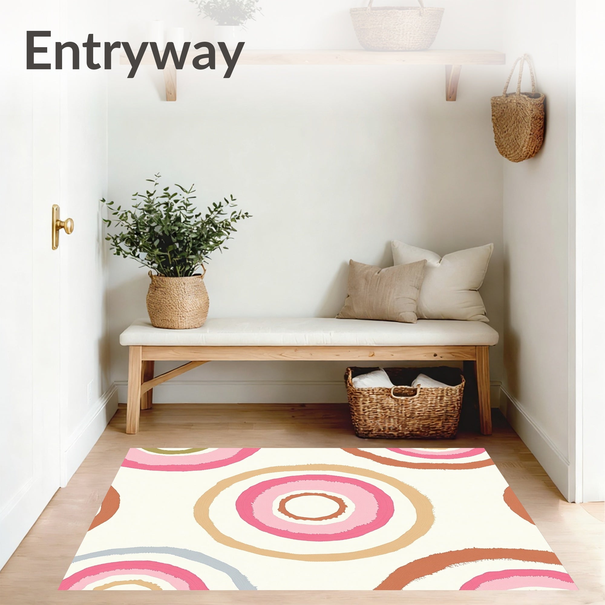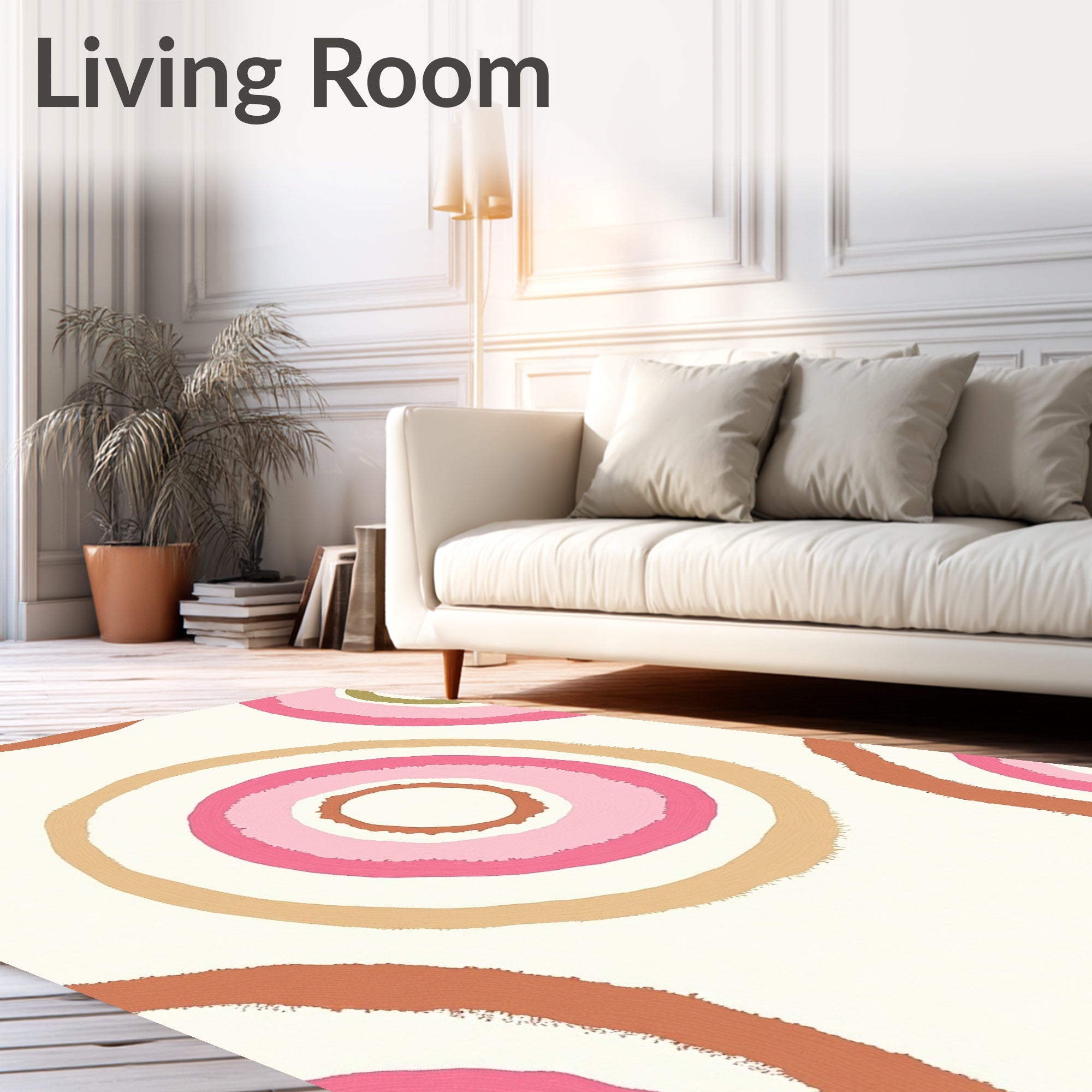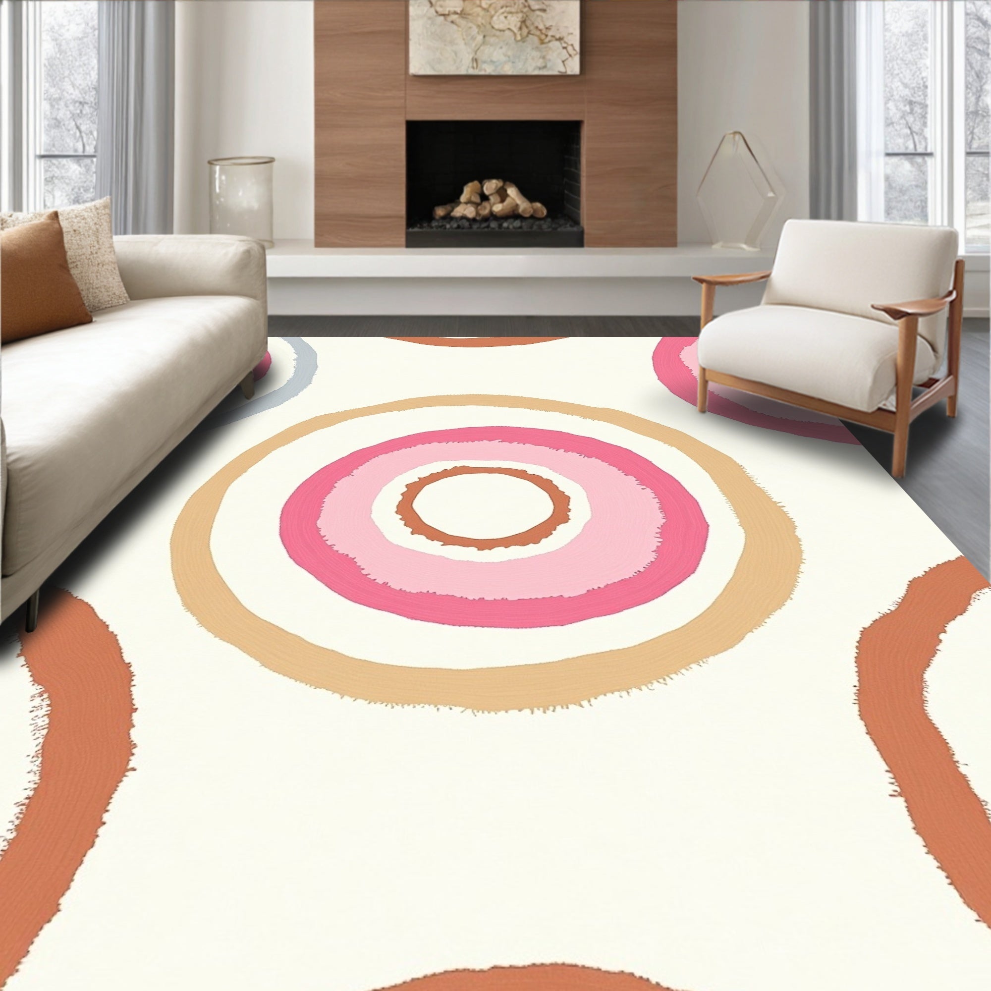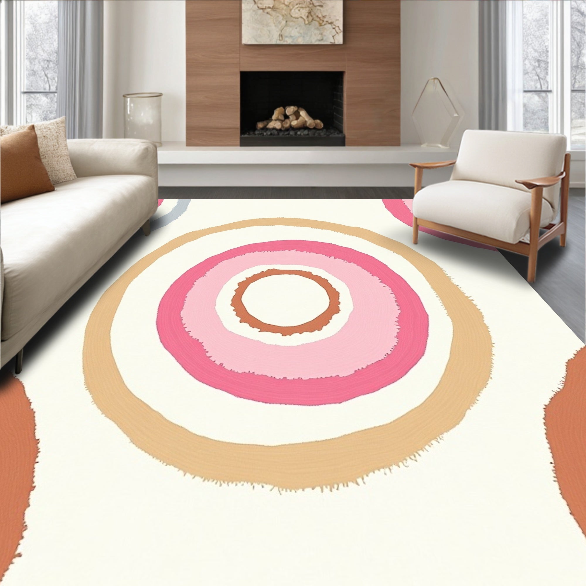 Ultra Soft Area Rug, Non Slip, Stain Resistant, Washable Area Rugs for Living Room, Bedroom, Modern Artistic Concentric Ring Boho Stylish Accent Decoration(Pink) Overview: