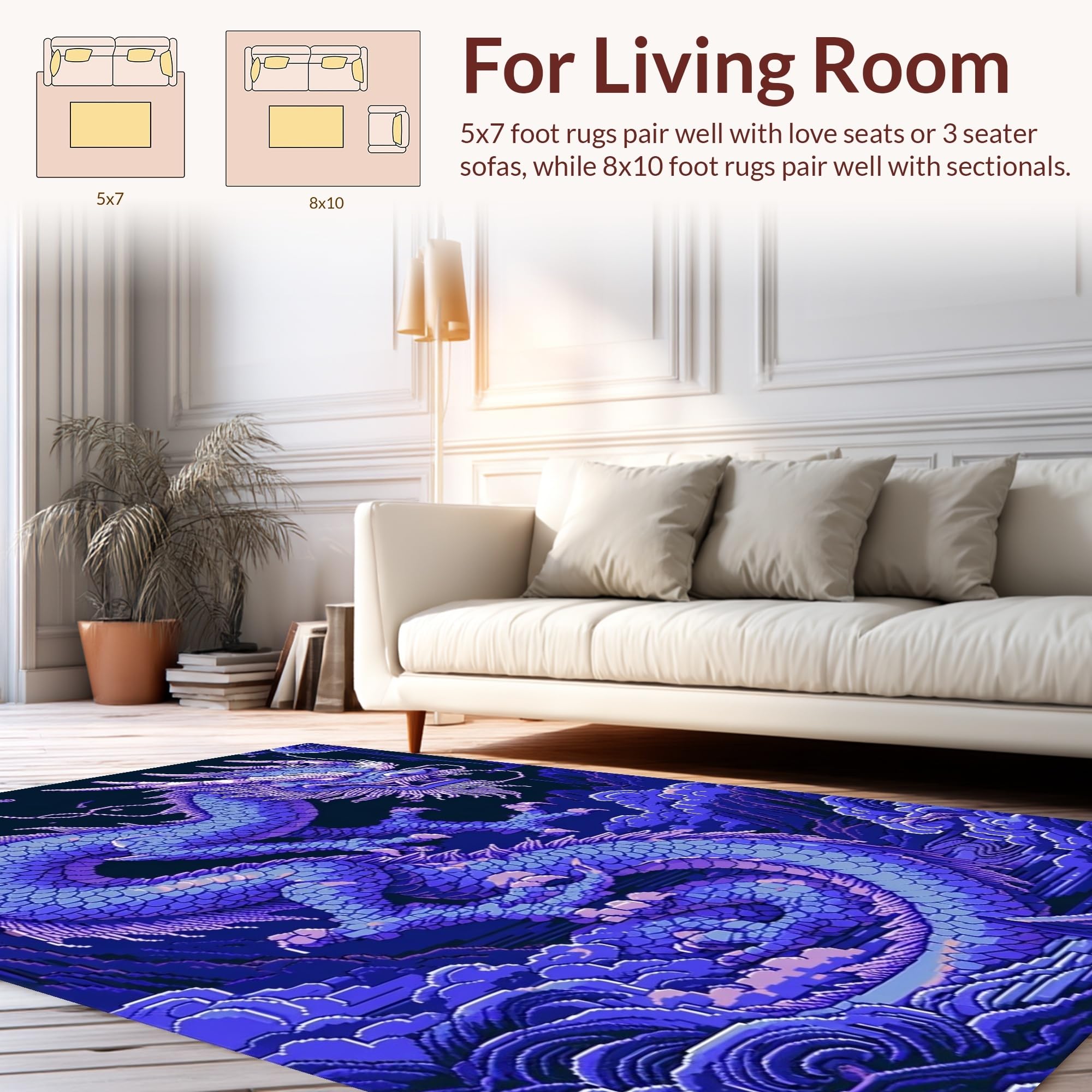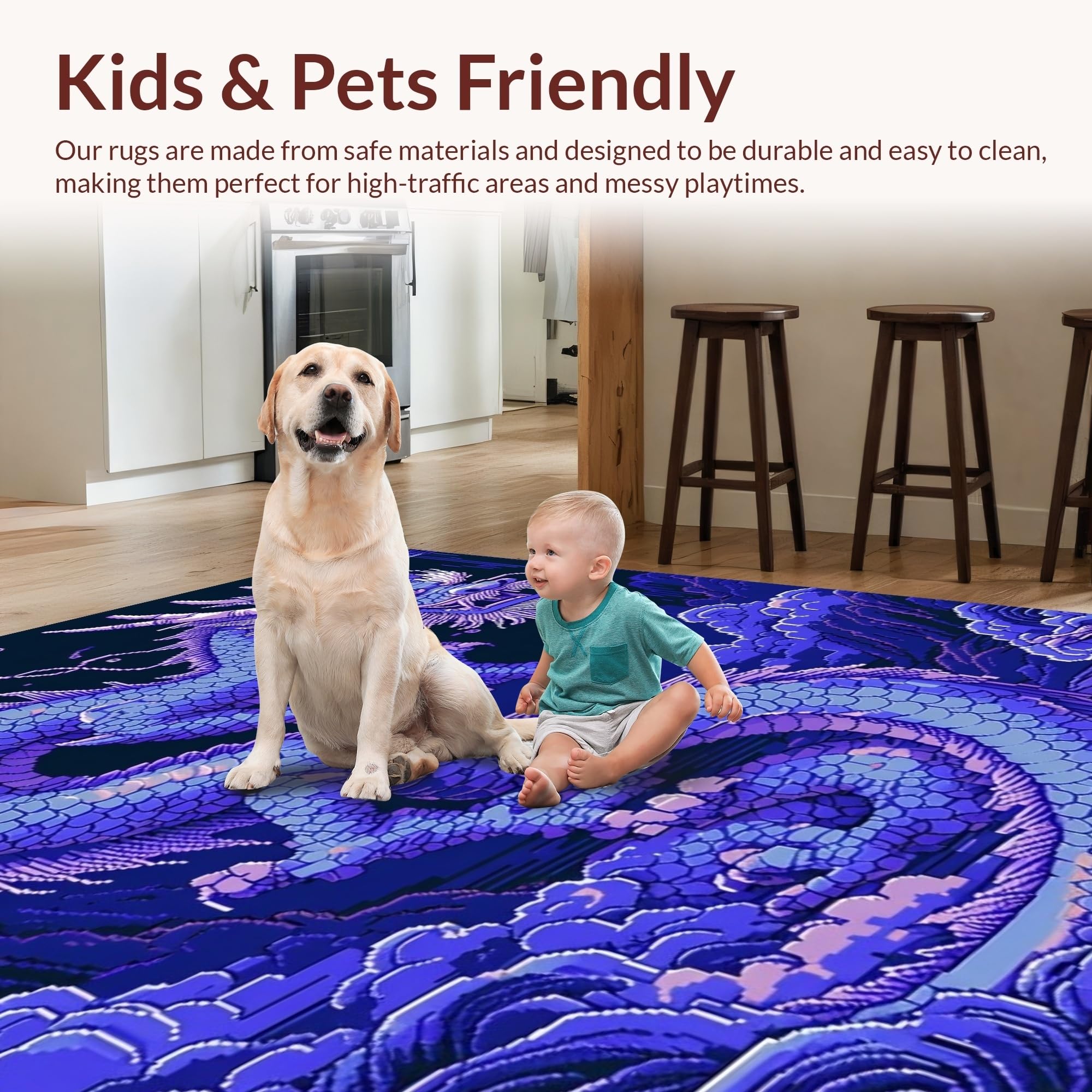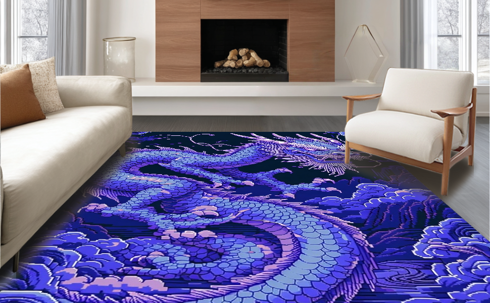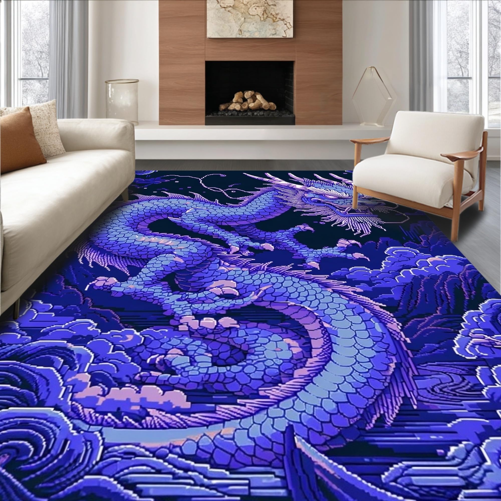 Ultra Soft Area Rug, Non Slip, Stain Resistant, Washable Area Rugs for Living Room, Bedroom, Modern Artistic Dragon Illustration(Blue) Overview:
