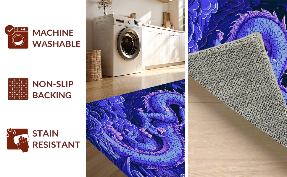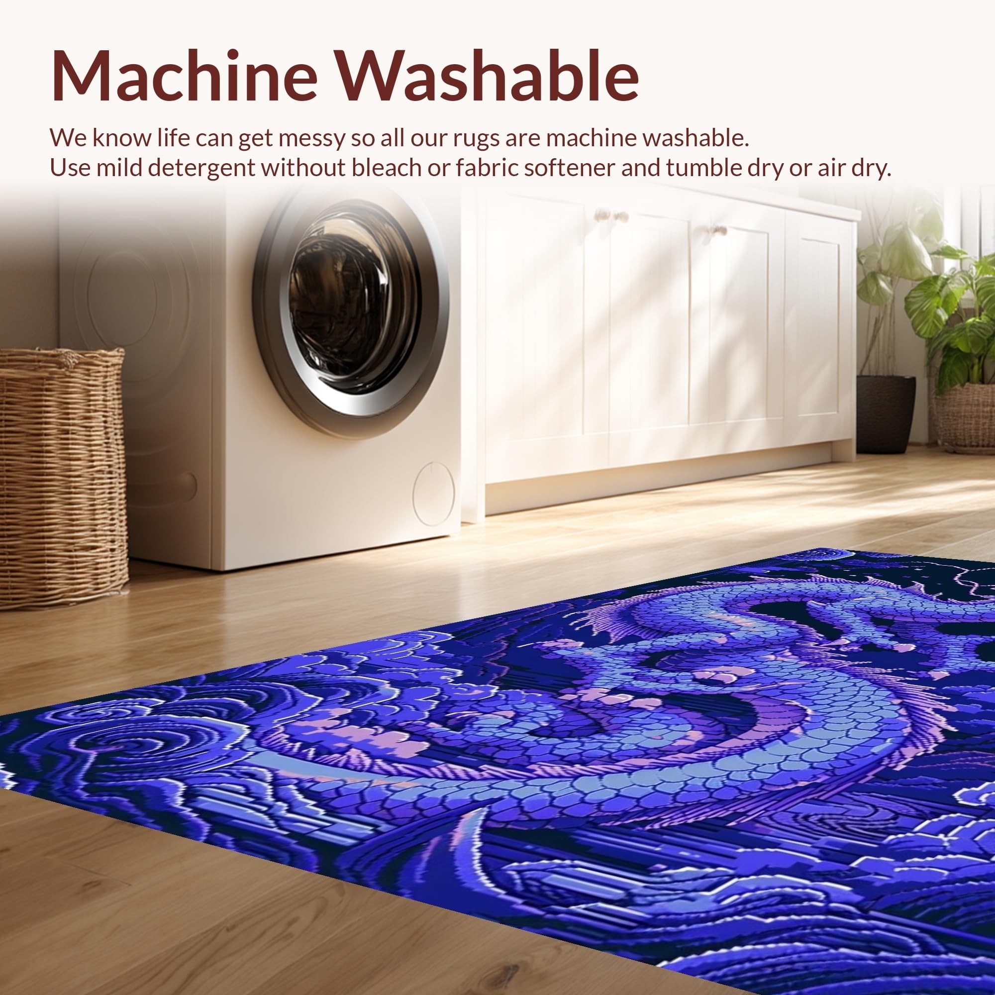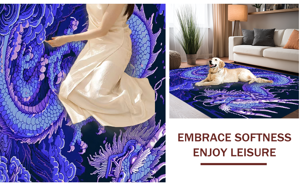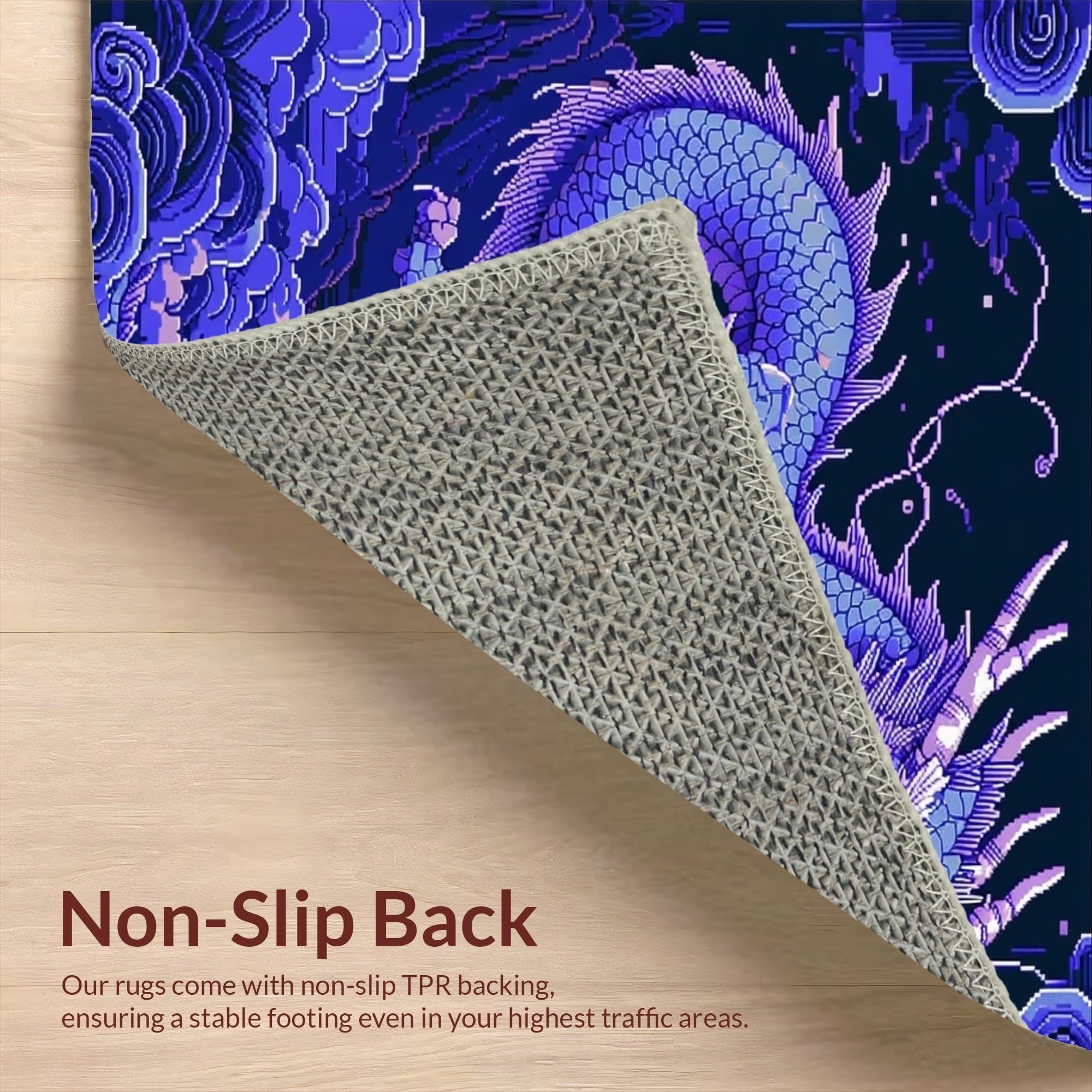 Ultra Soft Area Rug, Non Slip, Stain Resistant, Washable Area Rugs for Living Room, Bedroom, Modern Artistic Dragon Illustration(Blue) Overview: