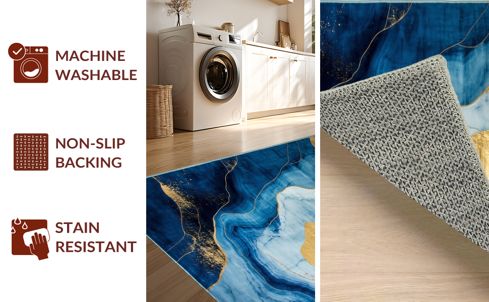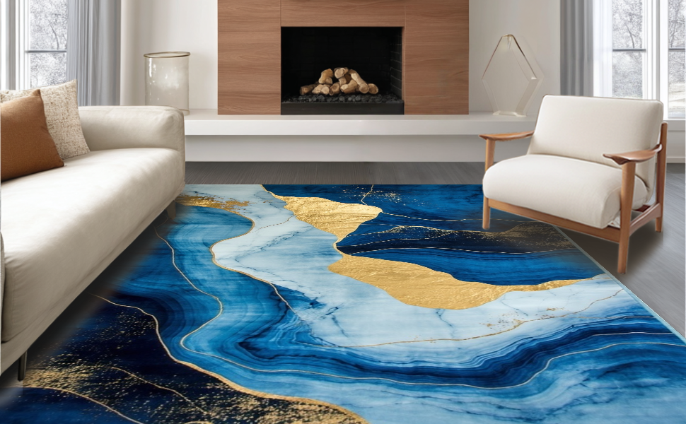 Ultra Soft Area Rug, Non Slip, Stain Resistant, Washable Area Rugs for Living Room, Bedroom, Modern Artistic Swirl Design(Blue) Overview: