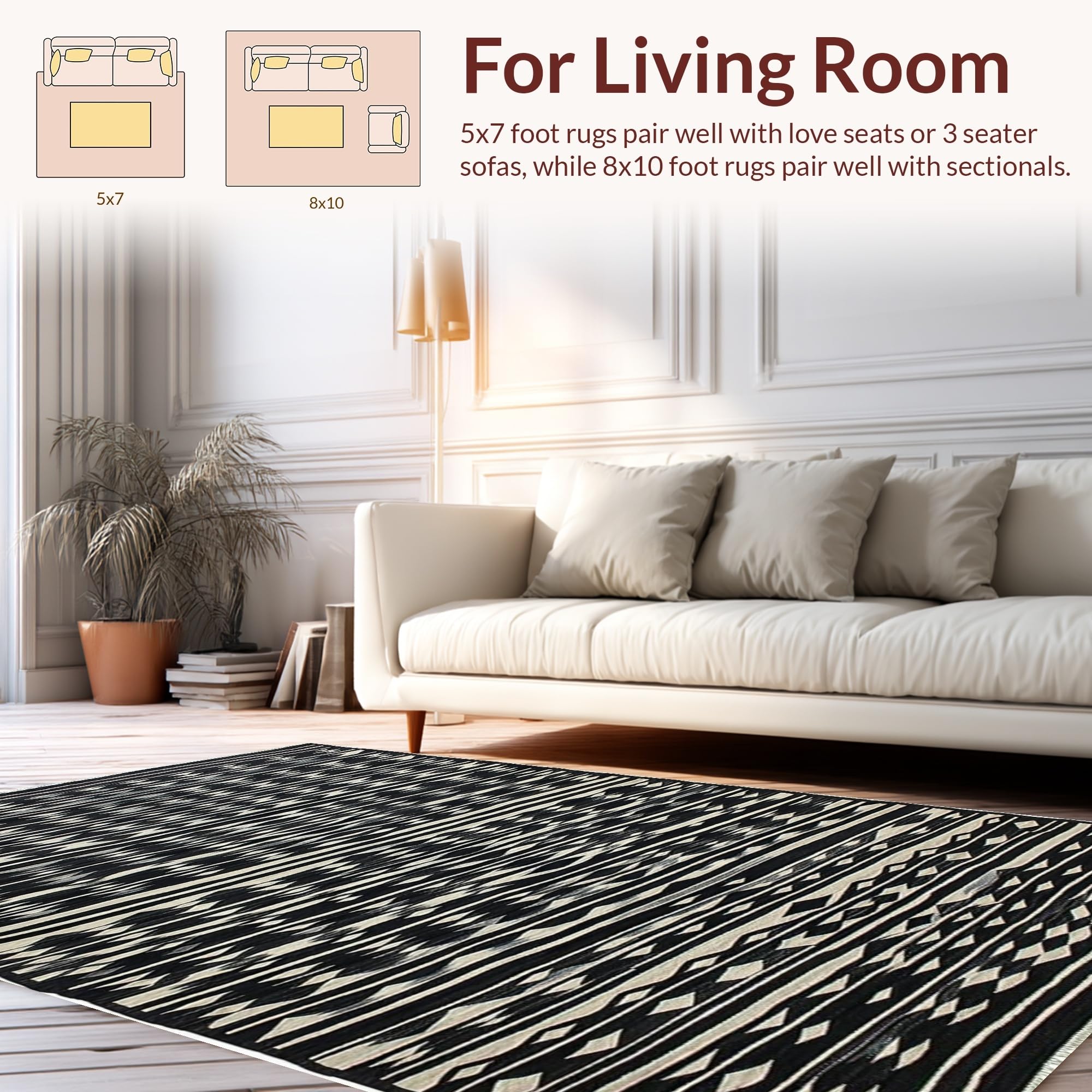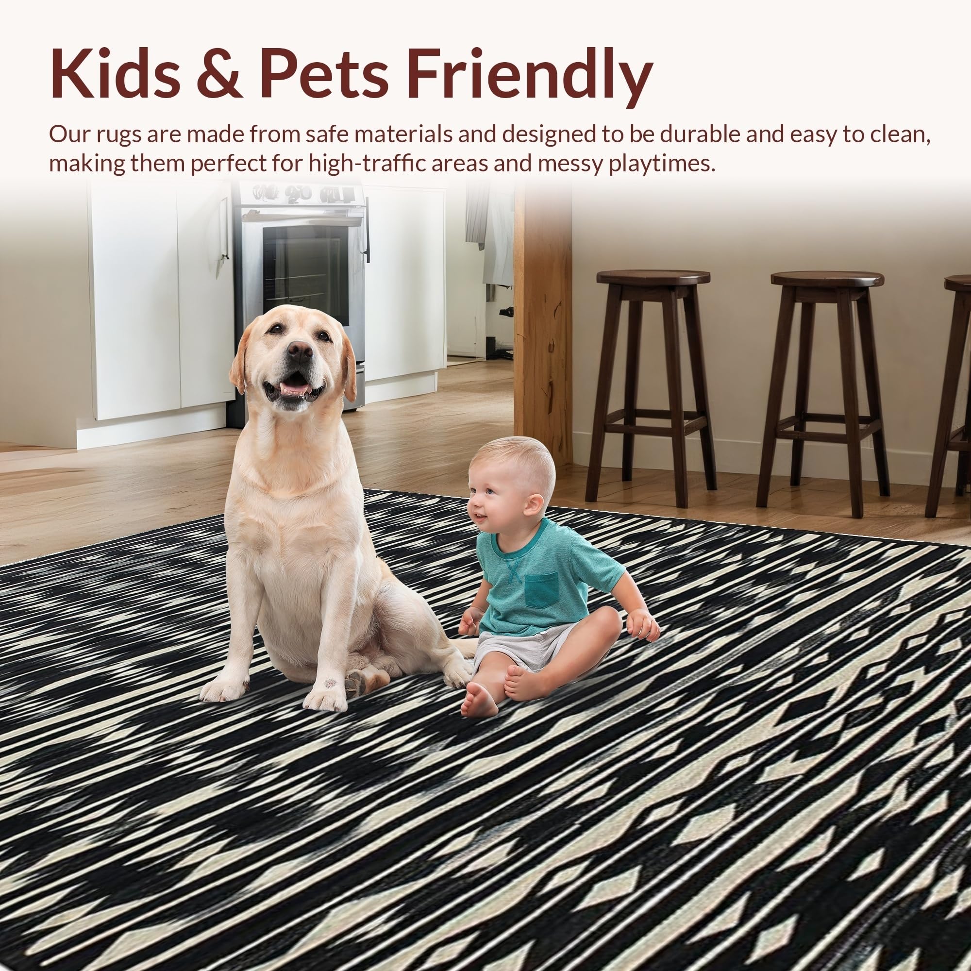 Ultra Soft Area Rug, Non Slip, Stain Resistant, Washable Area Rugs for Living Room, Bedroom, Modern Black and White Checkerboard Style(Black) Overview: