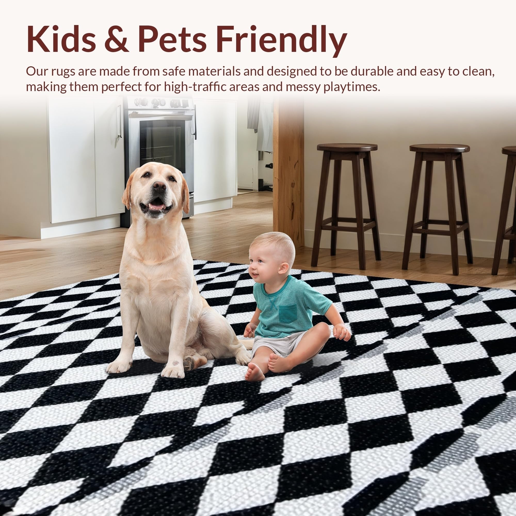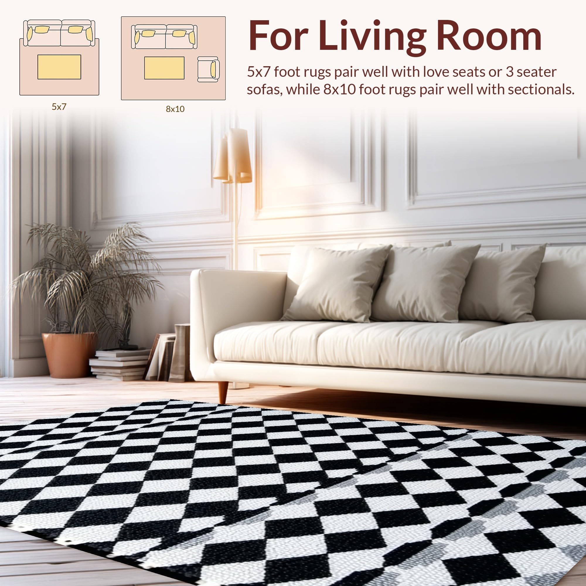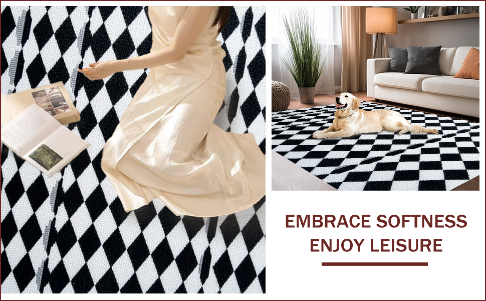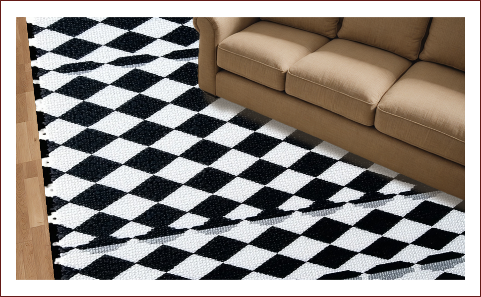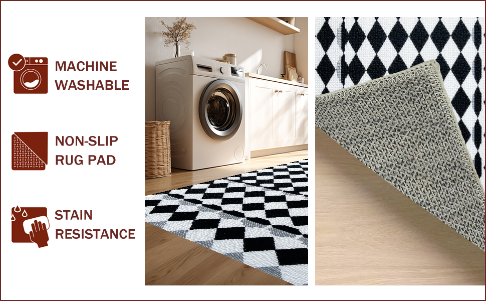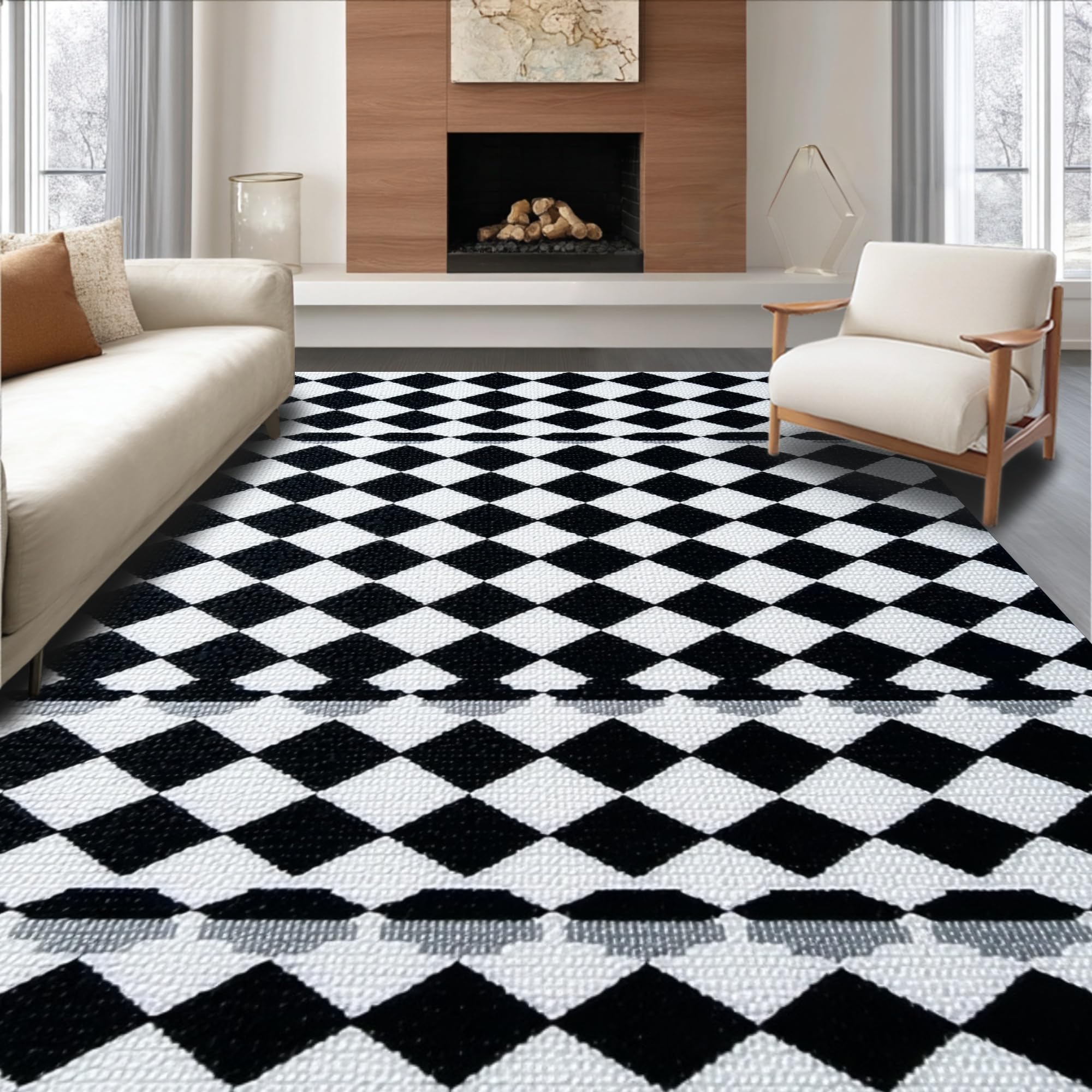 Ultra Soft Area Rug, Non Slip, Stain Resistant, Washable Area Rugs for Living Room, Bedroom, Modern Black and White Checkered Dorm Rug(Black) Overview: