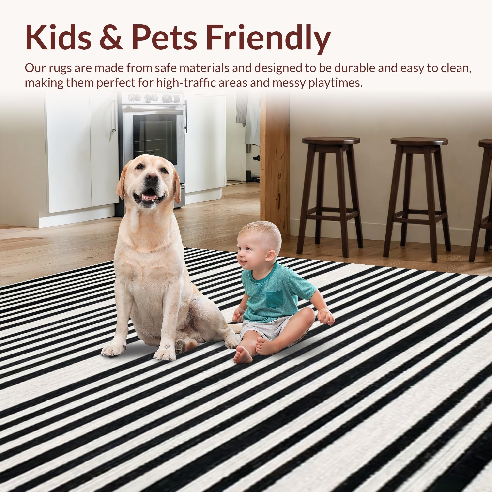 Ultra Soft Area Rug, Non Slip, Stain Resistant, Washable Area Rugs for Living Room, Bedroom, Modern Black And White Stripe Rug: Geometric Entryway Decor(Black) Overview: