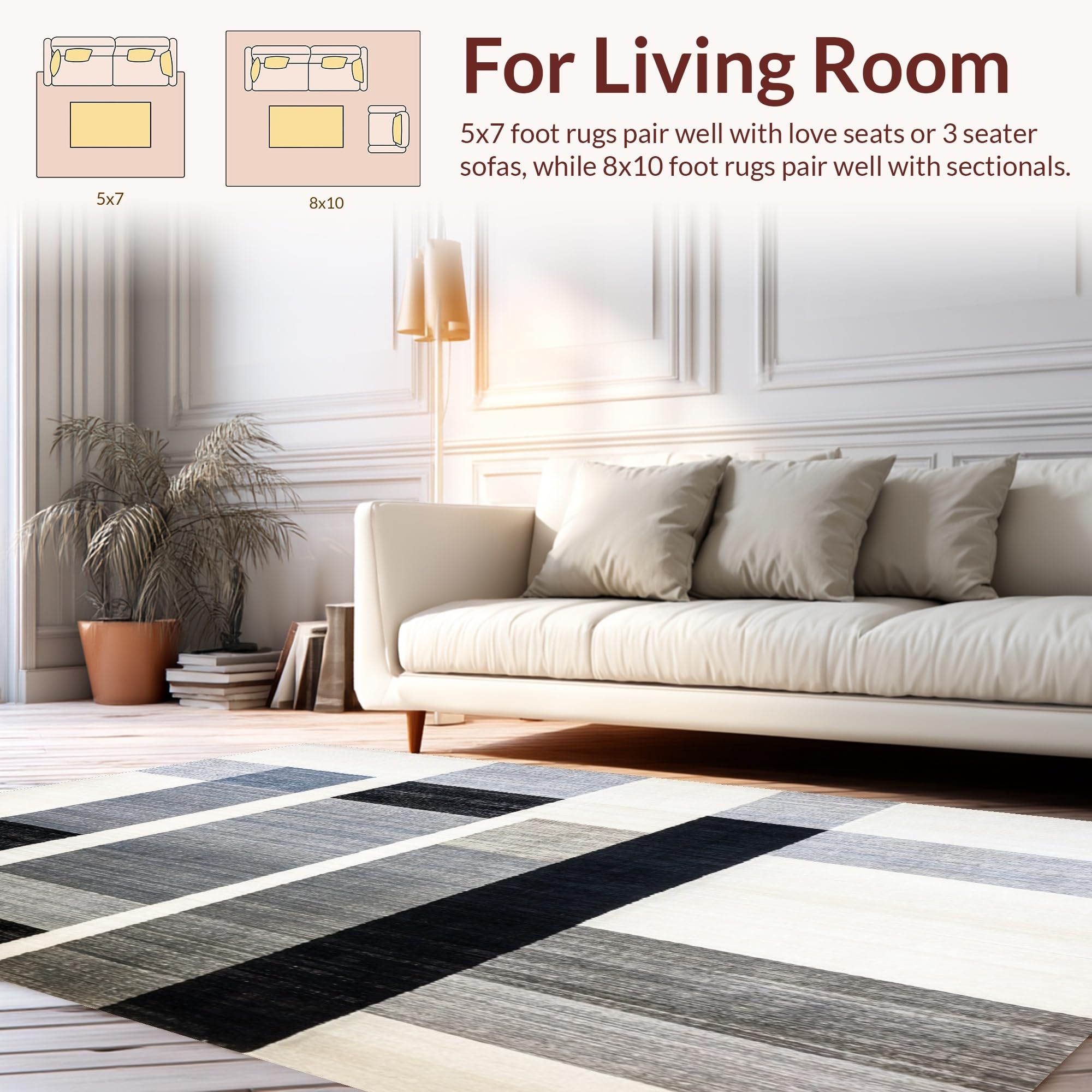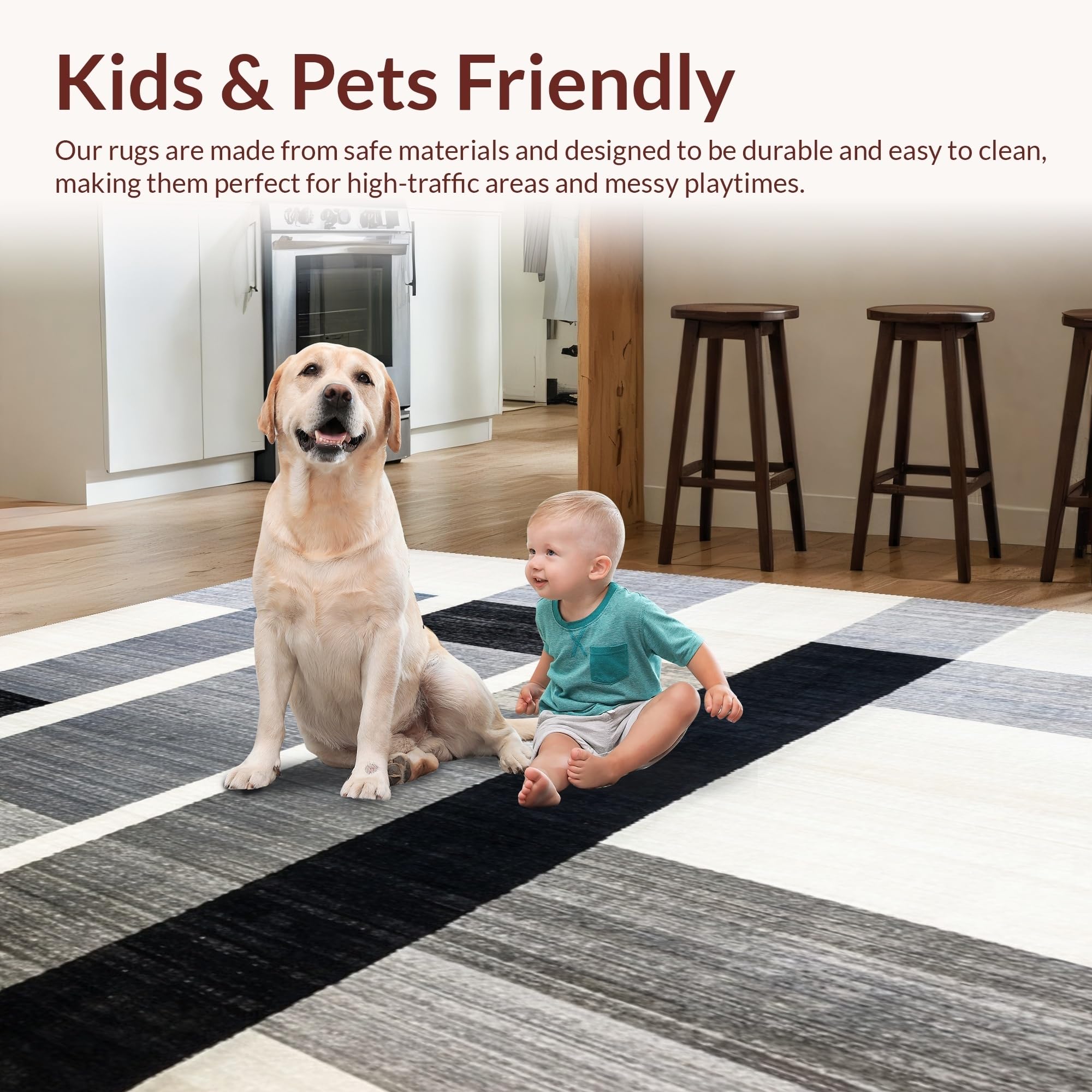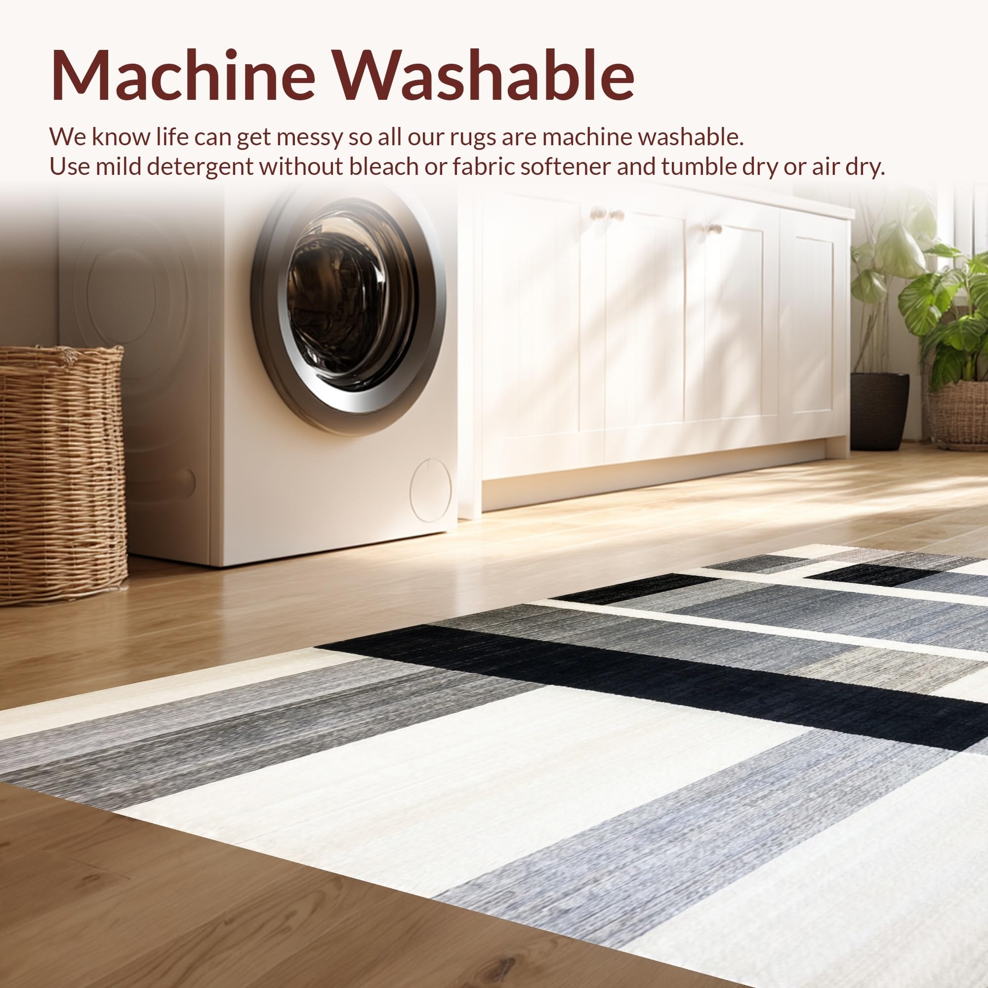 Ultra Soft Area Rug, Non Slip, Stain Resistant, Washable Area Rugs for Living Room, Bedroom, Modern Black and White Striped Rug Geometric Design(Gray) Overview: