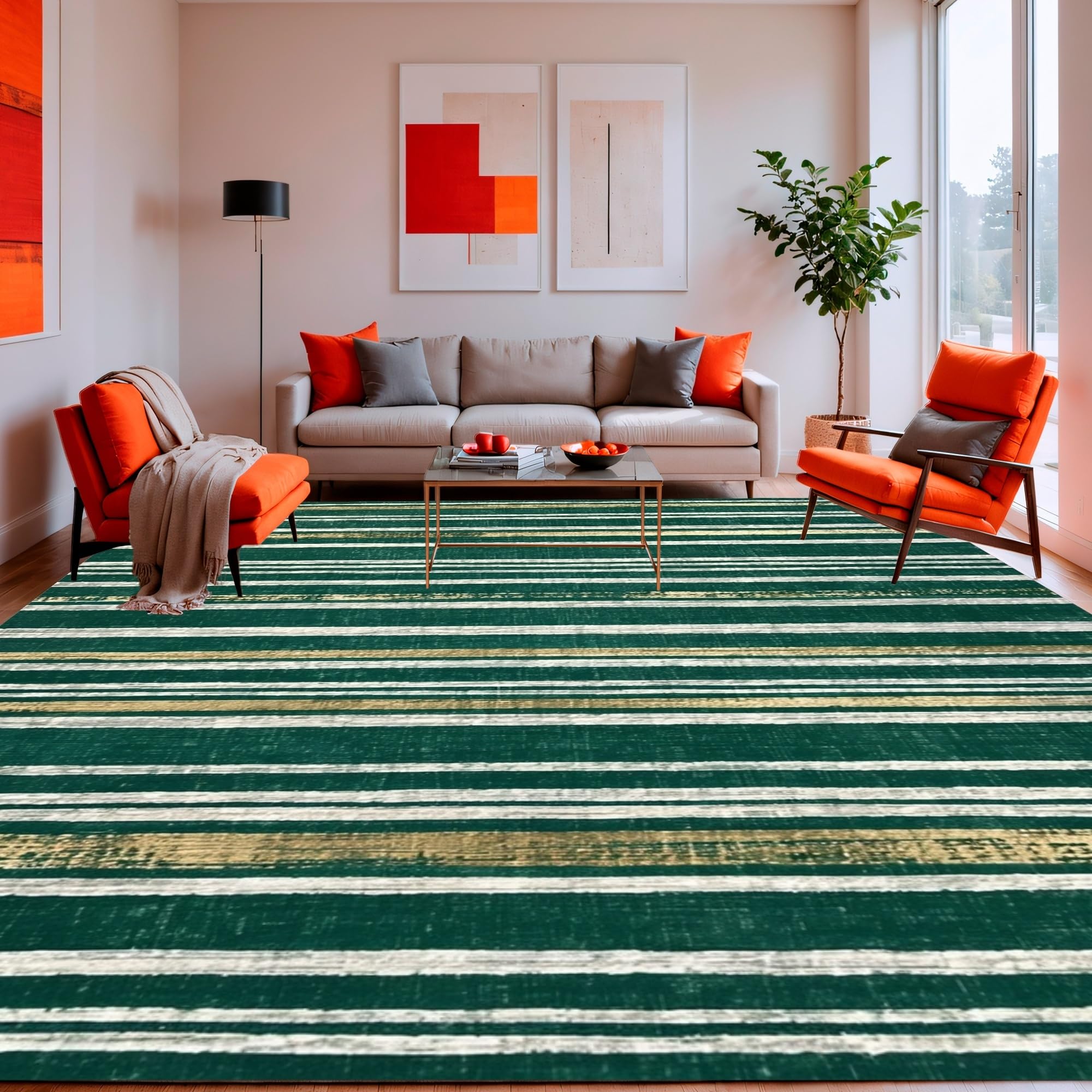 Ultra Soft Area Rug, Non Slip, Stain Resistant, Washable Area Rugs for Living Room, Bedroom, Modern Black and White Striped Rug Machine Washable Non Slip Backing(Green) Overview: