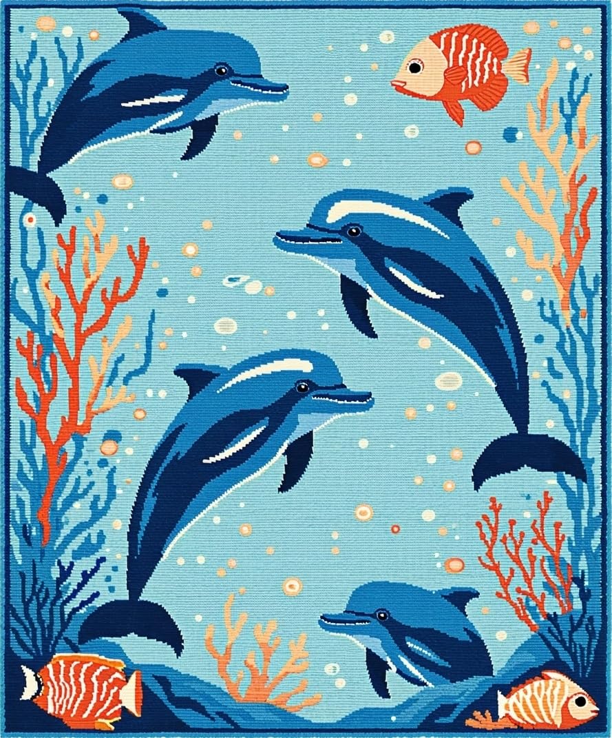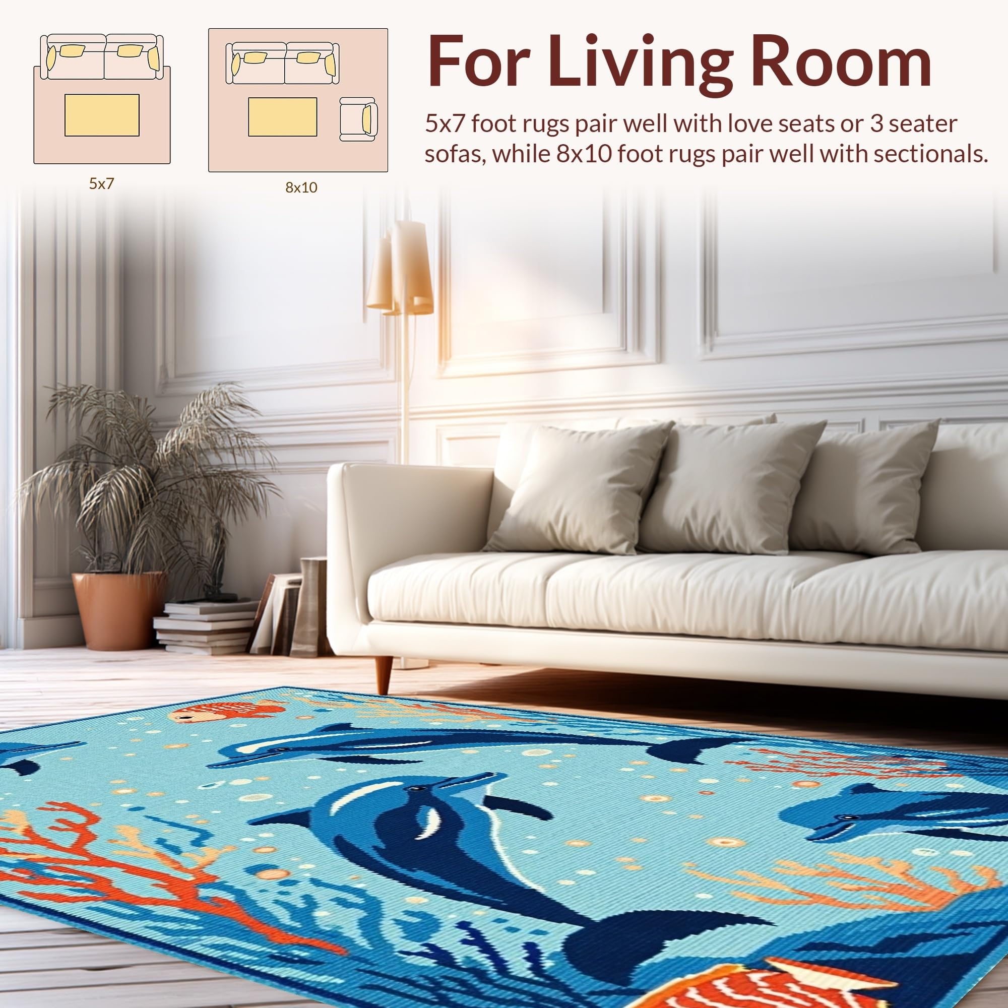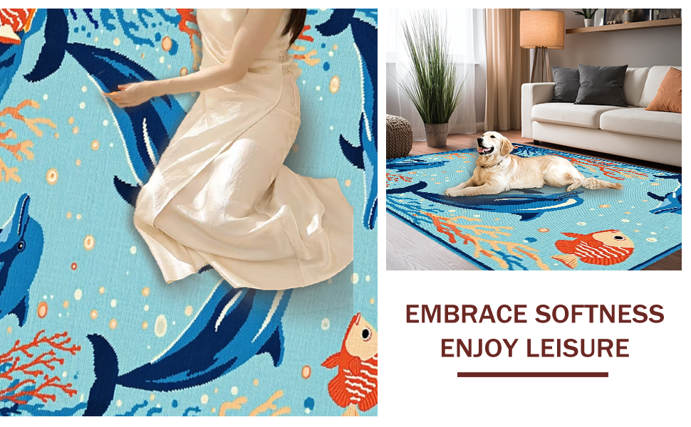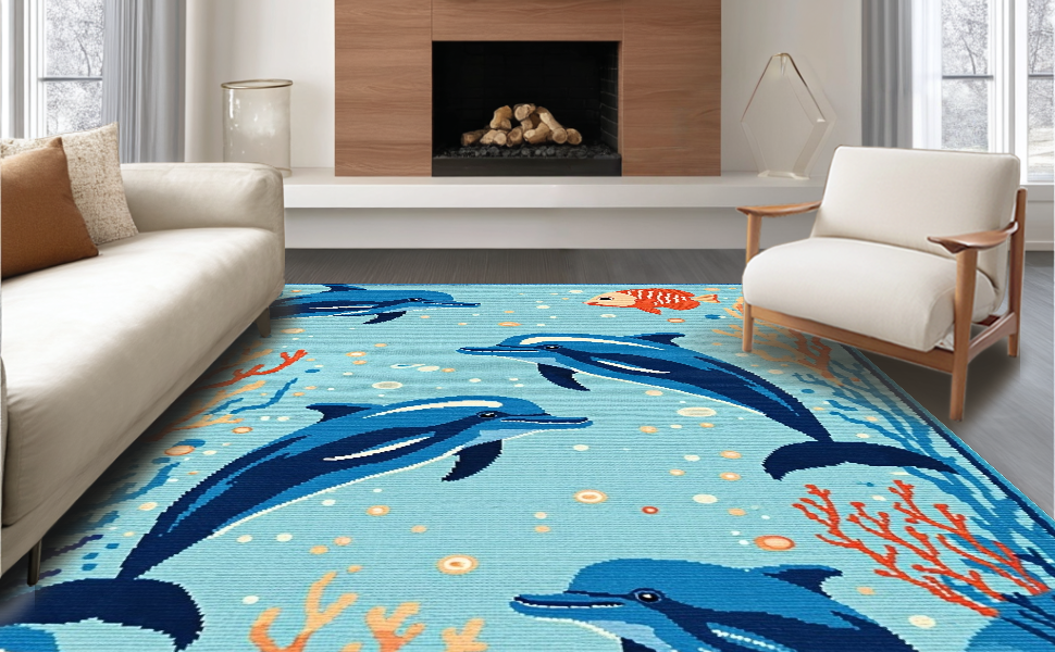 Ultra Soft Area Rug, Non Slip, Stain Resistant, Washable Area Rugs for Living Room, Bedroom, Modern Blue and Coral Fusion(Blue) Overview: