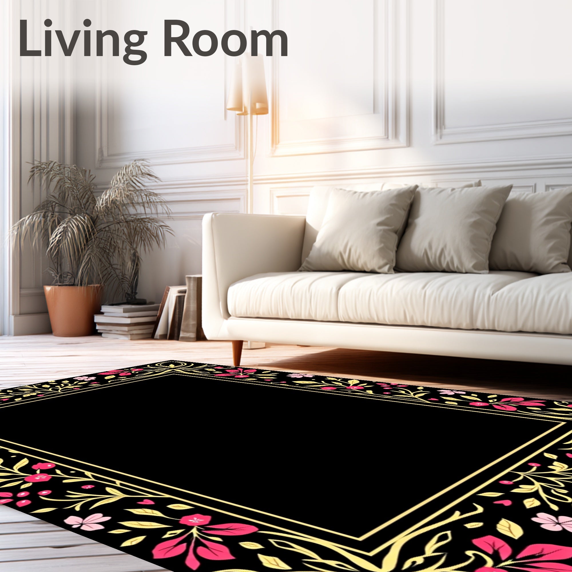Ultra Soft Area Rug, Non Slip, Stain Resistant, Washable Area Rugs for Living Room, Bedroom, Modern Boho Laurel Branches with Festive Holly and Berry Accents(Black) Overview: