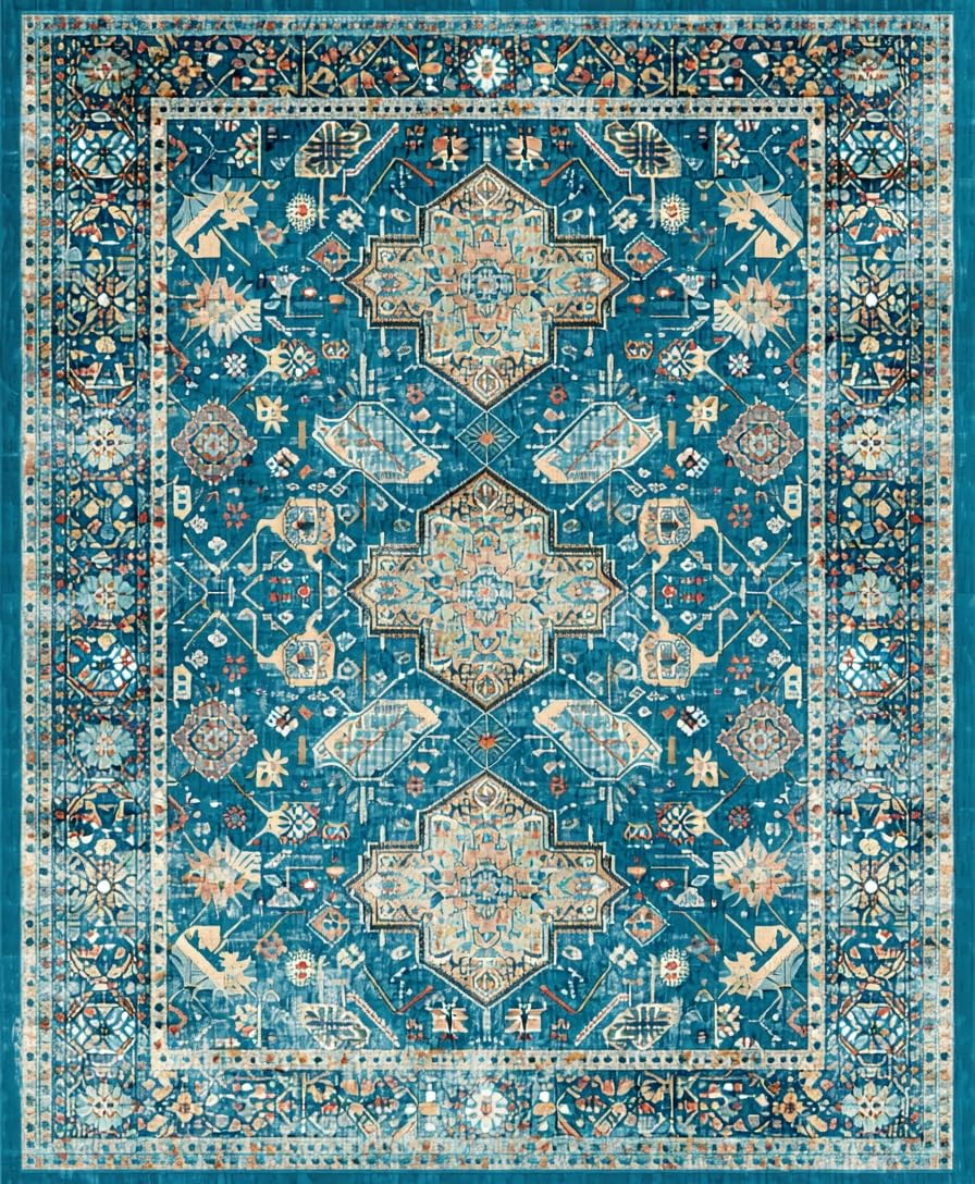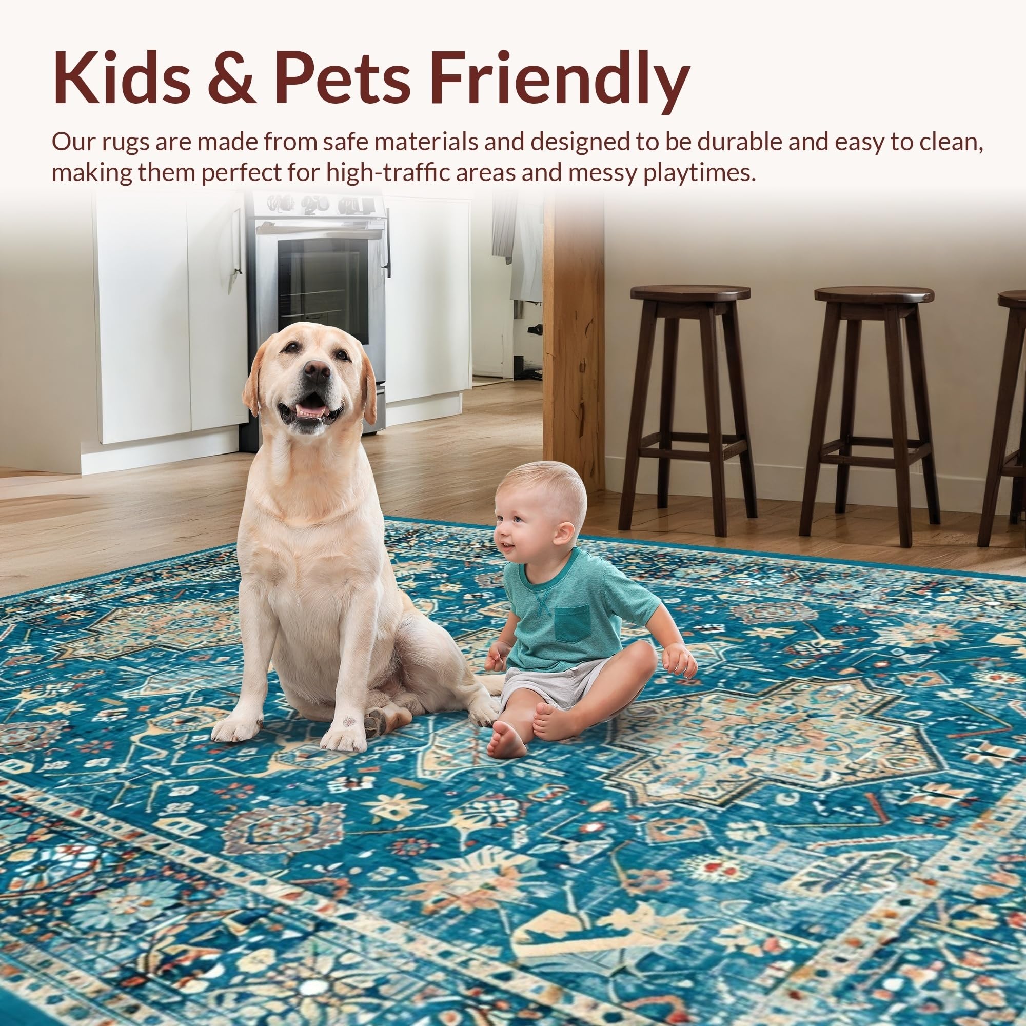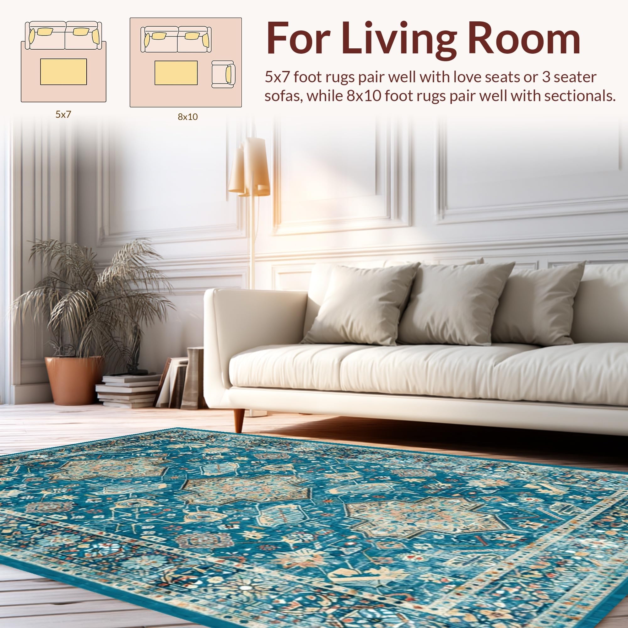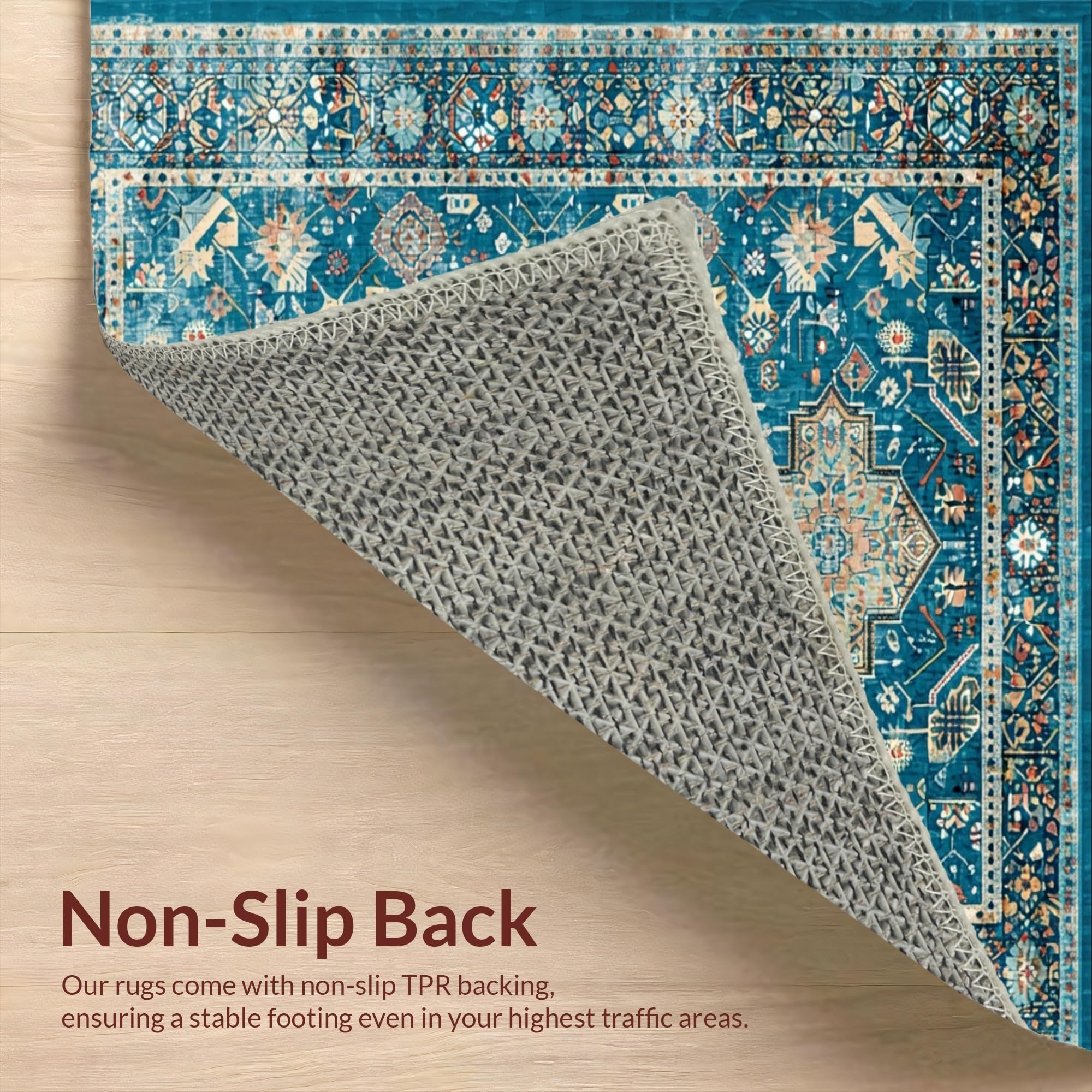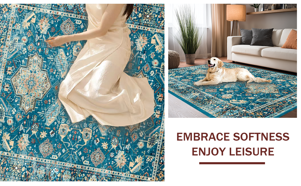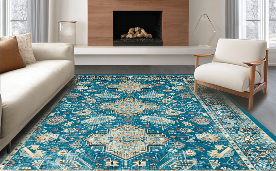 Ultra Soft Area Rug, Non Slip, Stain Resistant, Washable Area Rugs for Living Room, Bedroom, Modern Botanical Print Aesthetic(Blue) Overview: