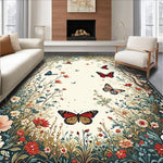 Ultra Soft Area Rug, Non Slip, Stain Resistant, Washable Area Rugs for Living Room, Bedroom, Modern Butterfly Medley Area with Whimsical Floral and Insect Motifs(Ivory) Overview: