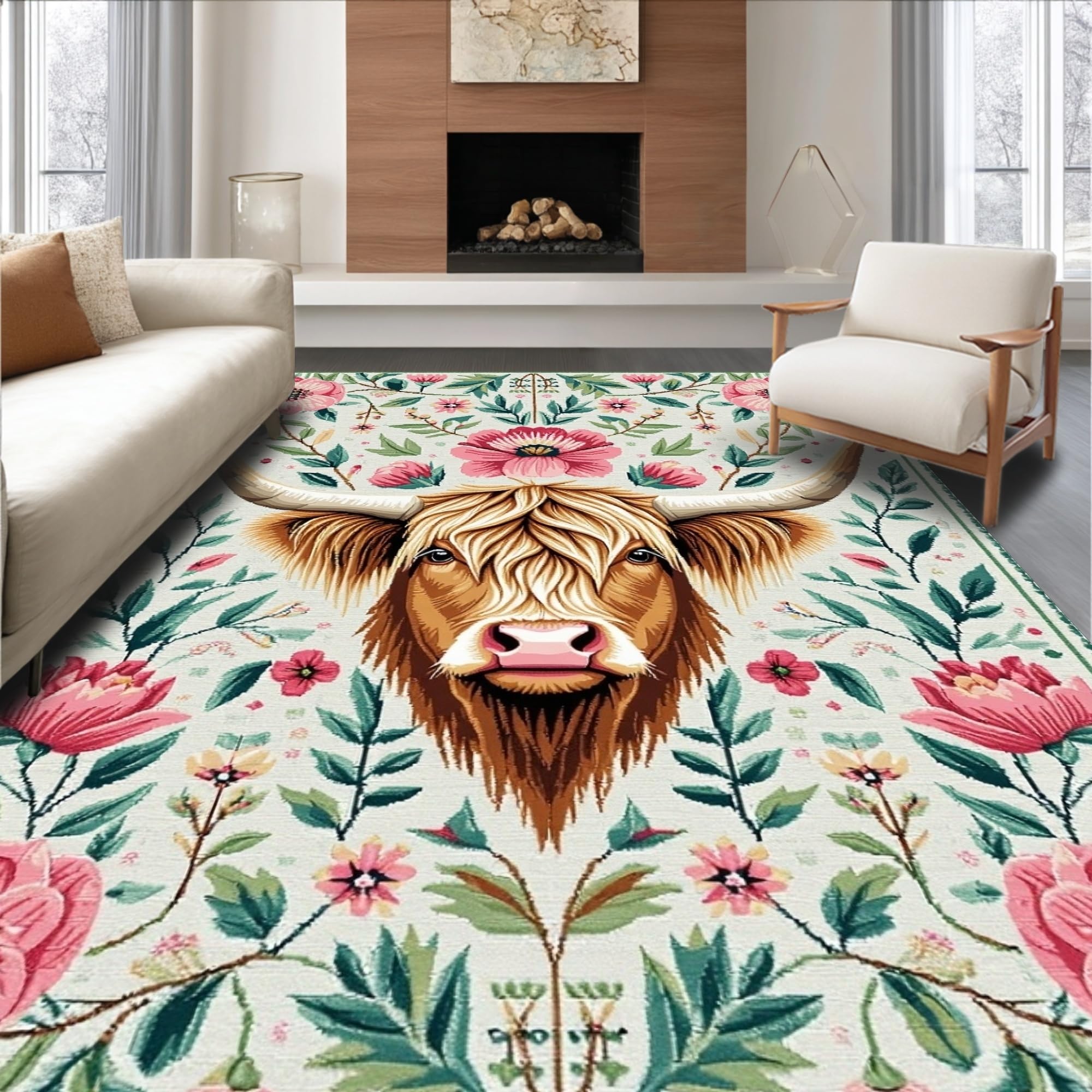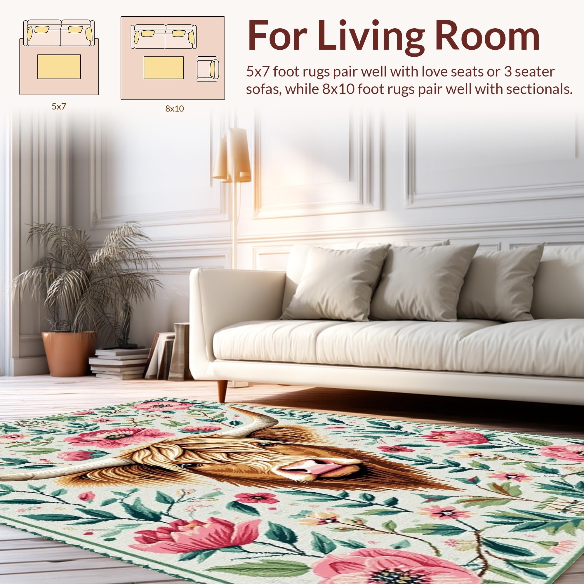 Ultra Soft Area Rug, Non Slip, Stain Resistant, Washable Area Rugs for Living Room, Bedroom, Modern Chic Botanical Elements(Beige) Overview: