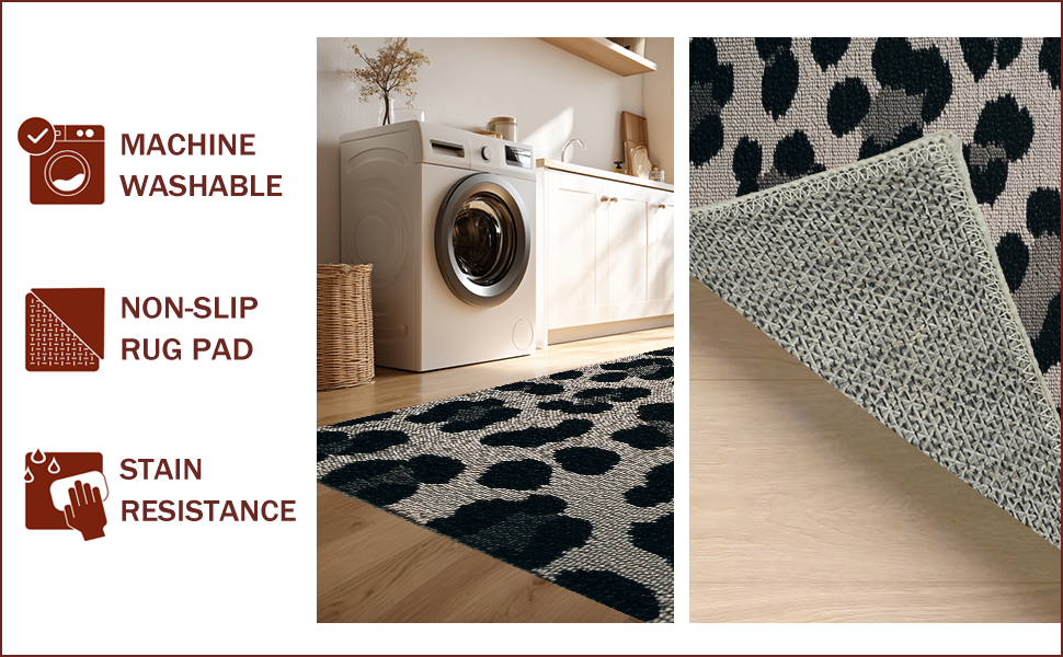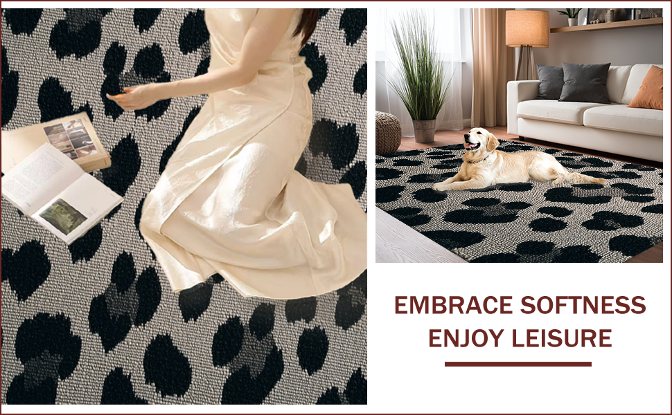 Ultra Soft Area Rug, Non Slip, Stain Resistant, Washable Area Rugs for Living Room, Bedroom, Modern Dark Grey Leopard Print Living Room Rug(Black) Overview: