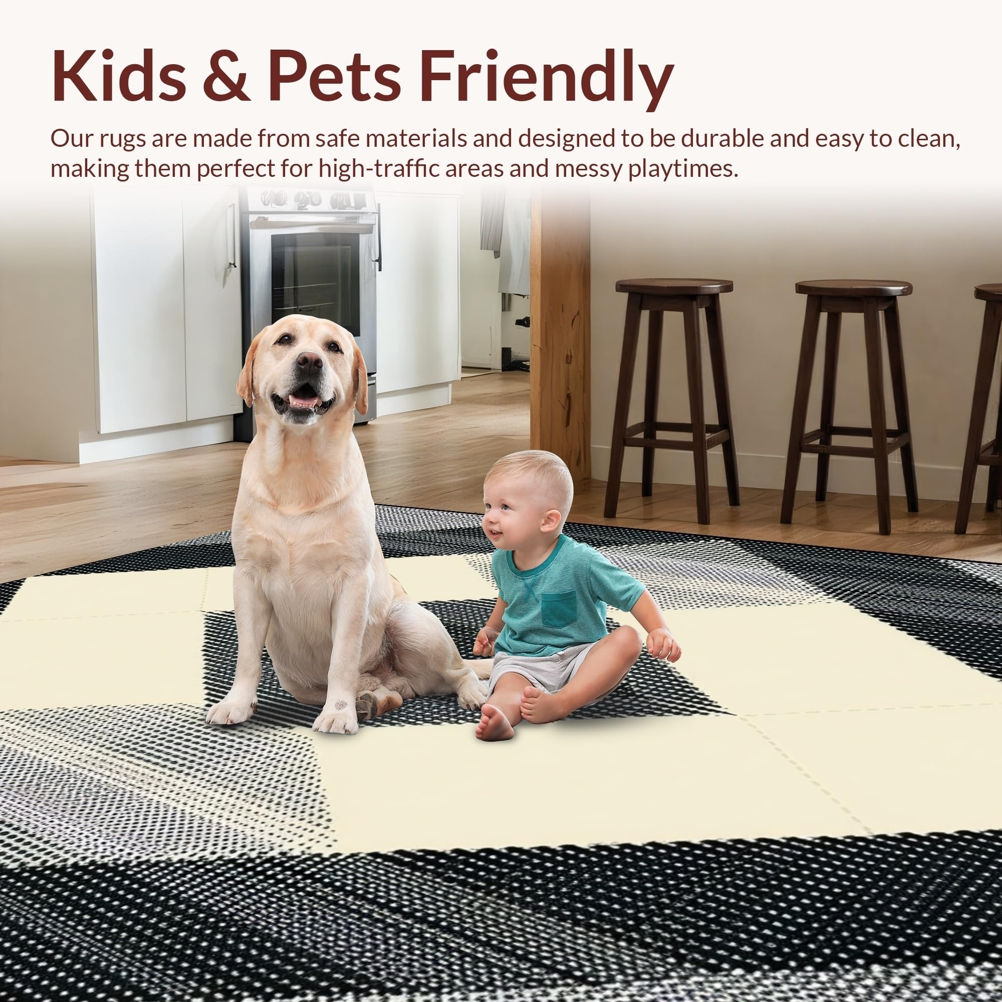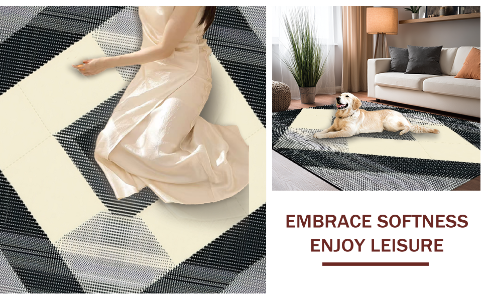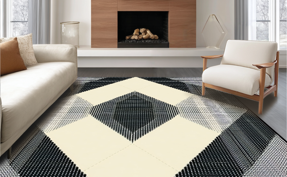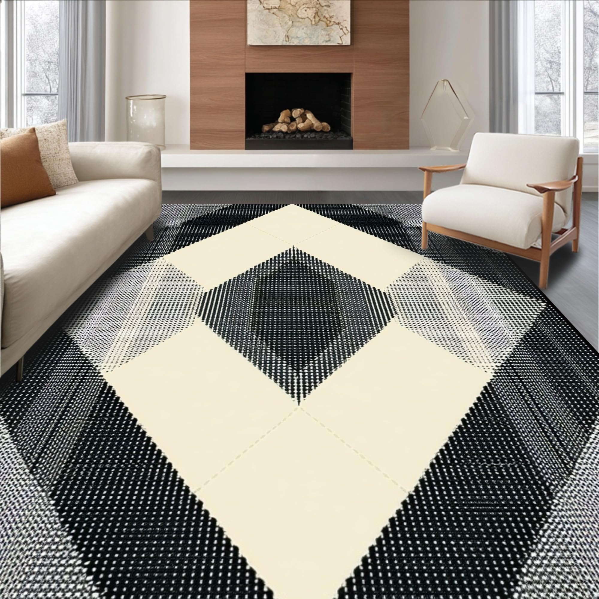 Ultra Soft Area Rug, Non Slip, Stain Resistant, Washable Area Rugs for Living Room, Bedroom, Modern Diamond Lattice Style(Beige) Overview: