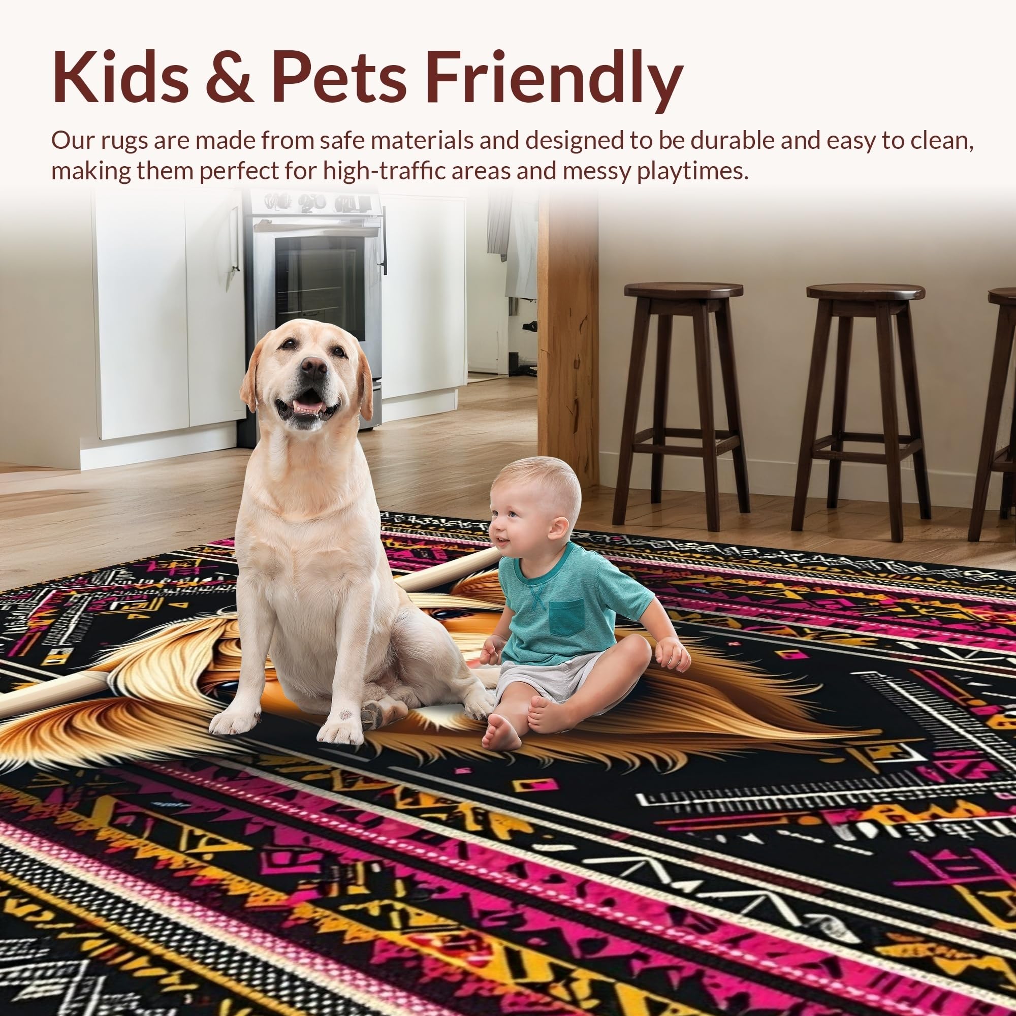 Ultra Soft Area Rug, Non Slip, Stain Resistant, Washable Area Rugs for Living Room, Bedroom, Modern Eclectic Animal Decor(Black) Overview: