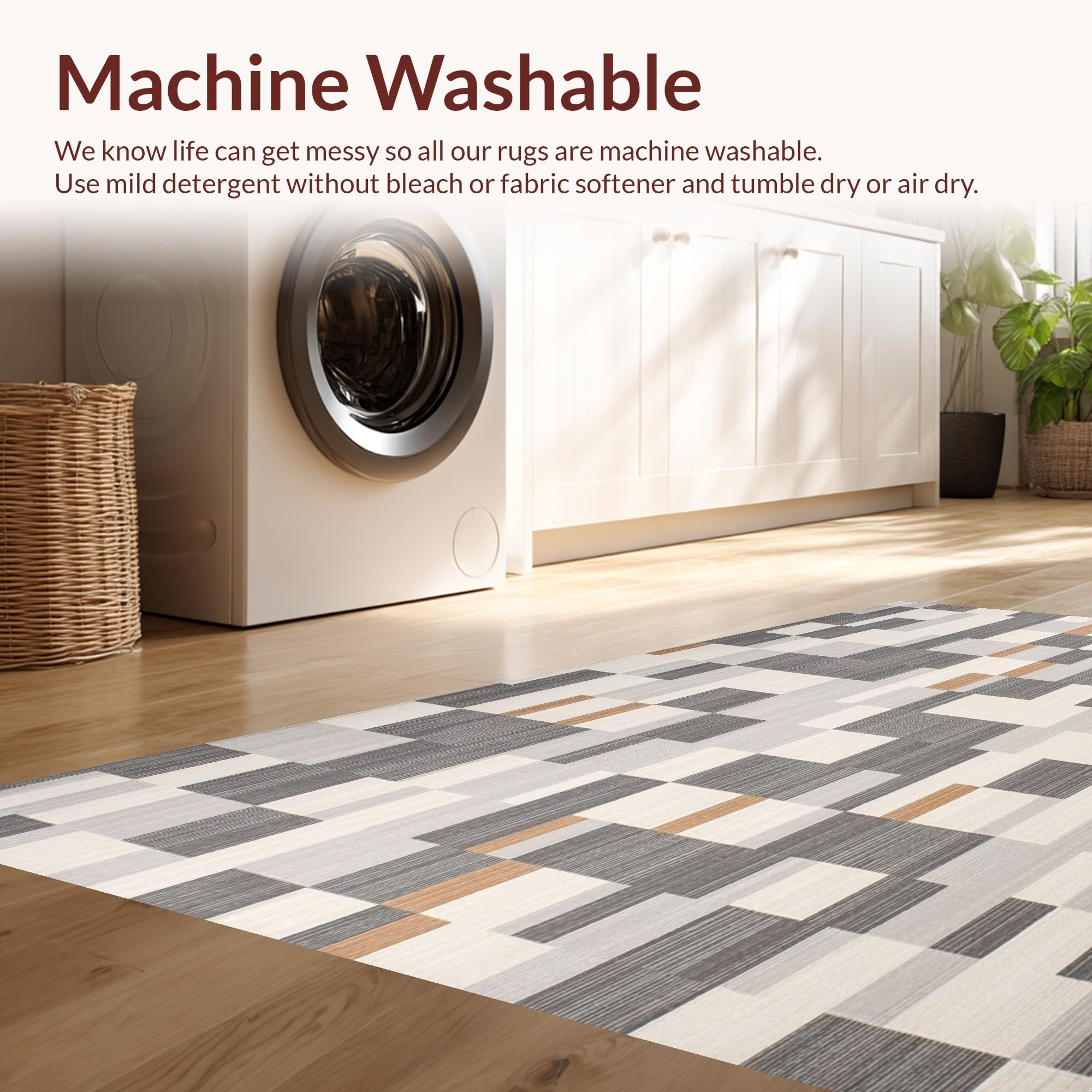 - Machine Washable: Our rugs can be easily thrown in the wash machine.