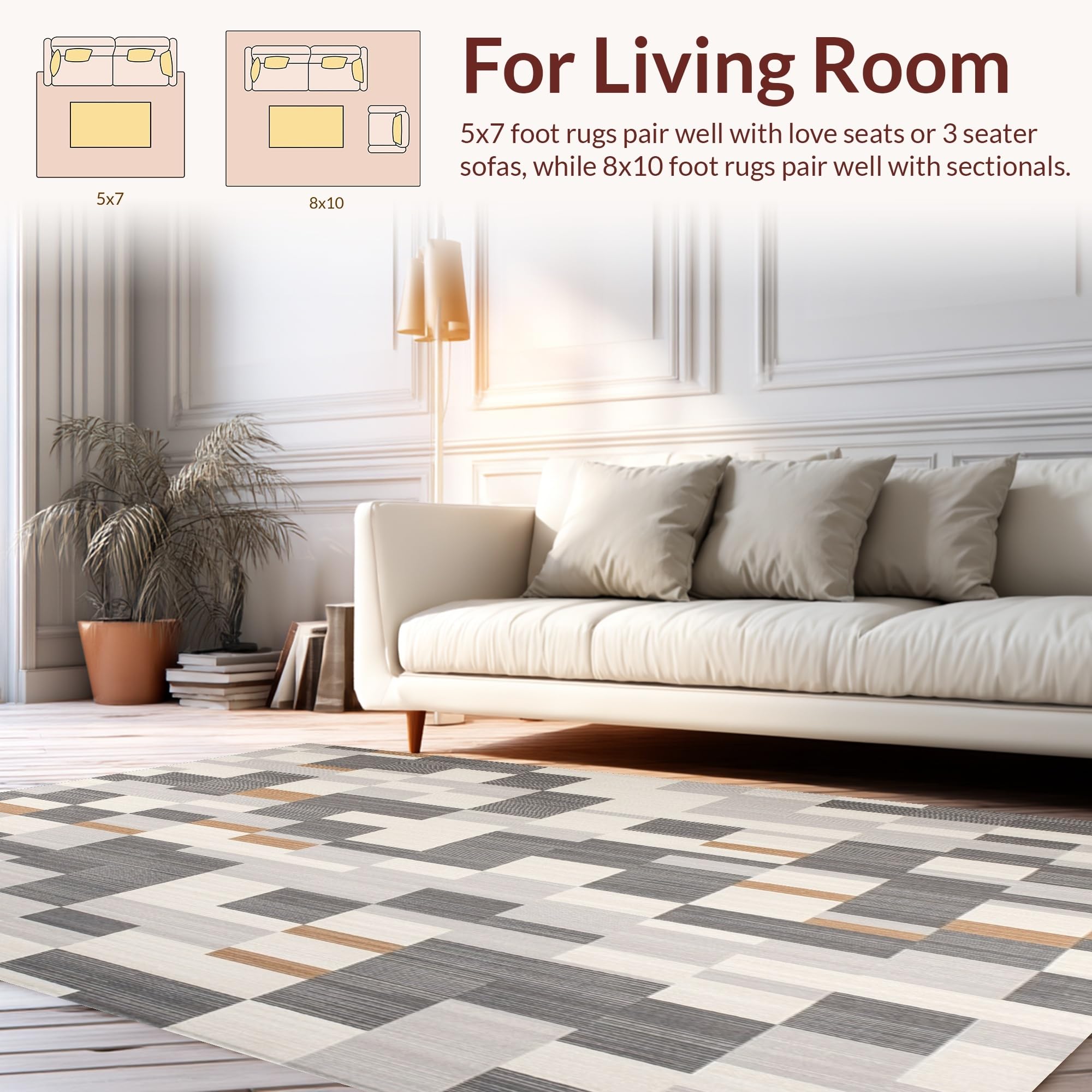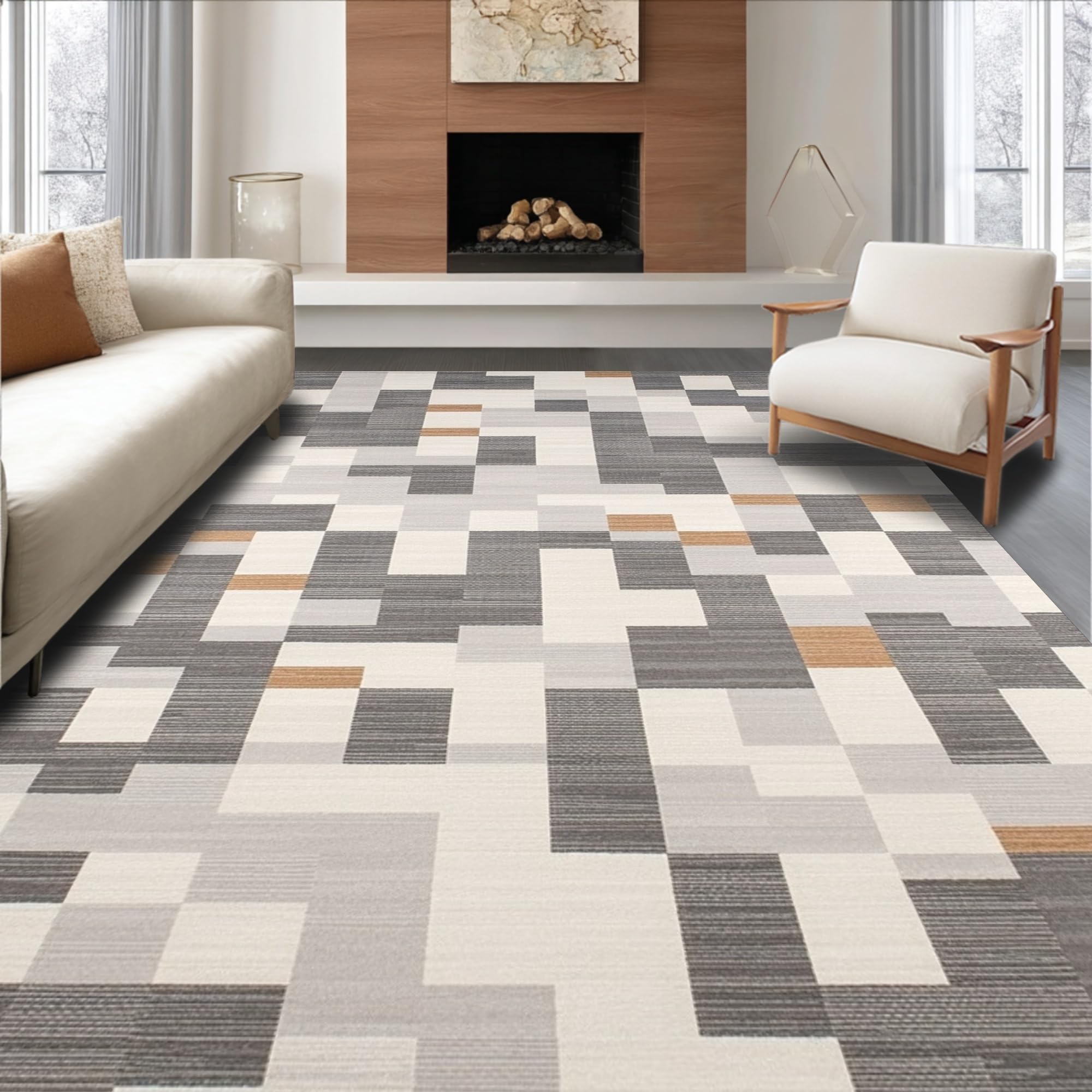 Ultra Soft Area Rug, Non Slip, Stain Resistant, Washable Area Rugs for Living Room, Bedroom, Modern Entryway Geometric Gray & Beige Design(Gray) Overview: