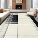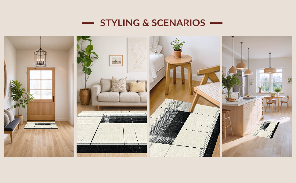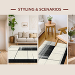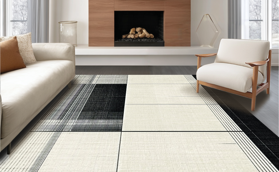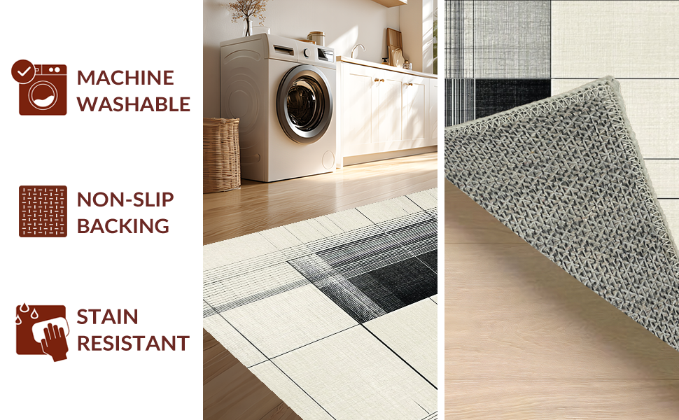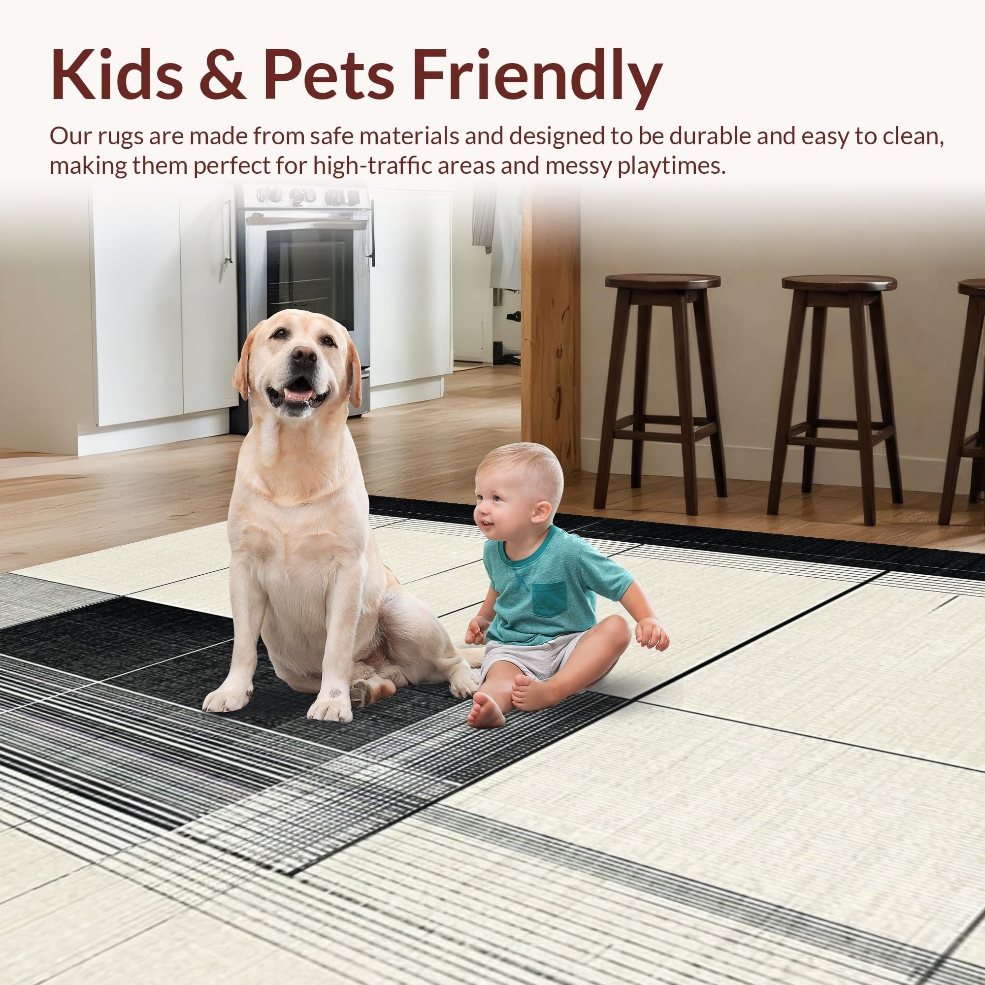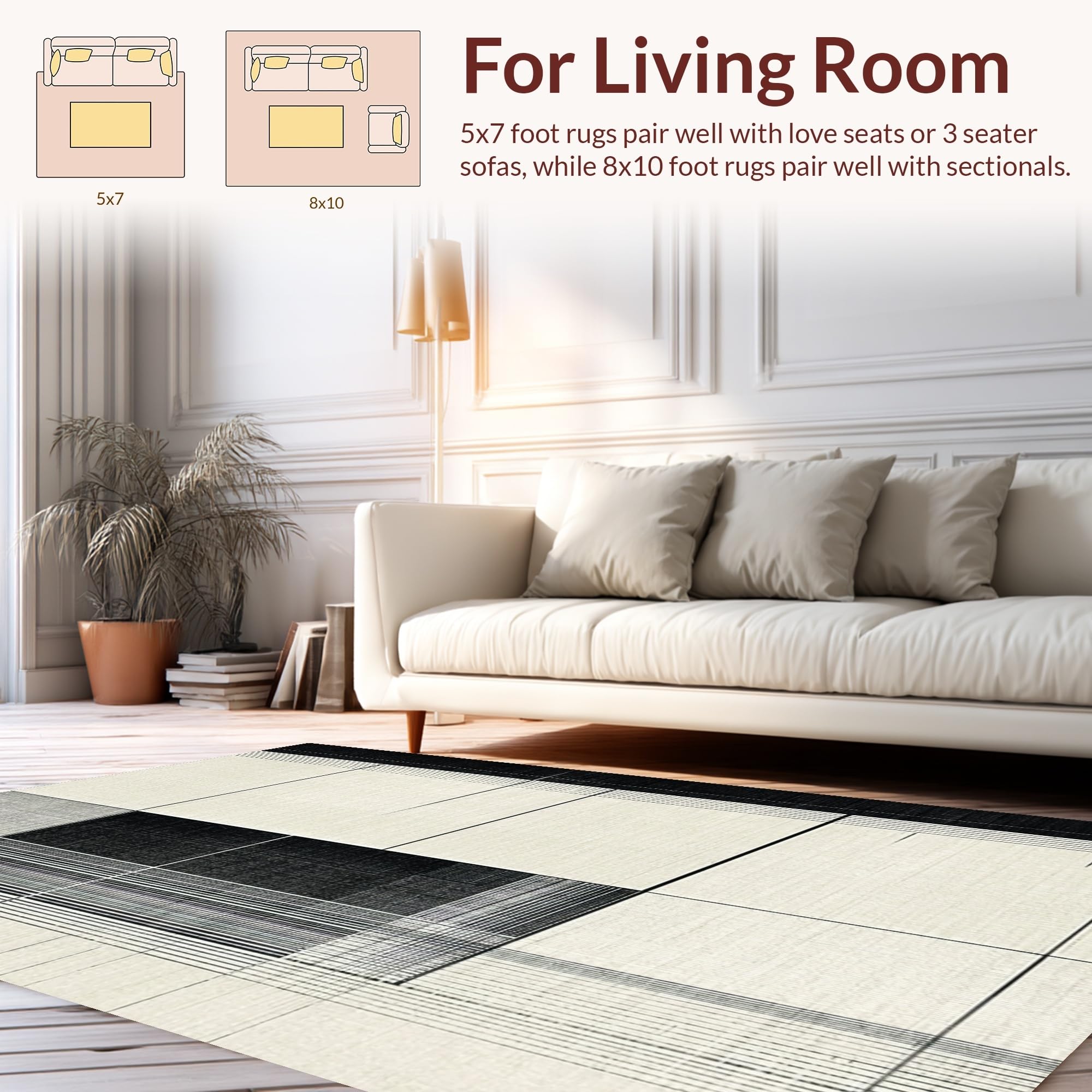Ultra Soft Area Rug, Non Slip, Stain Resistant, Washable Area Rugs for Living Room, Bedroom, Modern Entryway Rug Featuring Artful Pinstripe Bands and Sleek Graphic Detailing(Beige) Overview:
